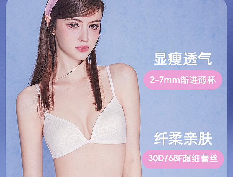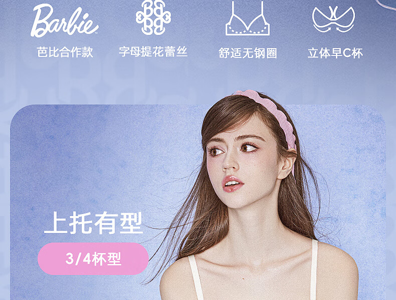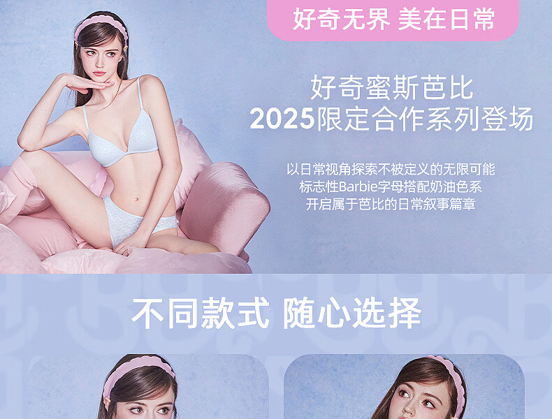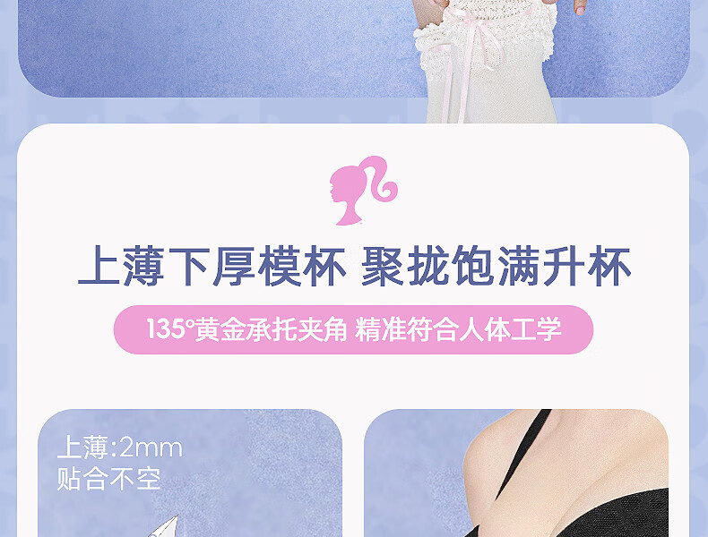 好奇蜜斯【芭比联名·南妮】无痕大胸显小内衣女薄侧收舒适无钢圈文胸套装 日光白套装 75B