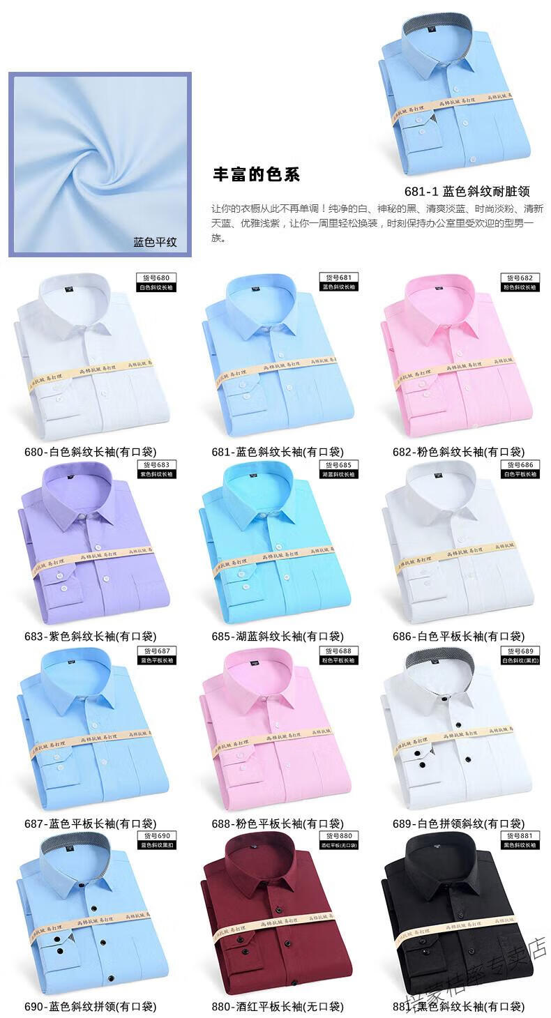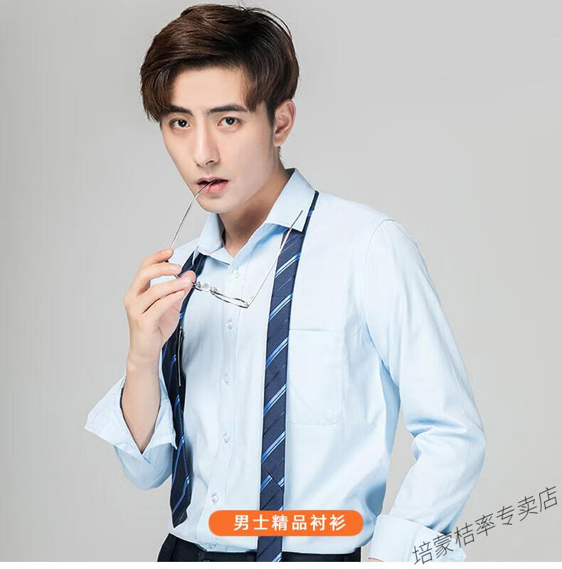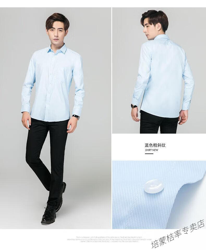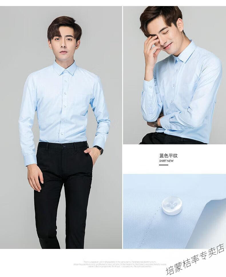 培蒙(peimeng)衬衫男长袖白衬衫商务纯色质透气衬衣中青年职业装正装韩版工装 687蓝色平板长袖 38