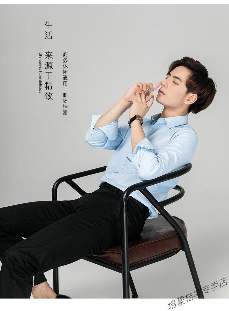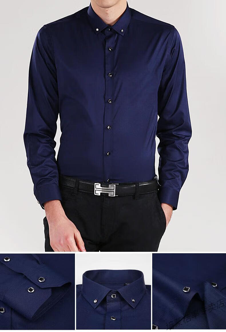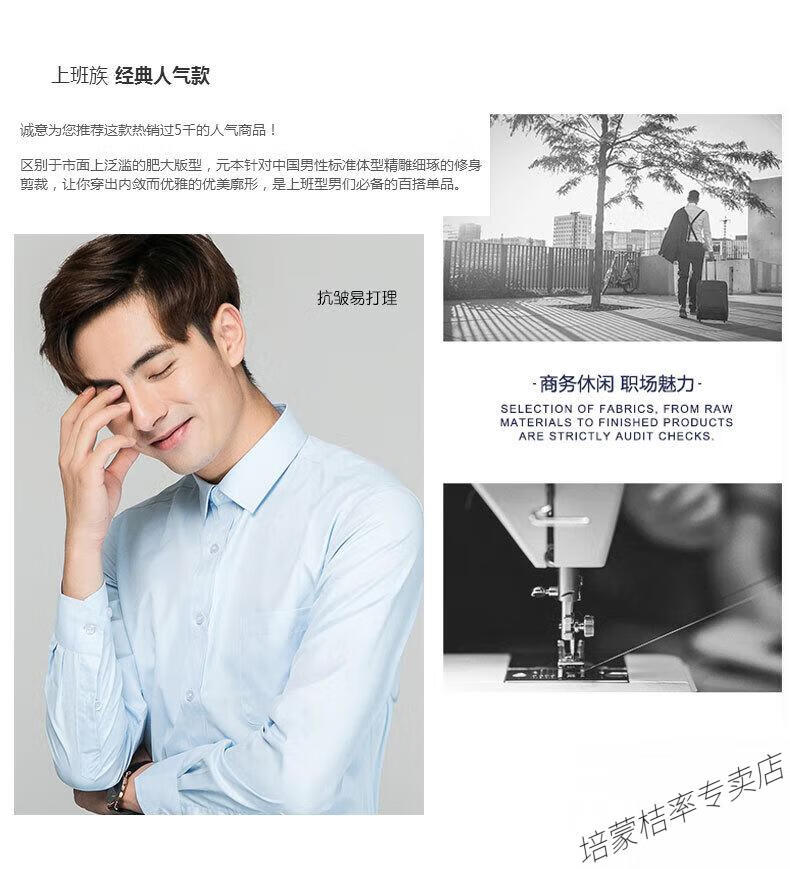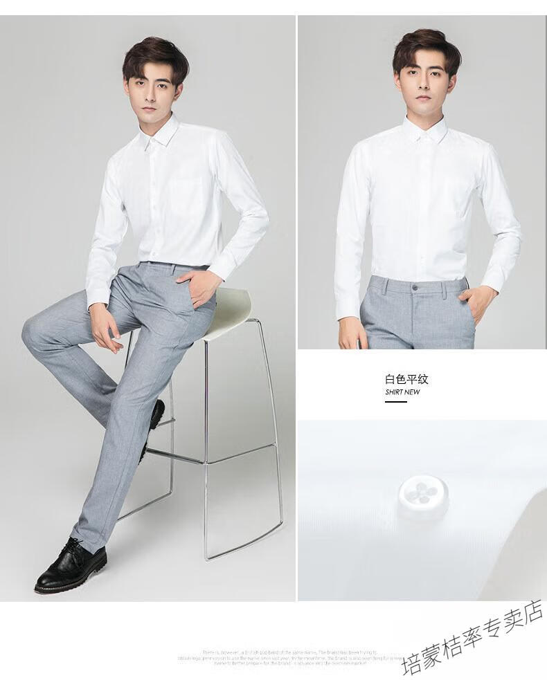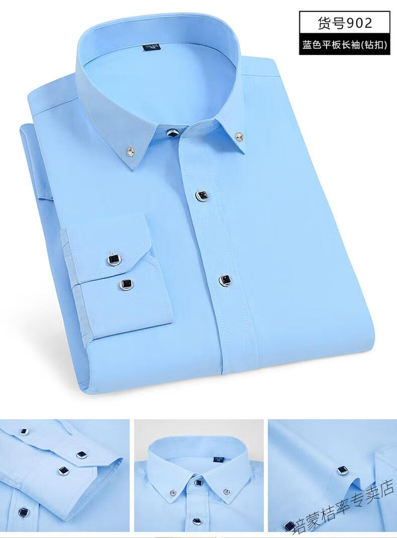 培蒙(peimeng)衬衫男长袖白衬衫商务纯色质透气衬衣中青年职业装正装韩版工装 687蓝色平板长袖 38