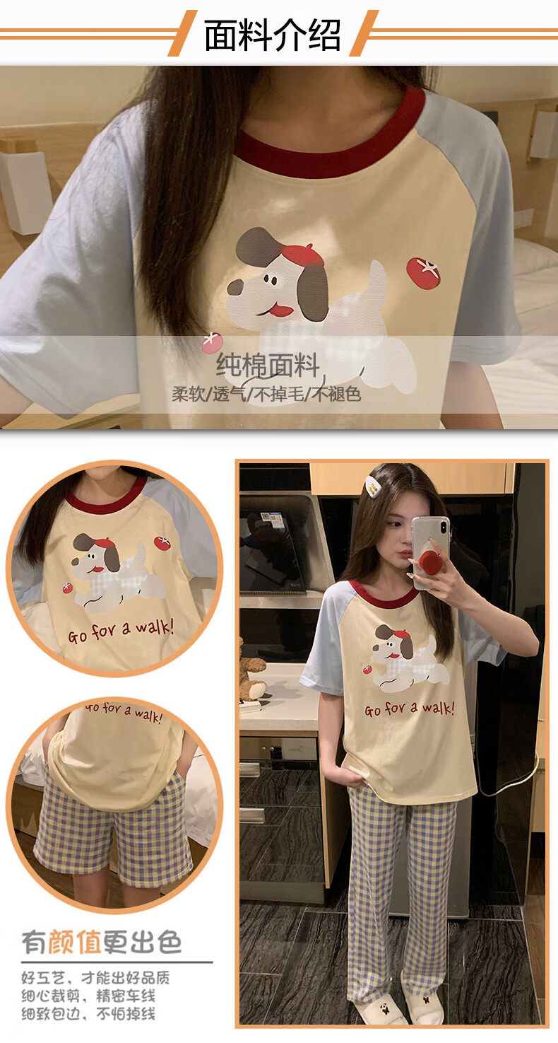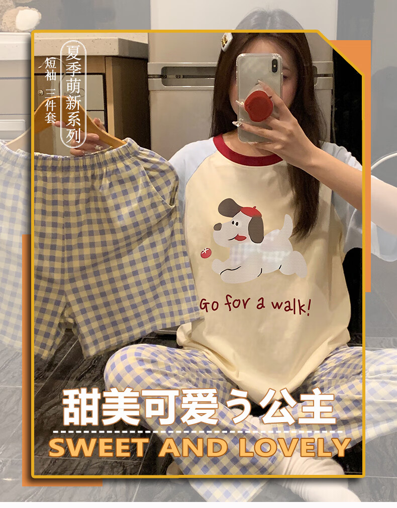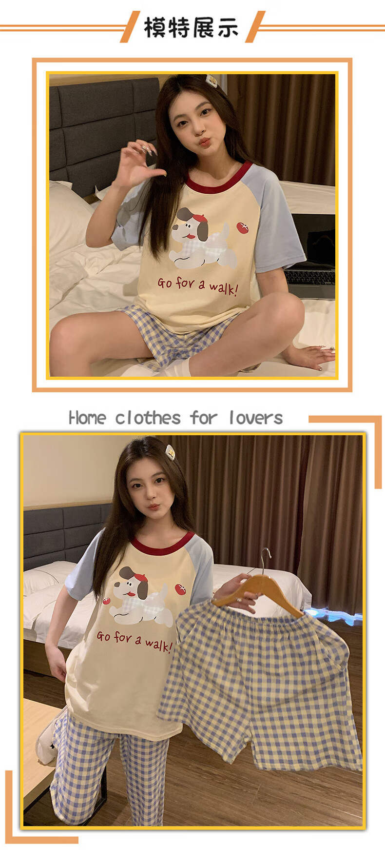 Aifenrou pijamas de tres piezas de verano para mujer pantalones de manga corta de algodón puro conjunto fino y lindo para niñas primavera otoño verano conjunto de ropa para el hogar conjunto de tres piezas W1105K manga corta + pantalones cortos + pantalones M Peso 80-100 Jin Jin equivale a 0,5 kg