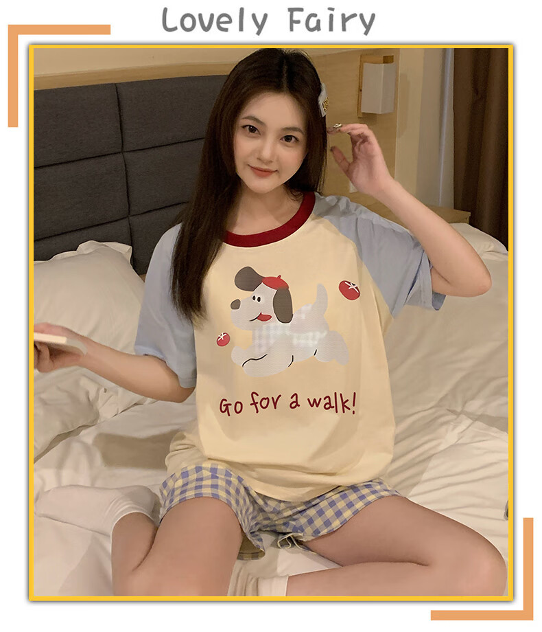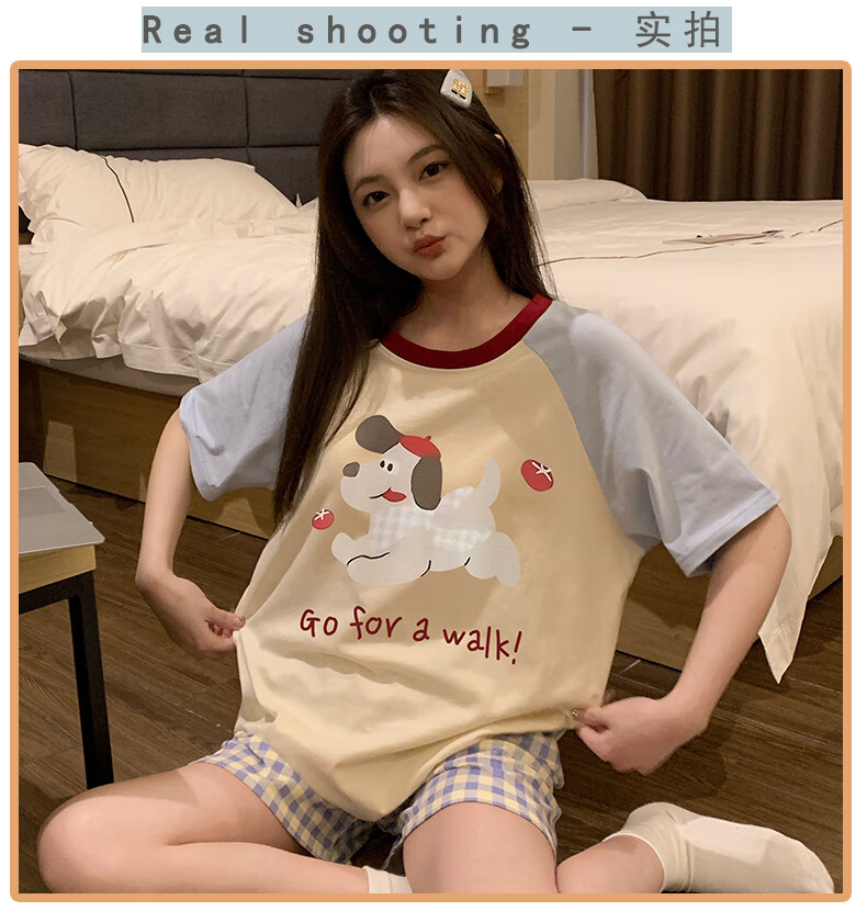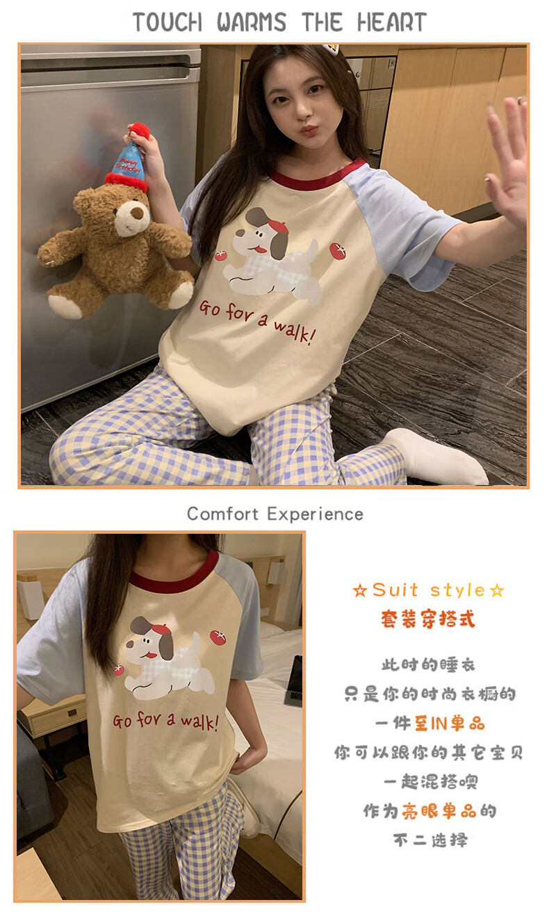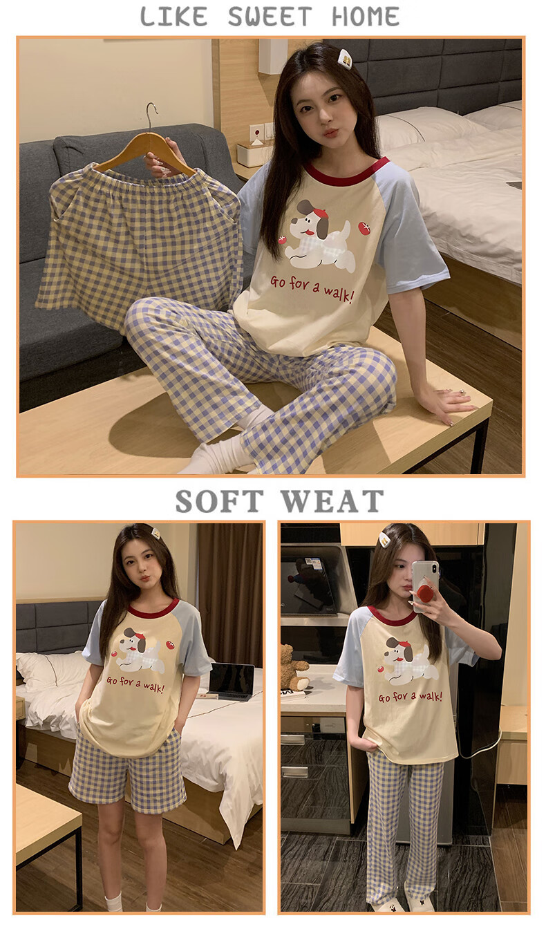 Aifenrou pijamas de tres piezas de verano para mujer pantalones de manga corta de algodón puro conjunto fino y lindo para niñas primavera otoño verano conjunto de ropa para el hogar conjunto de tres piezas W1105K manga corta + pantalones cortos + pantalones M Peso 80-100 Jin Jin equivale a 0,5 kg
