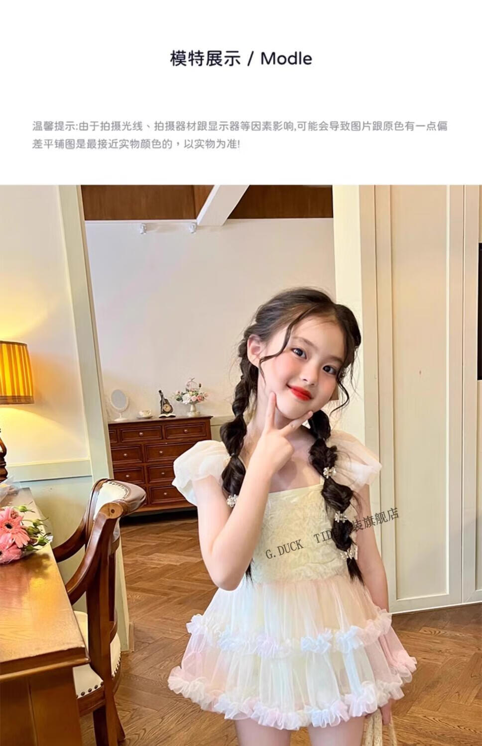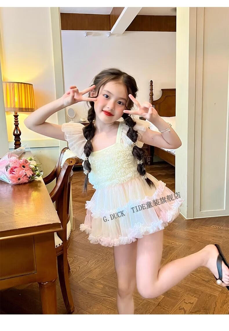 G.duck女童夏季泳装2025新款夏装儿童连衣裙tutu裙子宝宝夏款公主游泳衣 3527#彩虹泳衣 90 身高80cm左右