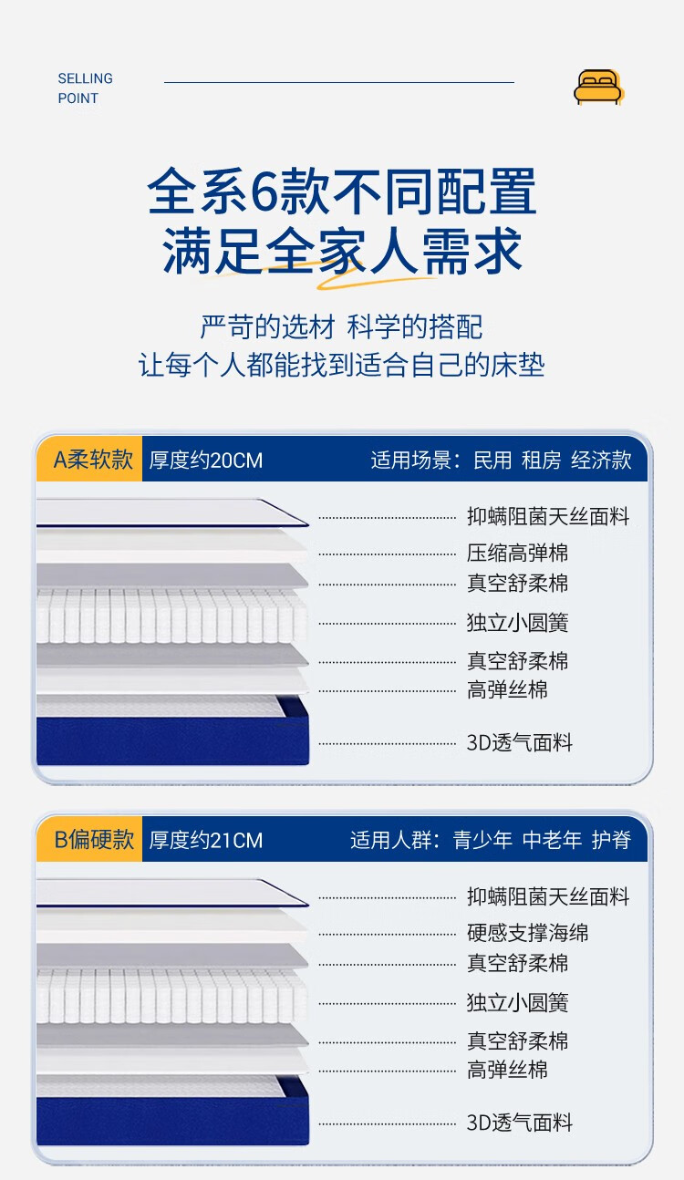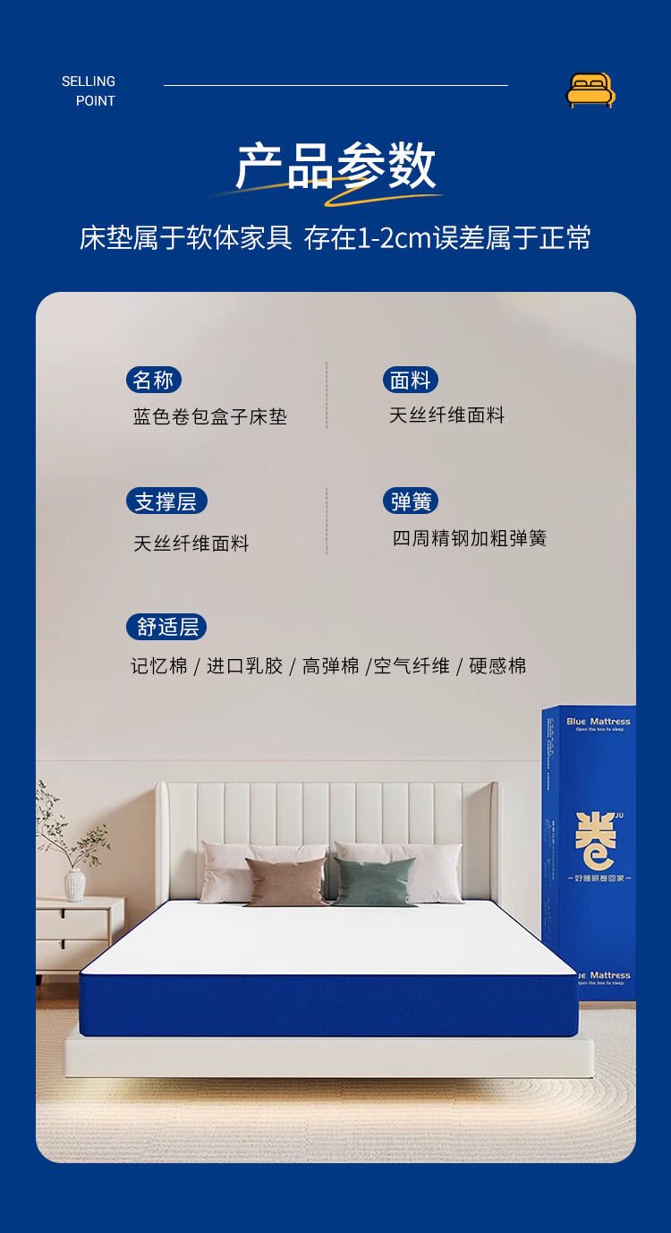 Haima Qiankun independent spring memory foam roll-pack box compression roll-pack mattress Simmons latex 2 meters 2.2 meters C comfortable thick 15cm tatami/high box use 1350mm*1900mm