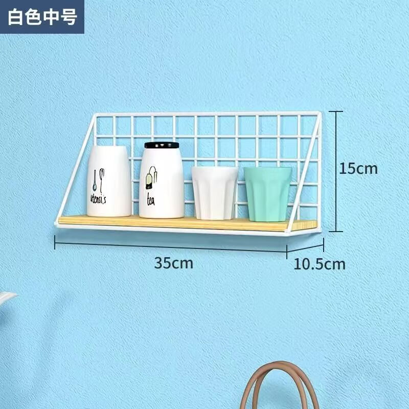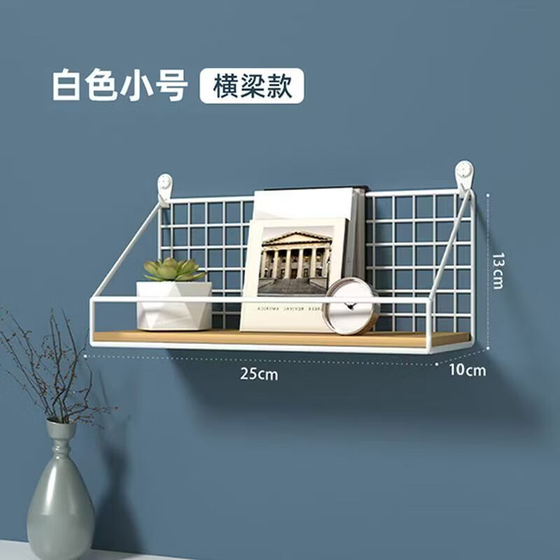 免打孔墙上置物架宿舍好物必备卧室床头壁挂卫生间浴室挂墙收纳架 白色中号一个