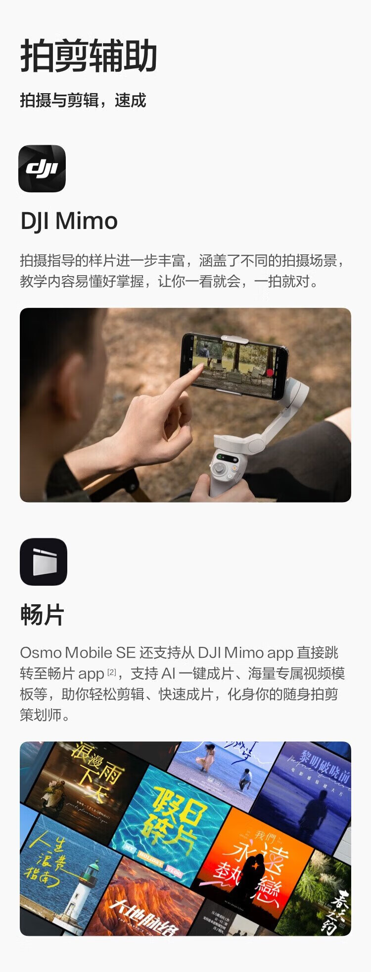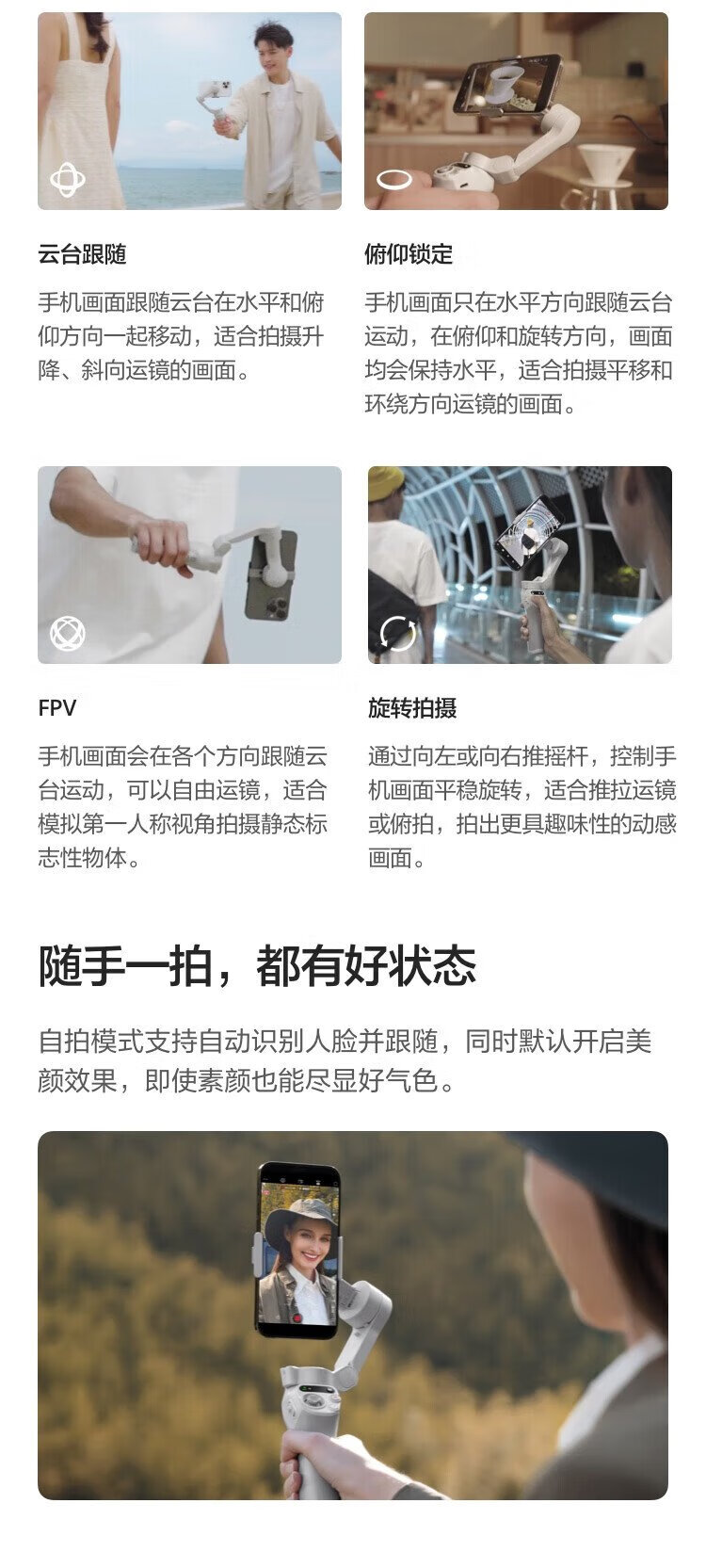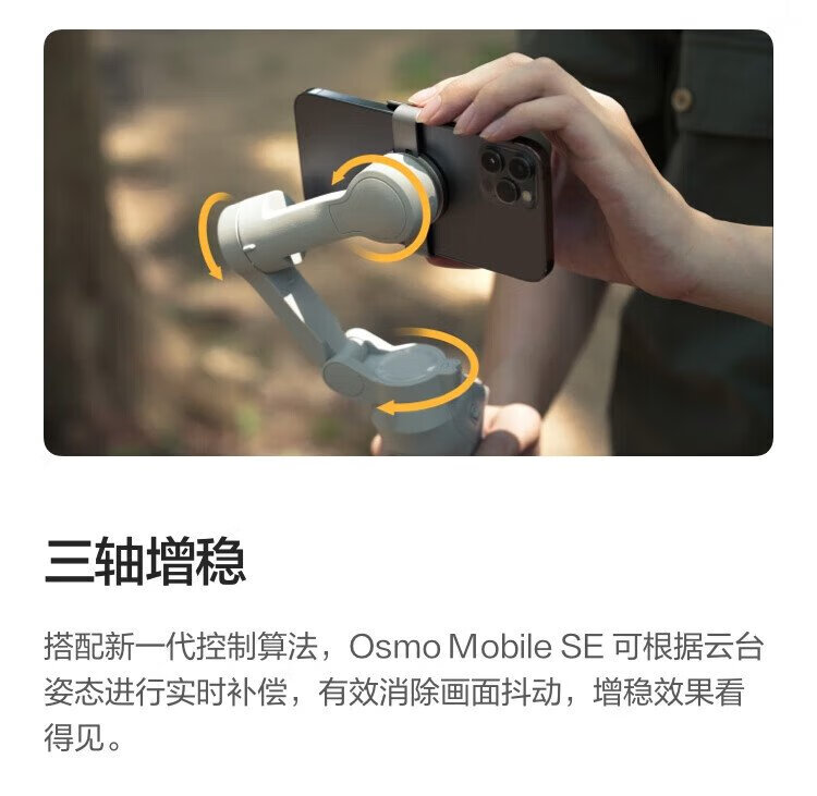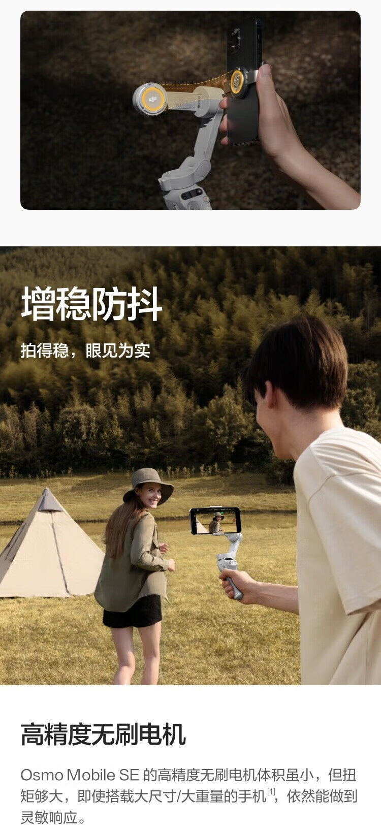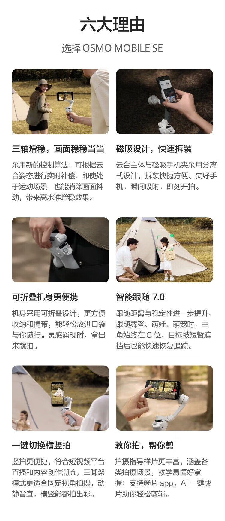 大疆(DJI)手机云台稳定器Osmo Mobile SE 三轴增稳防抖稳定器 AI跟拍 手势控制 便携自拍杆 OM SE 手机vlog Osmo Mobile SE 标配(不含随心换)