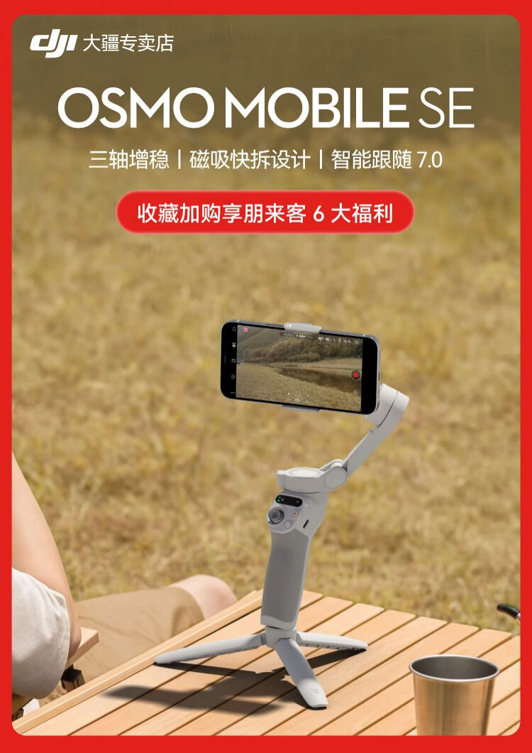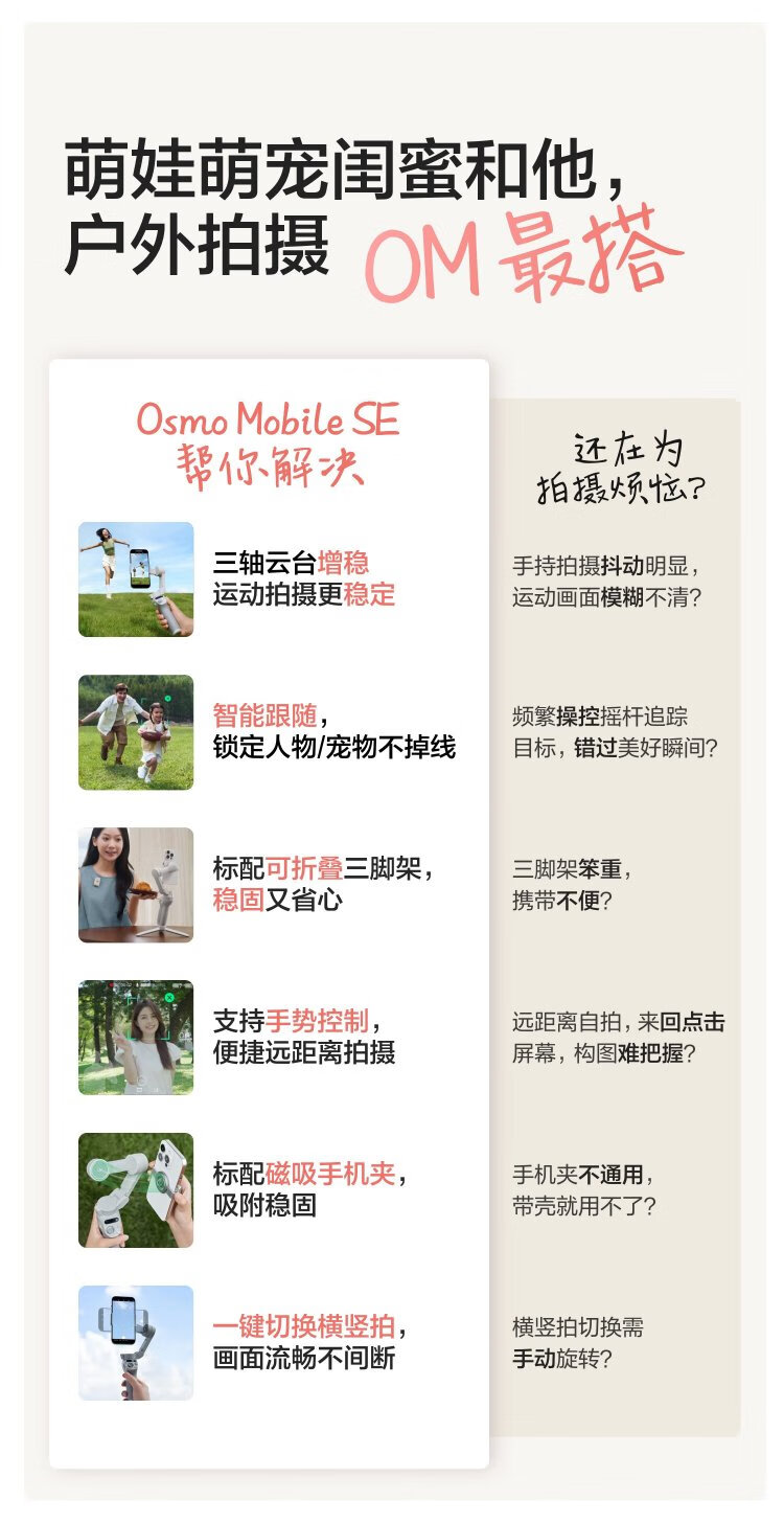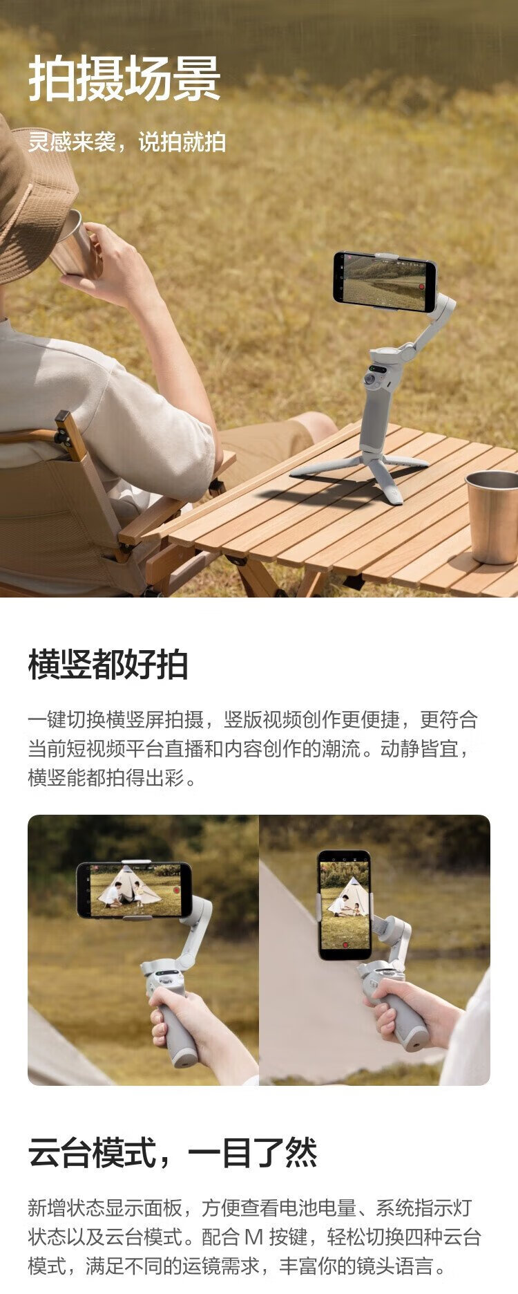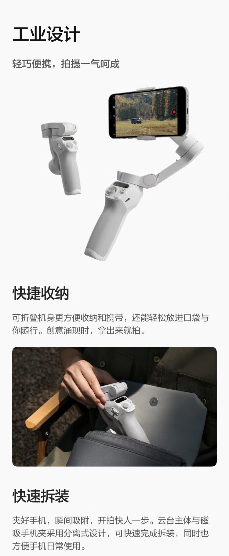 大疆(DJI)手机云台稳定器Osmo Mobile SE 三轴增稳防抖稳定器 AI跟拍 手势控制 便携自拍杆 OM SE 手机vlog Osmo Mobile SE 标配(不含随心换)