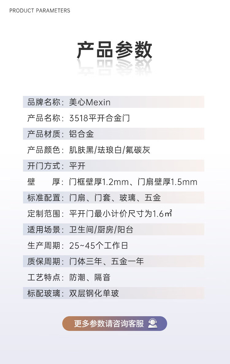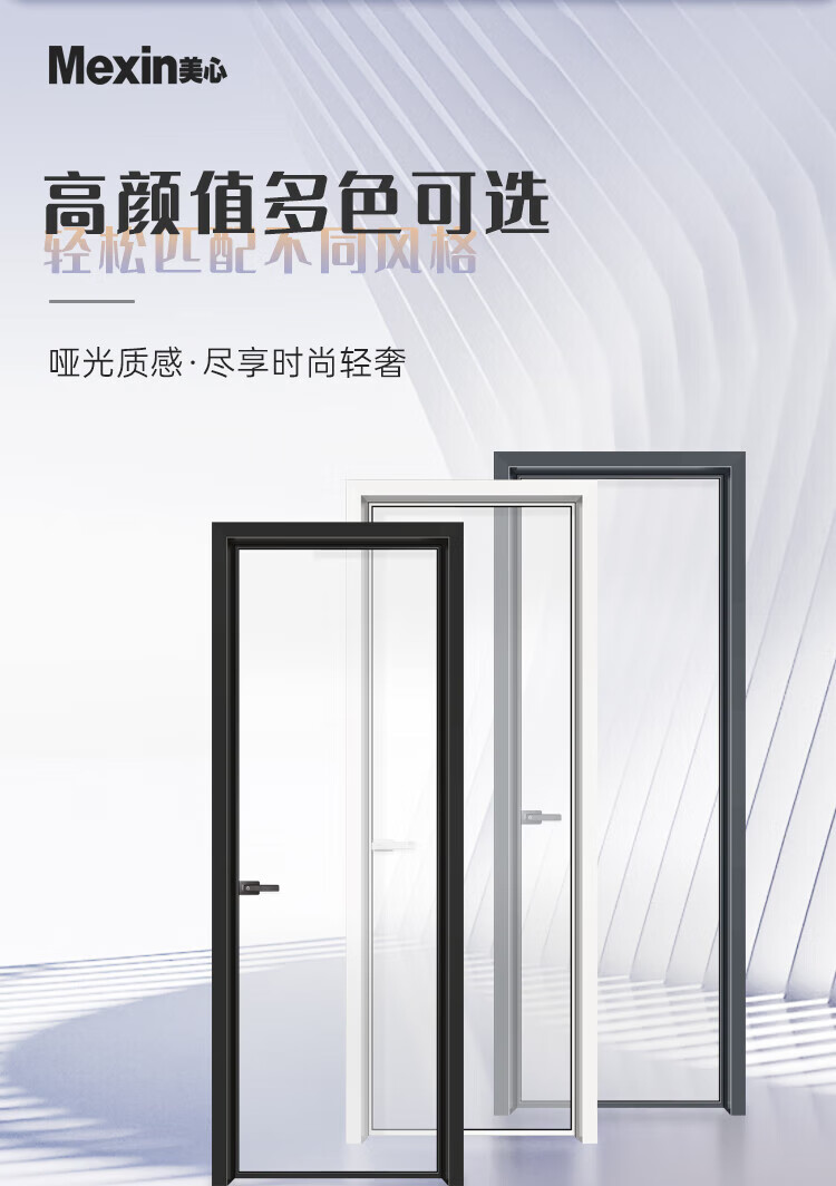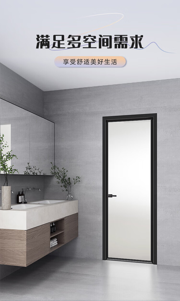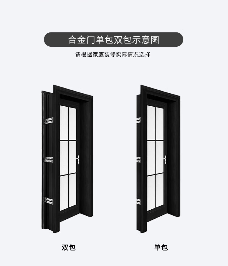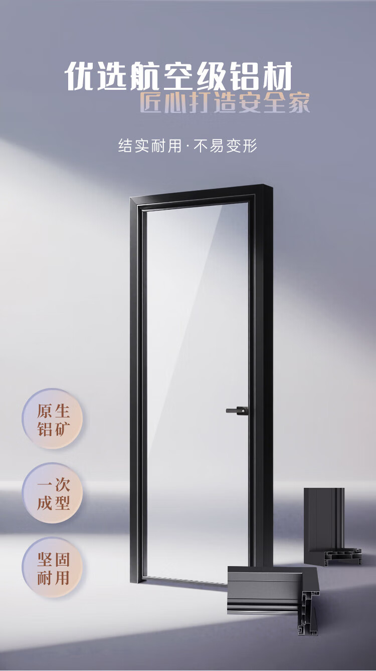 美心(Mexin)合金门双层钢化玻璃铝合金厨卫门极简现代坚固防潮3518 肌肤黑单包-2200*800