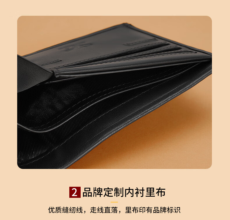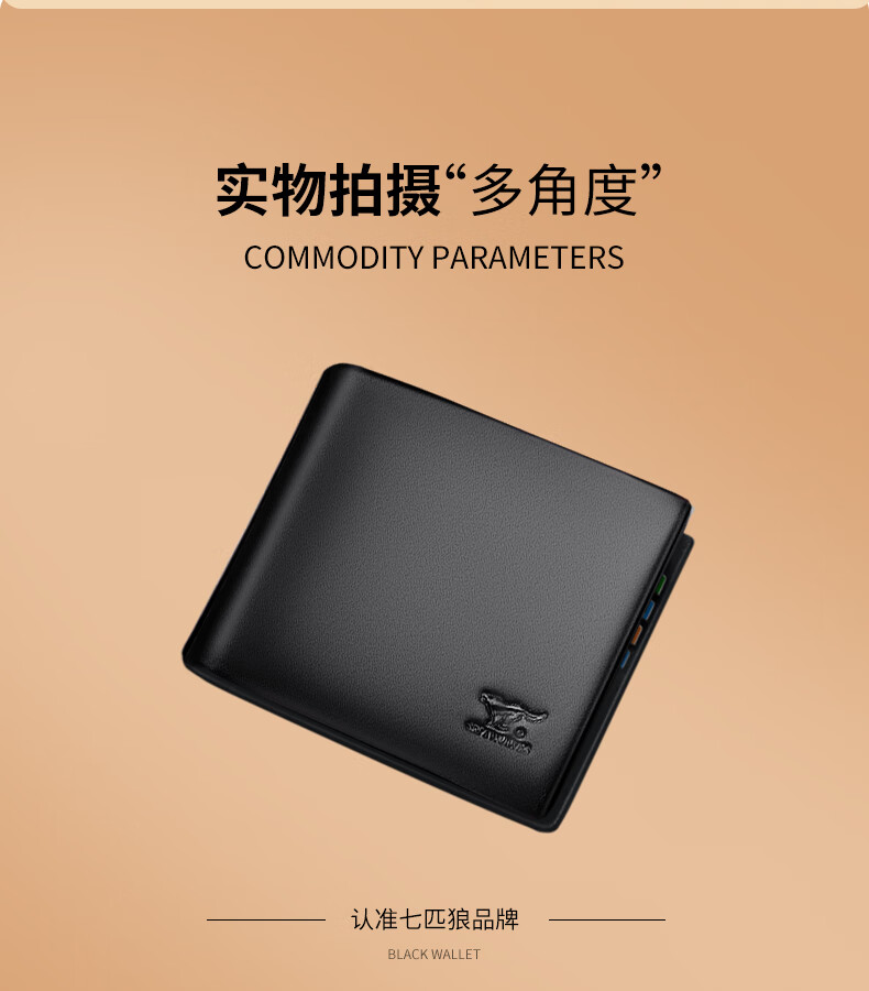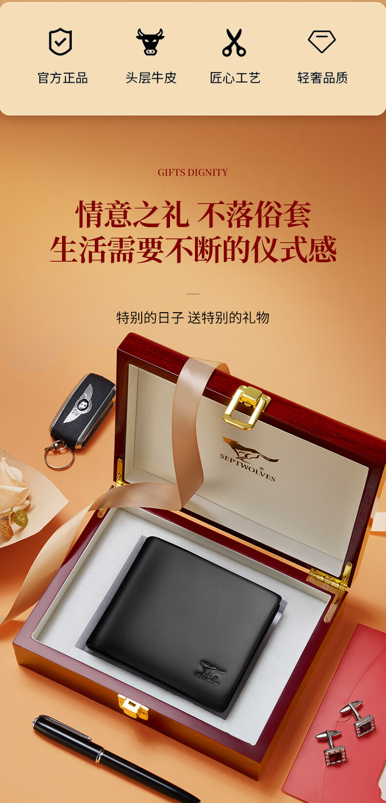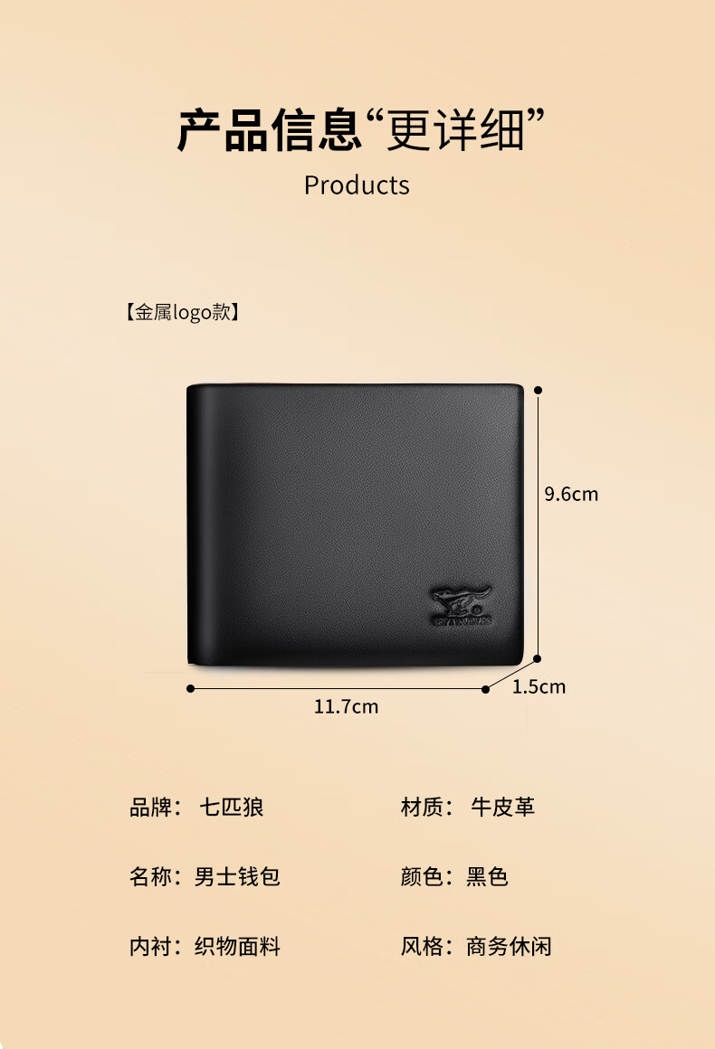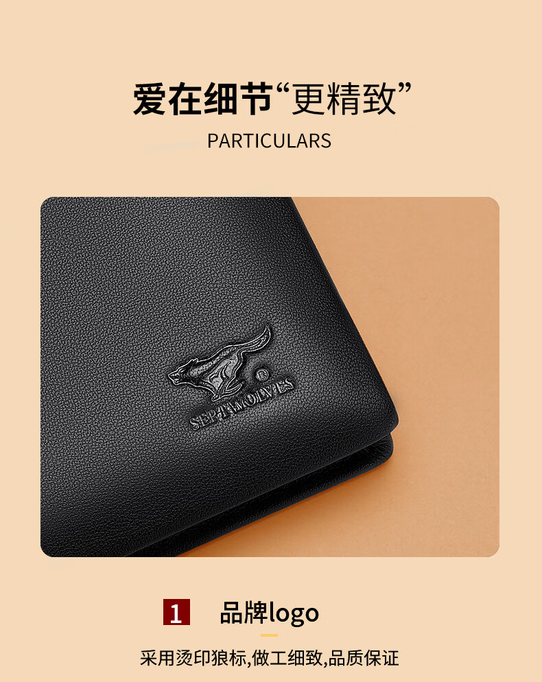 七匹狼(SEPTWOLVES)钱包男士短款钱夹头层牛皮皮夹高档木礼盒实用生日礼物送男友老公 【雅黑色】实木礼盒+手提袋