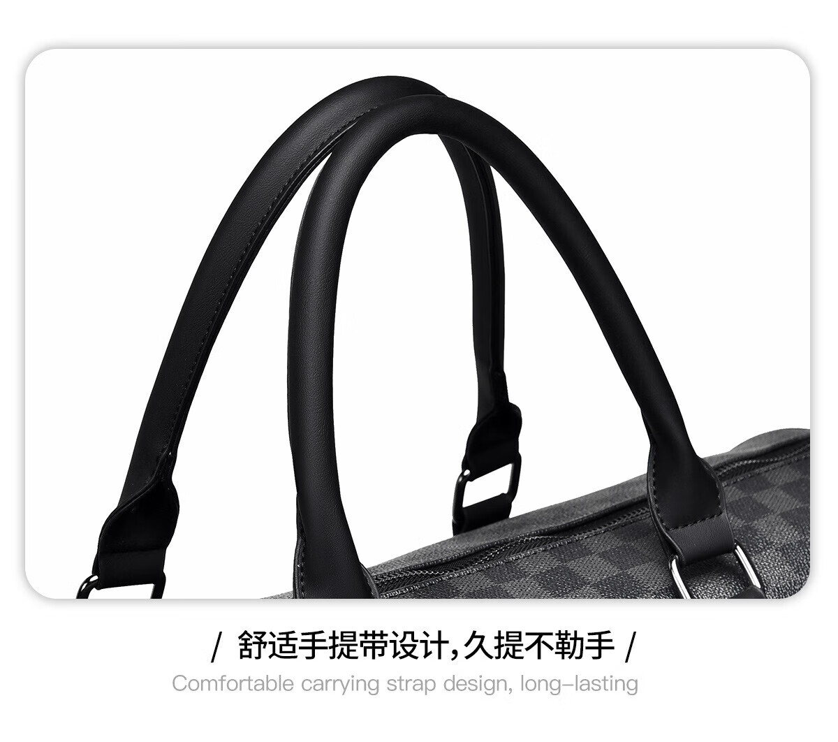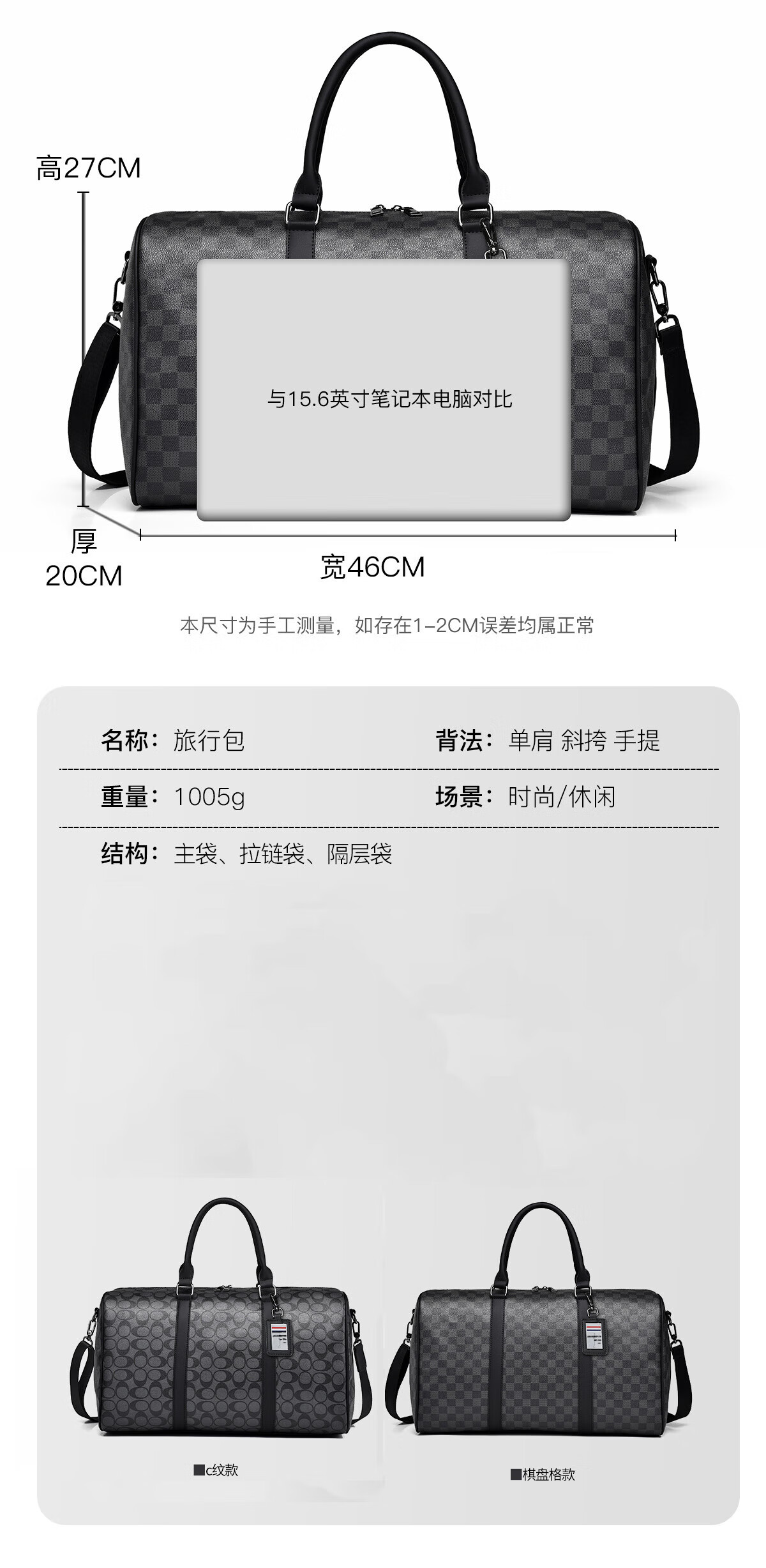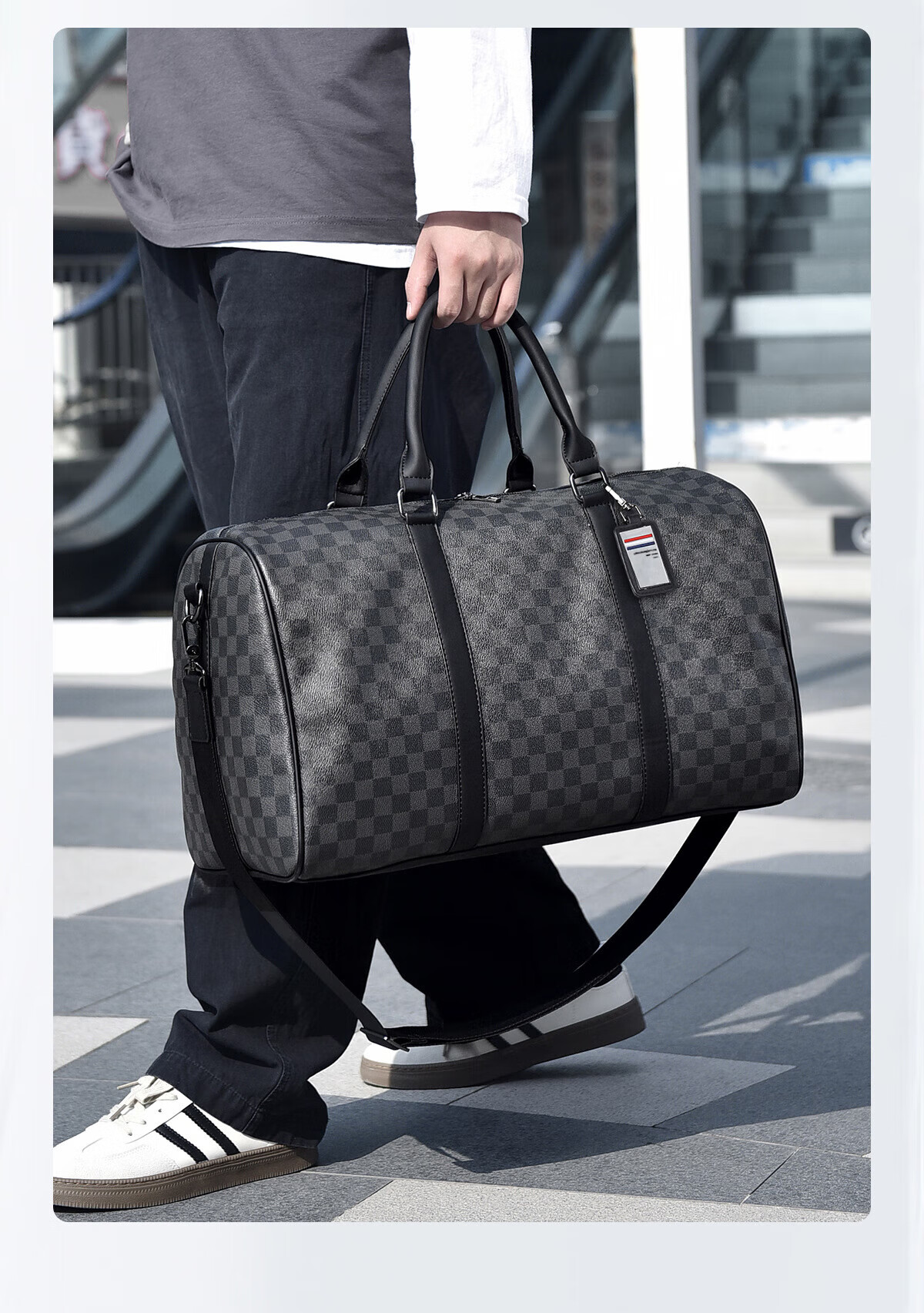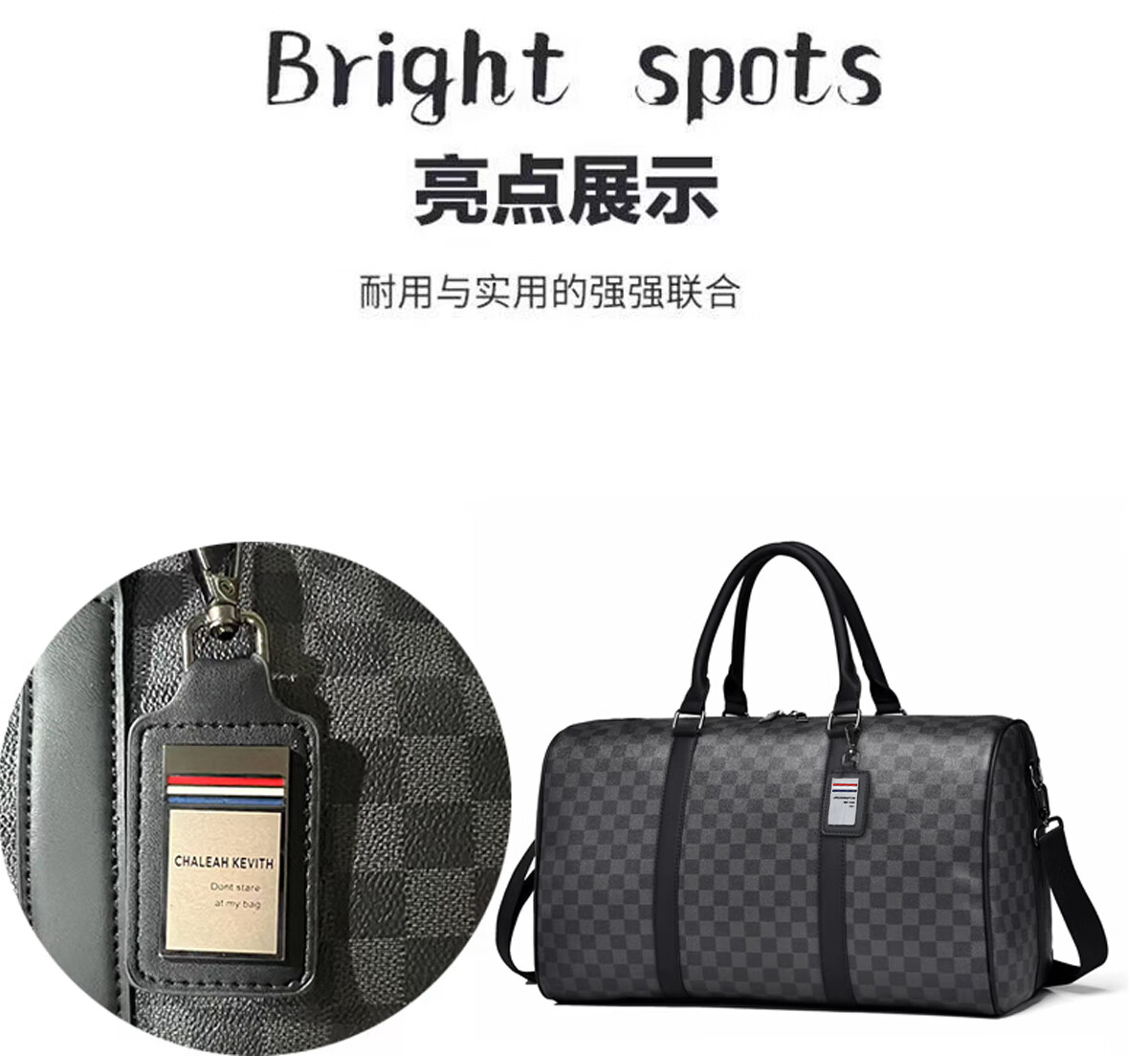 CHALEAH&KEVITH男士旅行包牛皮单肩手提包行李袋大容量出差行李包健身包收纳袋 ck778格子