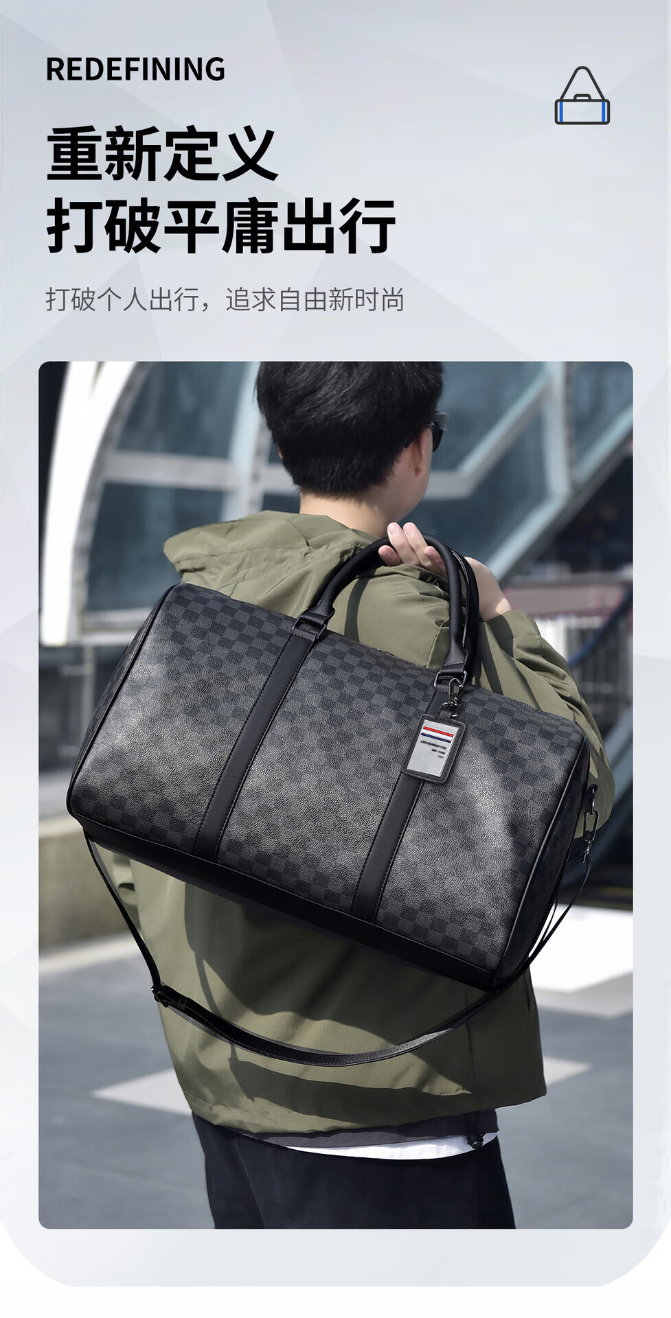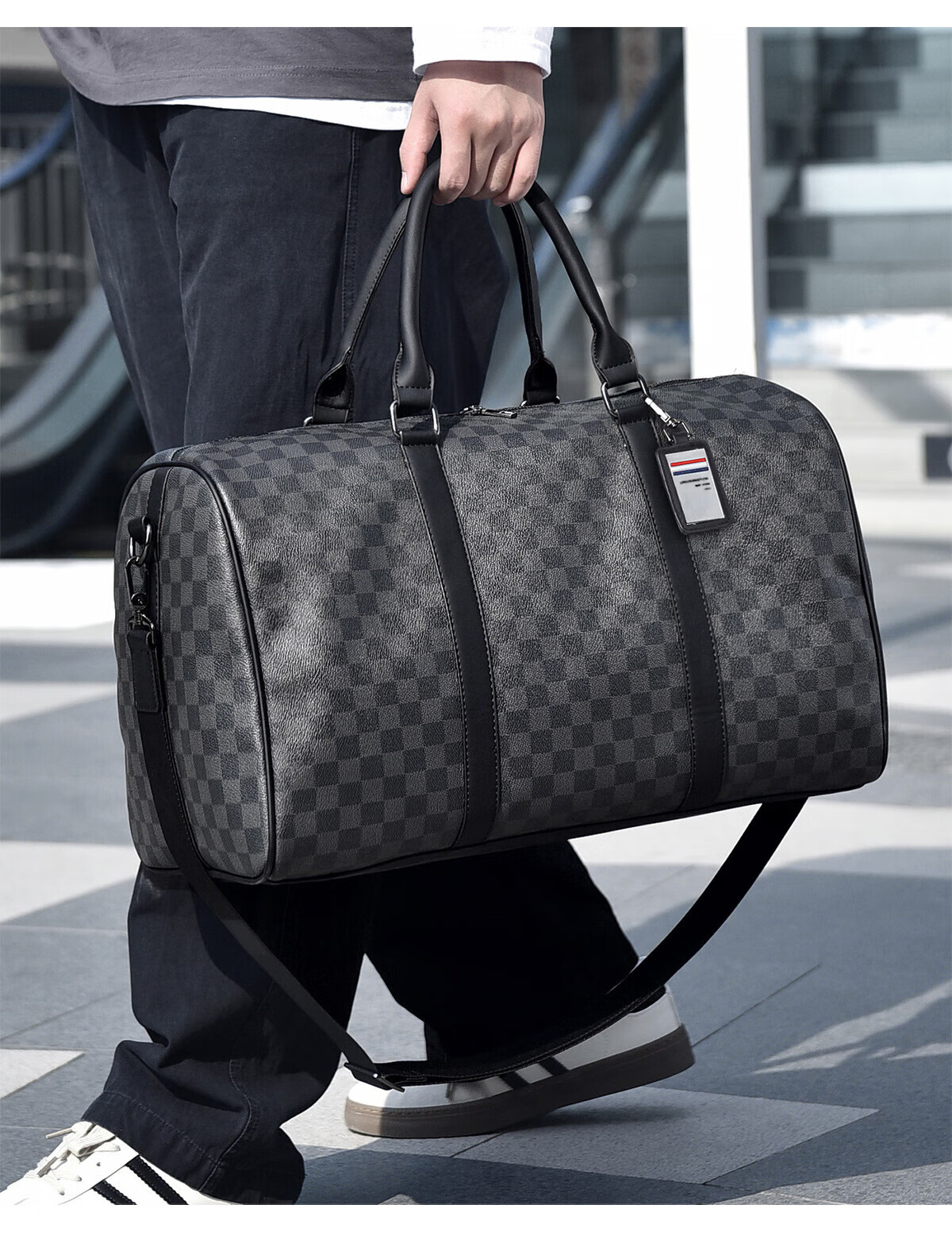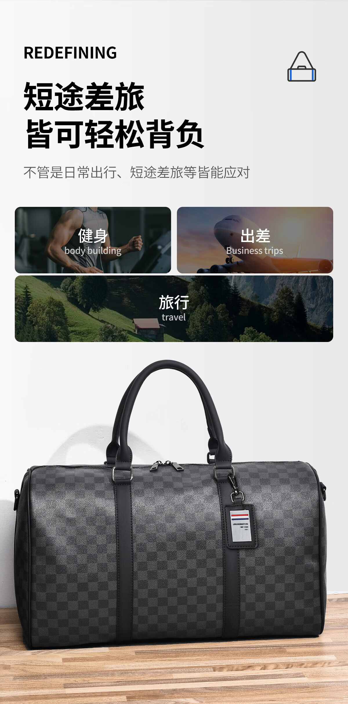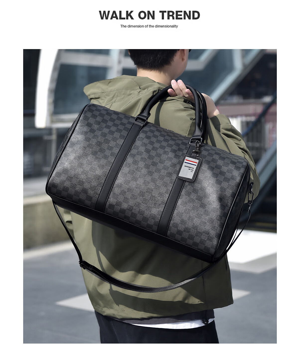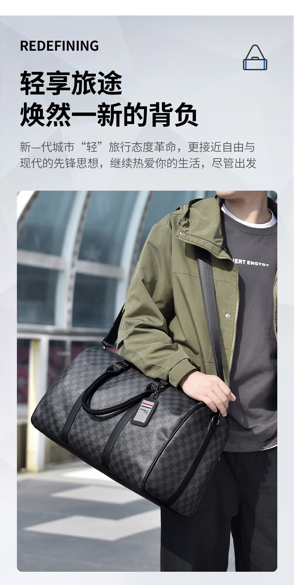 CHALEAH&KEVITH男士旅行包牛皮单肩手提包行李袋大容量出差行李包健身包收纳袋 ck778格子