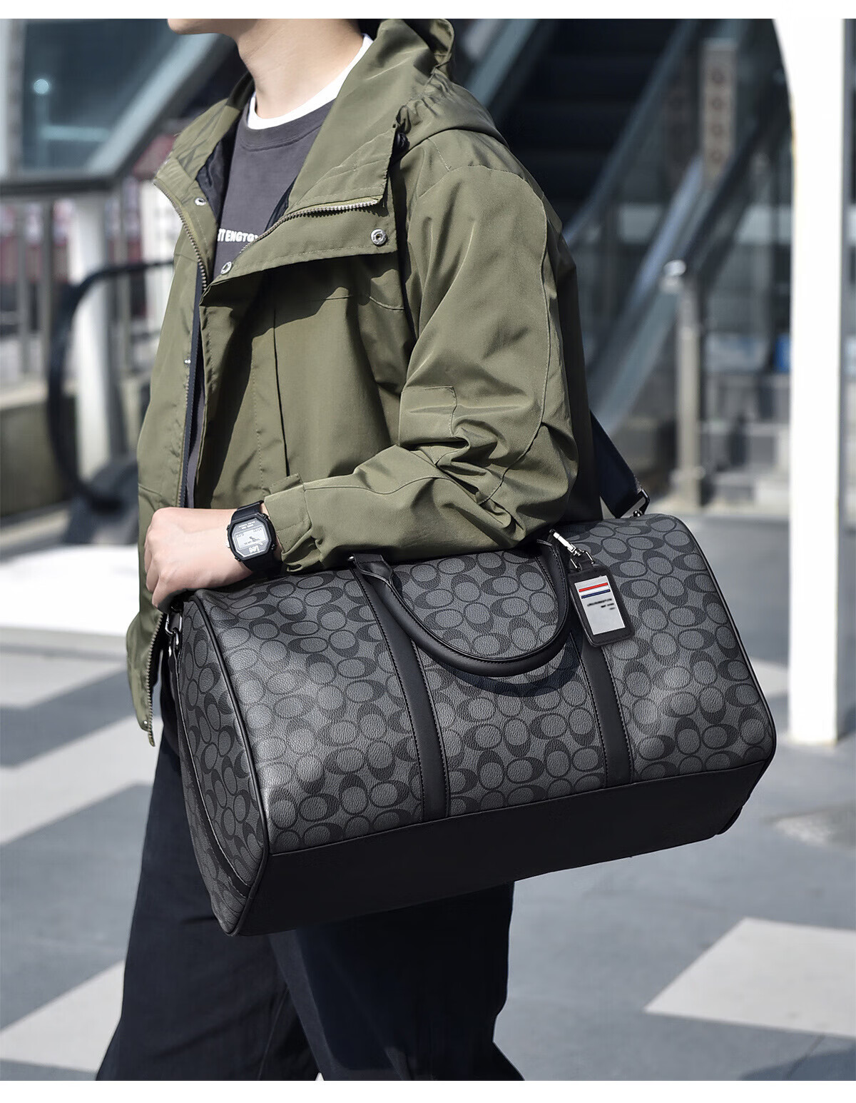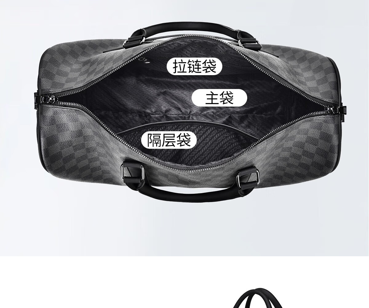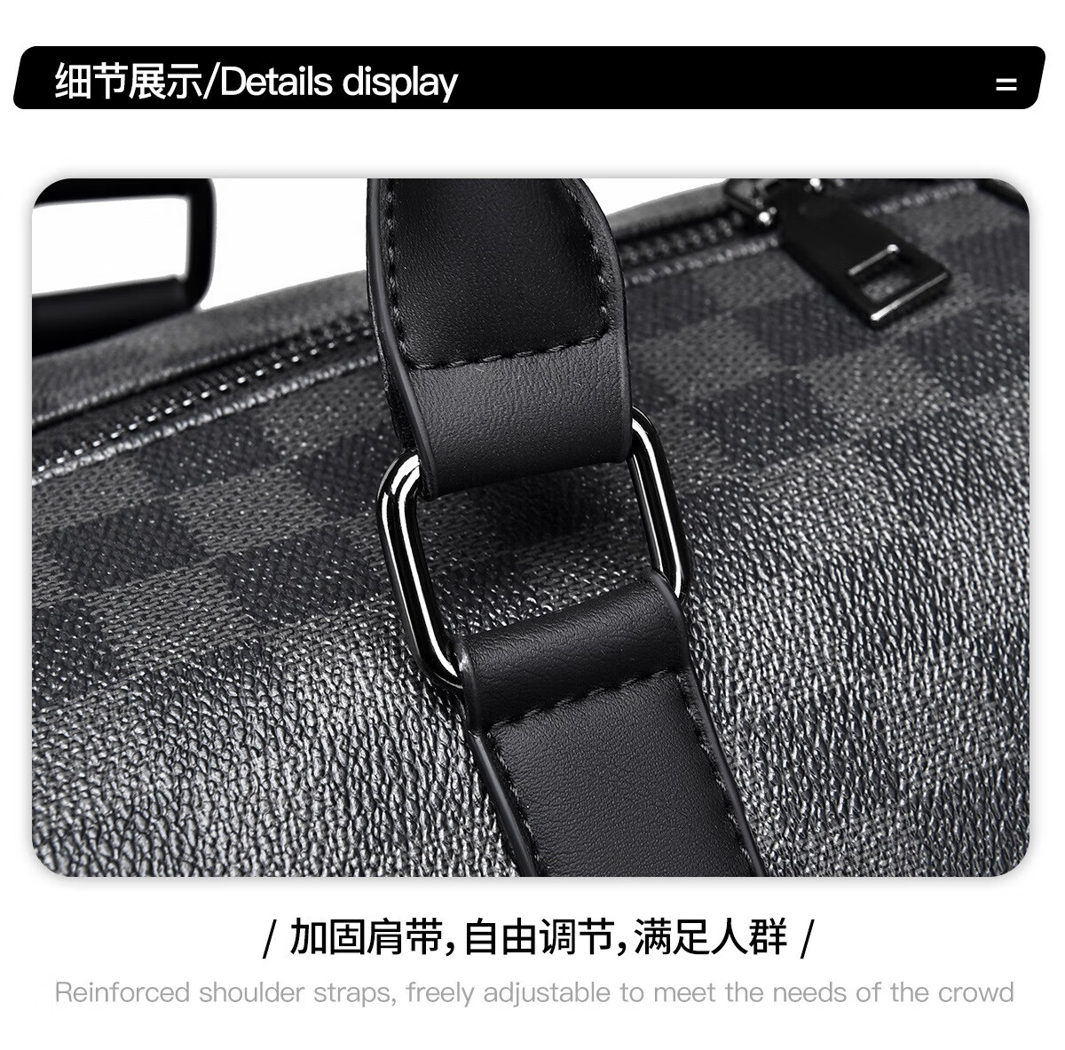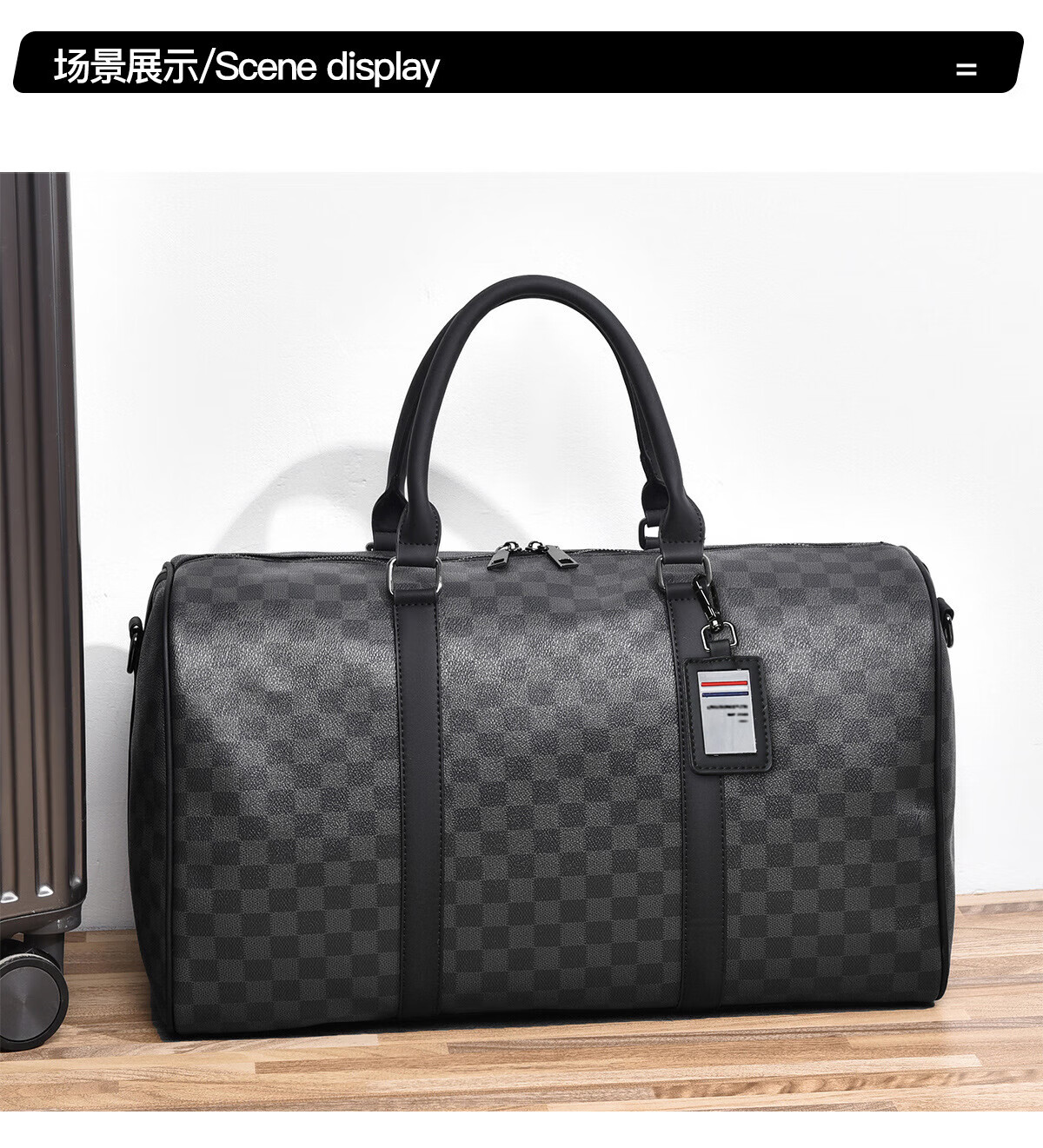 CHALEAH&KEVITH男士旅行包牛皮单肩手提包行李袋大容量出差行李包健身包收纳袋 ck778格子