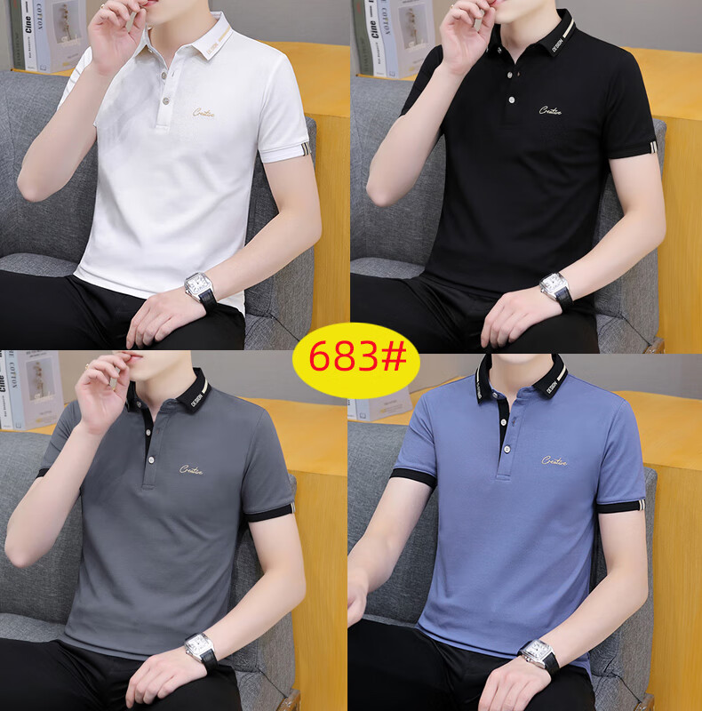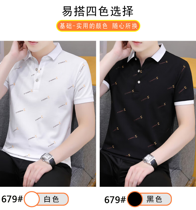 花花公子夏季polo衫男士短袖t恤翻领潮流冰丝半袖体恤潮牌男装上衣服商务 679黑色 M (适合:100-120斤)