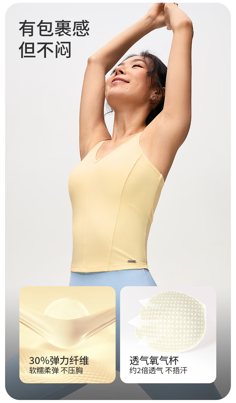 SPLAN-S++ Französische Sportweste mit tiefem V-Ausschnitt, Damen-Oberbekleidung, Yoga-BH, All-in-One-Brustpolster, Pilates-Oberteil, heller Pudding, M