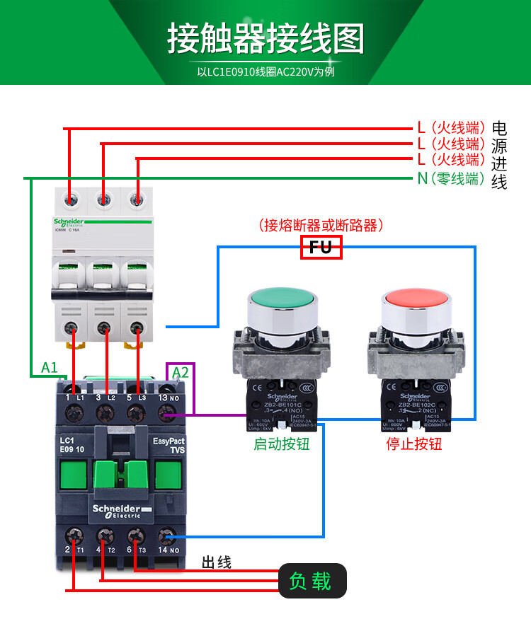 施耐德(Schneider)交流接触器LC1E 0910 1210 1810 2510 3210 3 LC1E06101常开 F5NA LC1E12101常开 B5NAC24V