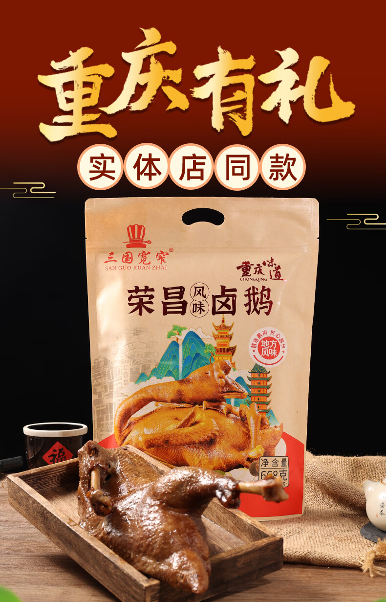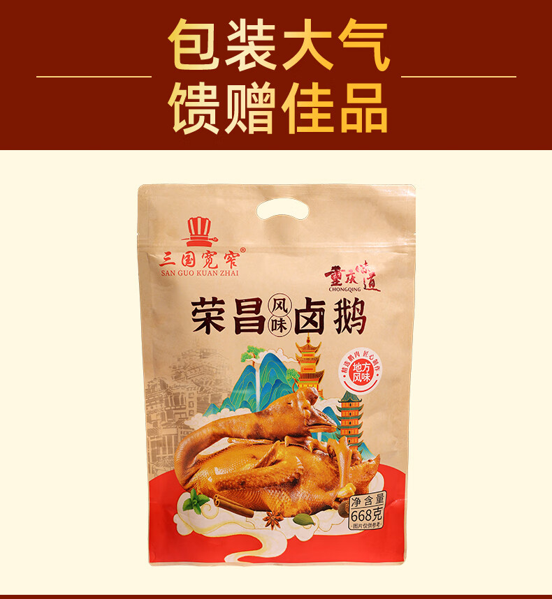 重庆特产三国宽窄荣昌卤鹅668g真空卤味熟食真空包装开袋即食 3袋*荣昌风味卤鹅688g【重量为准
