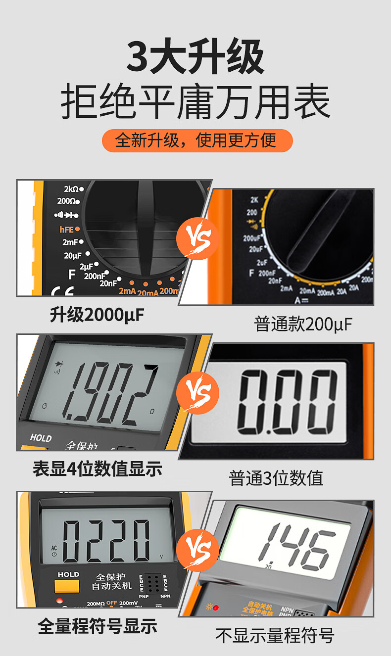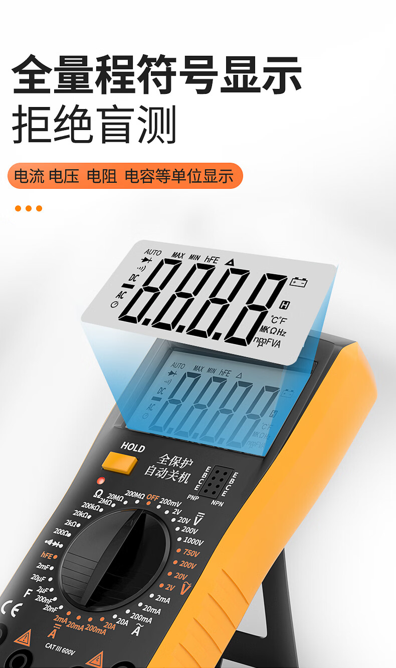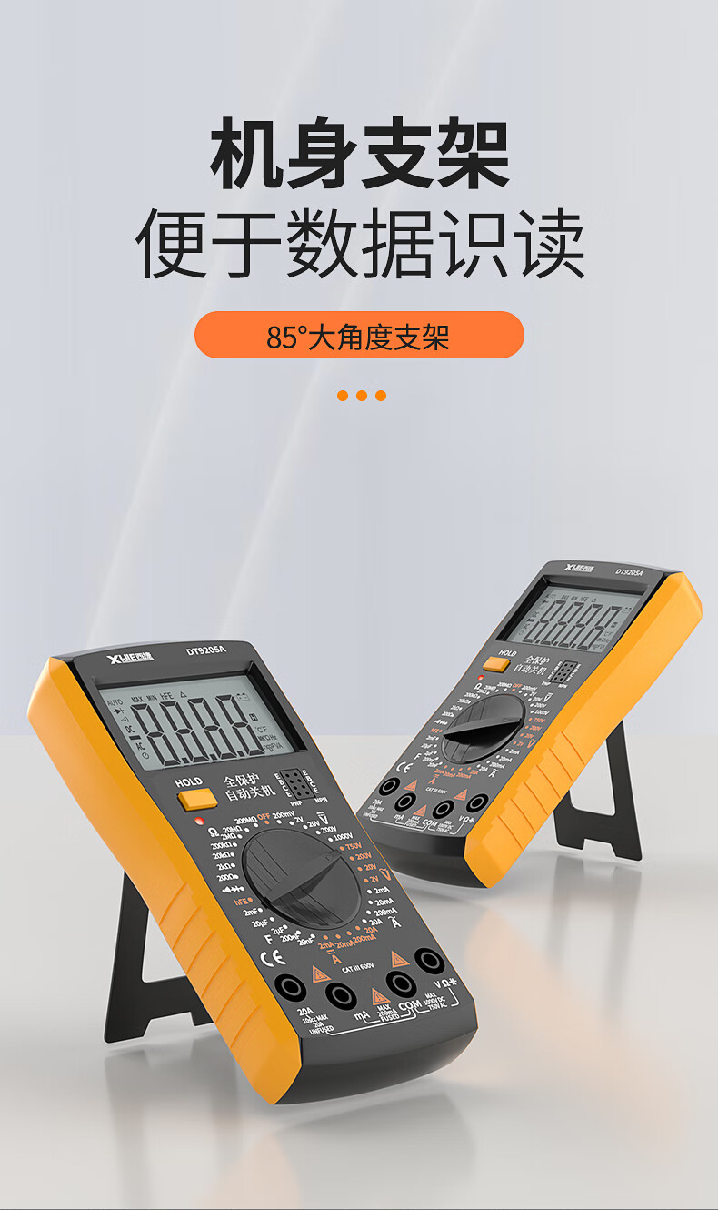 西捷升级新款DT9205智能防烧万用表电工家用维修高精度表2000电容 新款黄色9205A标配
