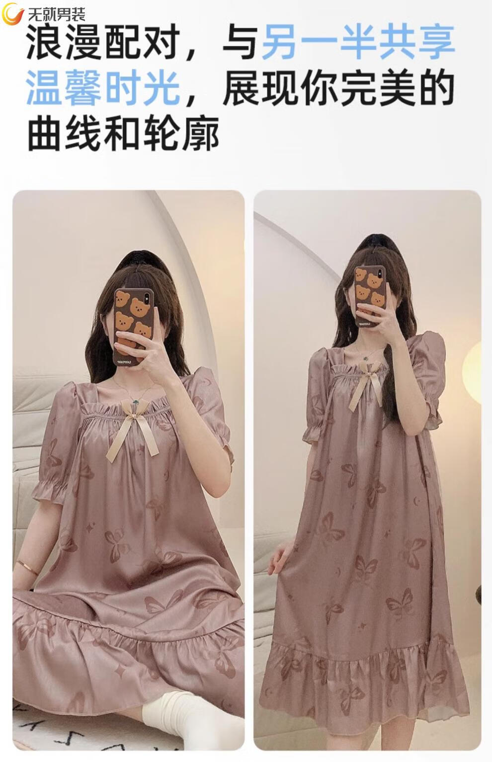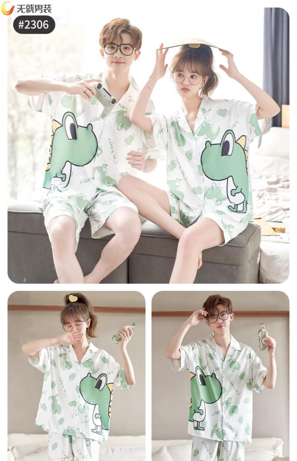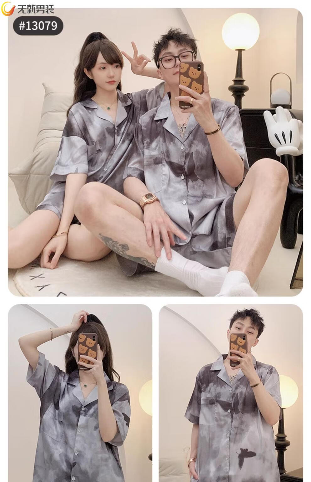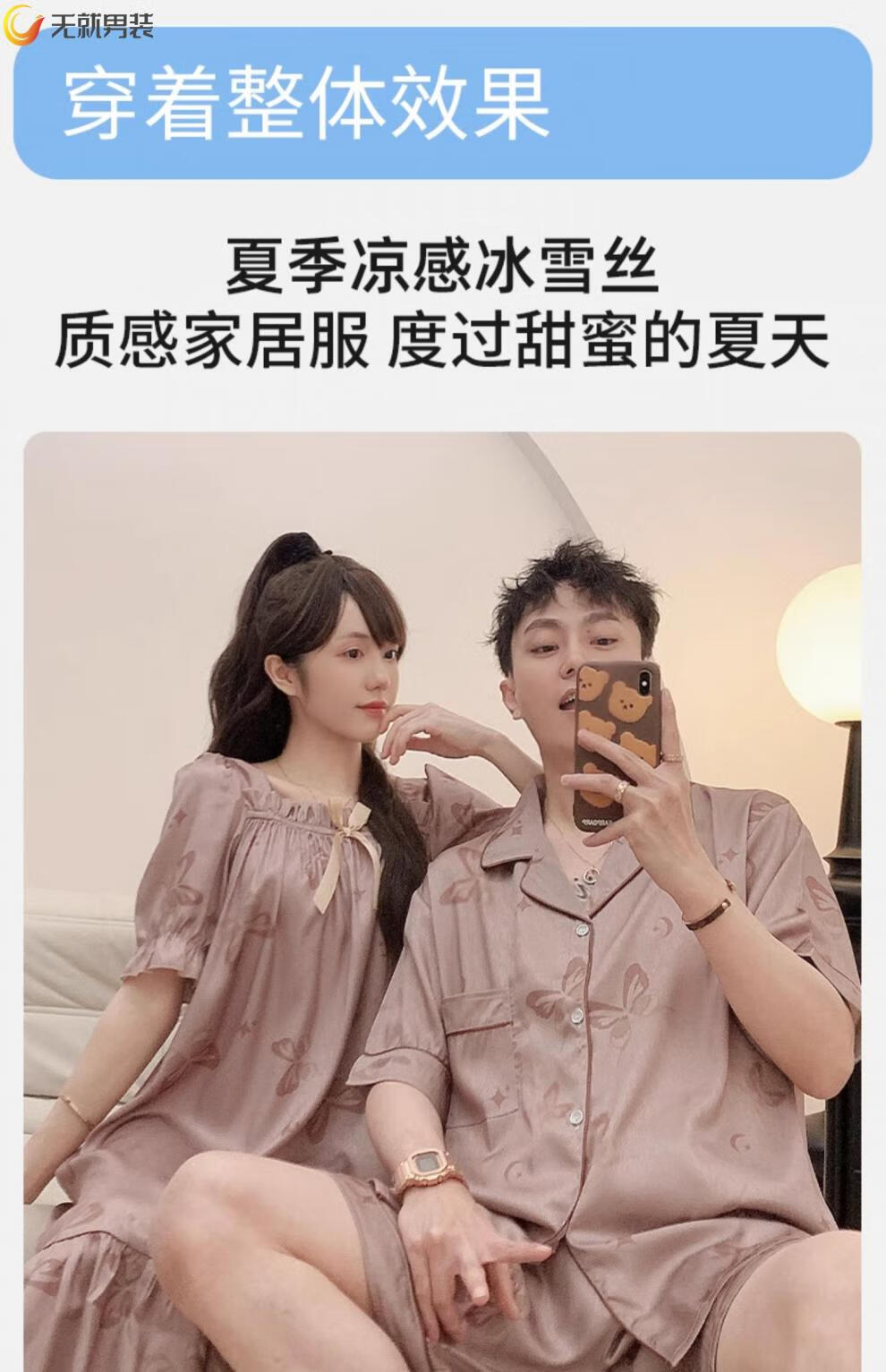 格宝特(gebaote)情侣夏季短袖睡裙女士薄款凉爽士轻奢可外穿家居服 13076-13077 M 女+男L