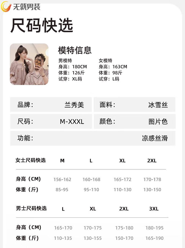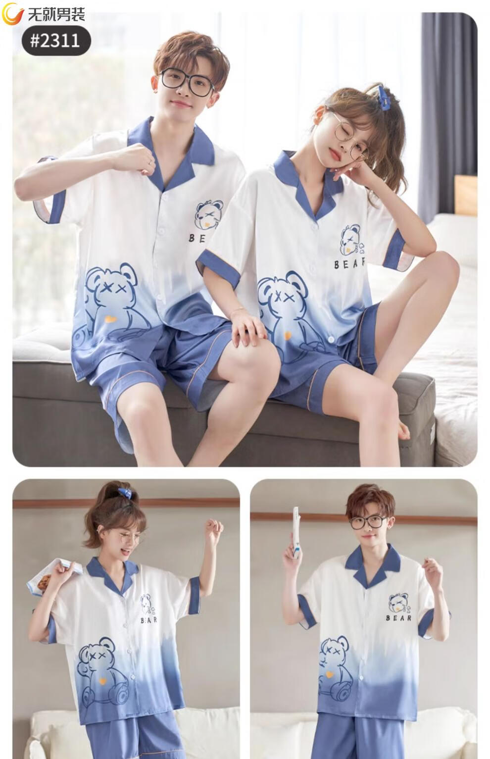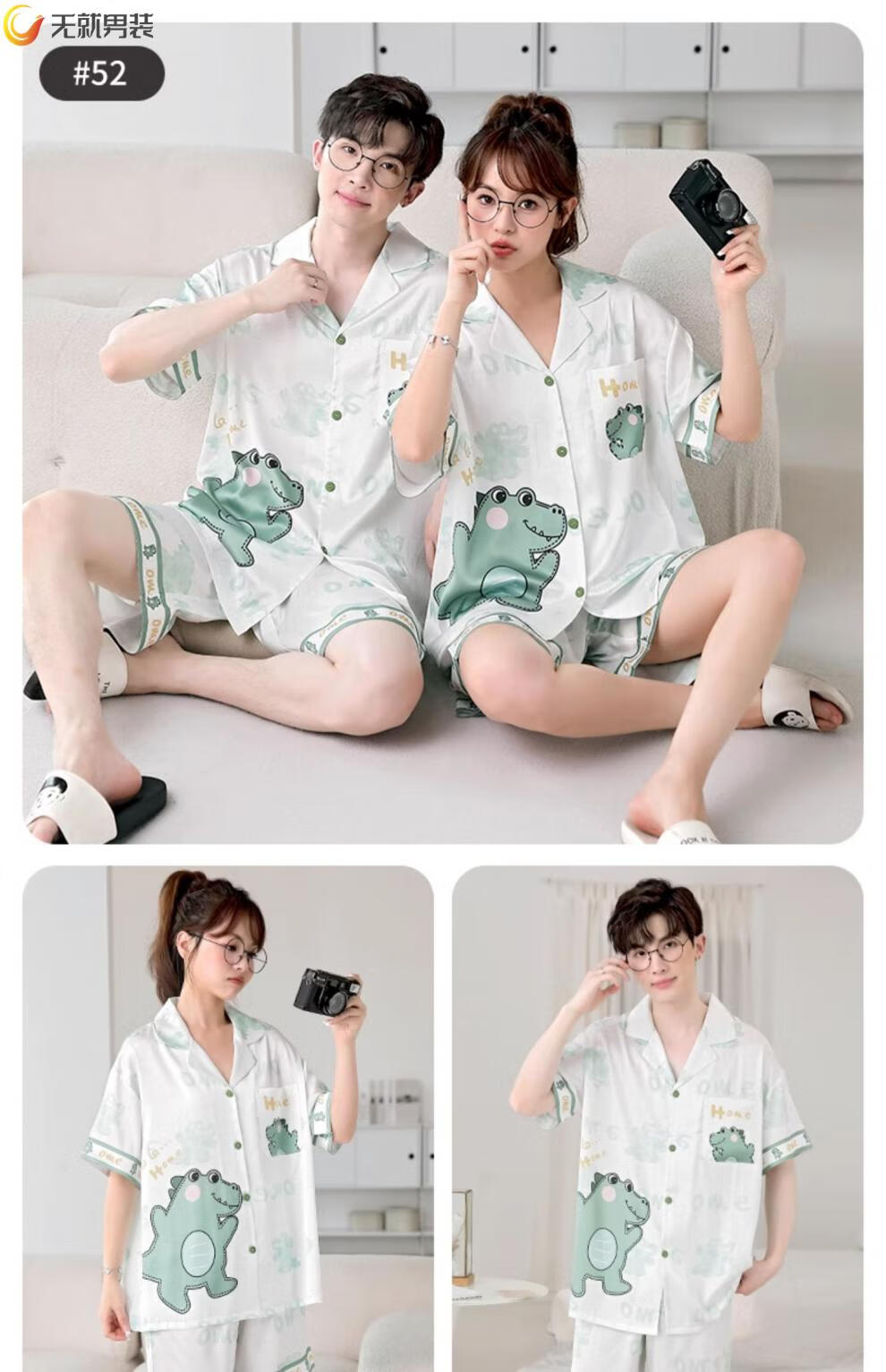 格宝特(gebaote)情侣夏季短袖睡裙女士薄款凉爽士轻奢可外穿家居服 13076-13077 M 女+男L
