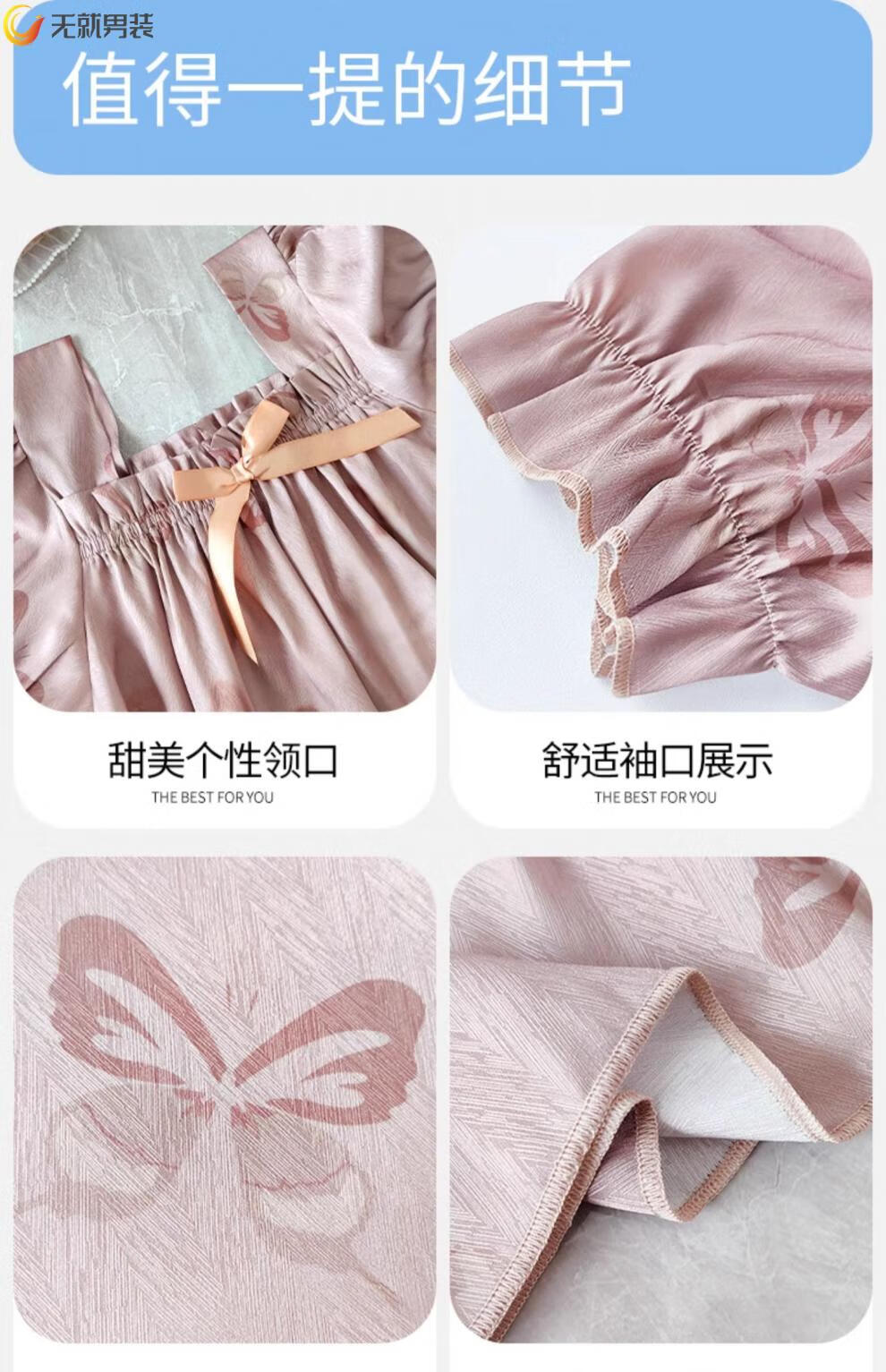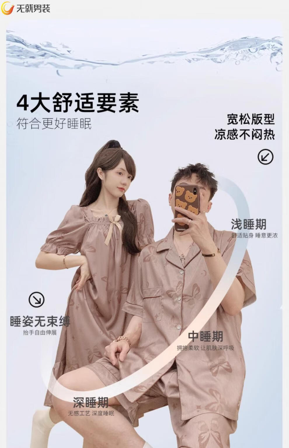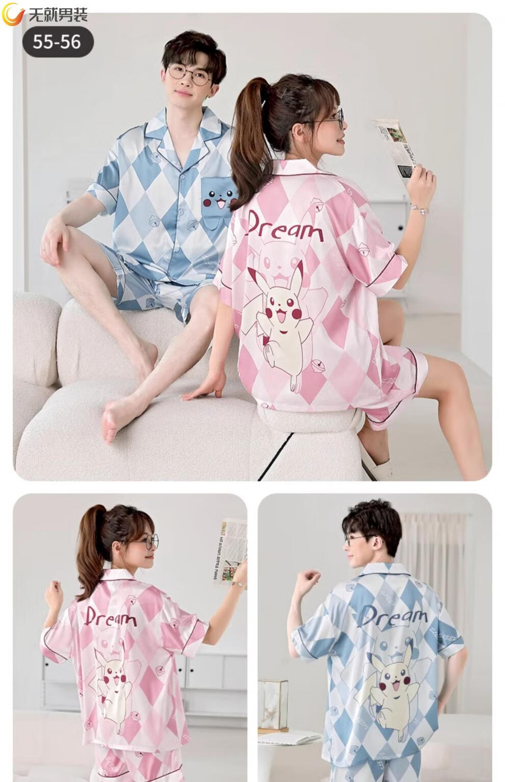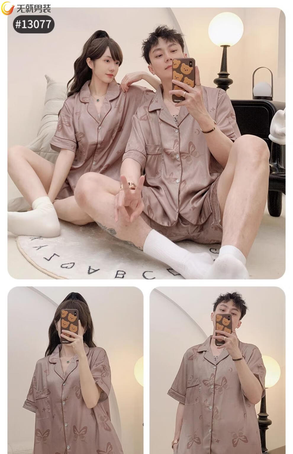 格宝特(gebaote)情侣夏季短袖睡裙女士薄款凉爽士轻奢可外穿家居服 13076-13077 M 女+男L