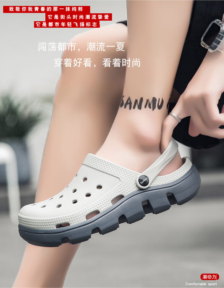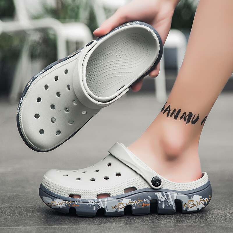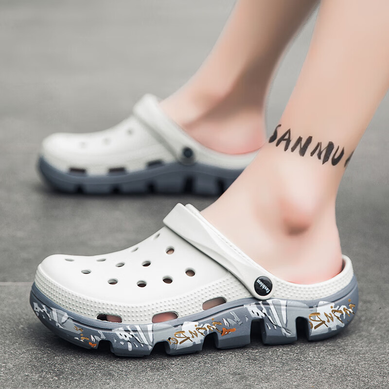 LUOKEN Zapatos Croc Verano para Hombres Nuevo Estilo Excursión Zapatillas Antideslizantes para niños Sandalias para Conducir al Aire Libre de Suela Gruesa Zapatos para Vadear Baotou 739 Blanco Plomo 38 Tomado por Talla de Zapato Deportivo