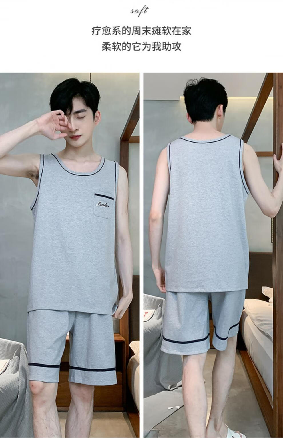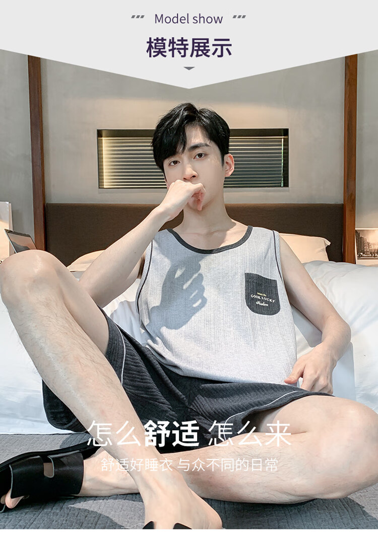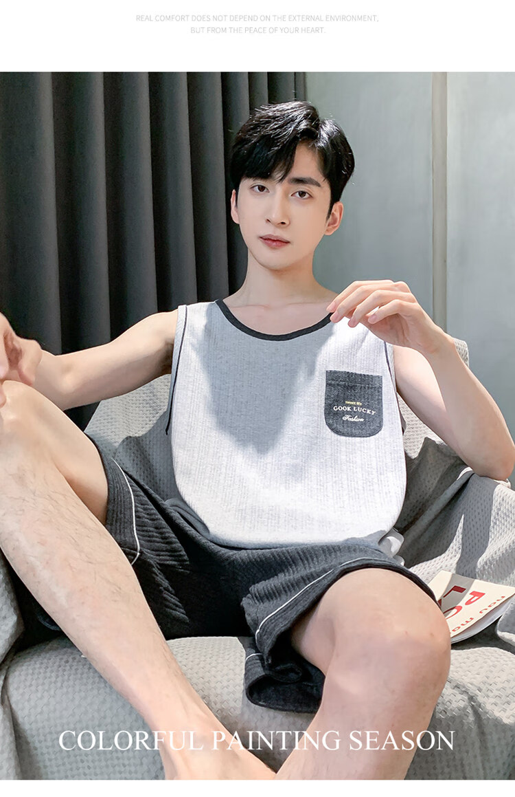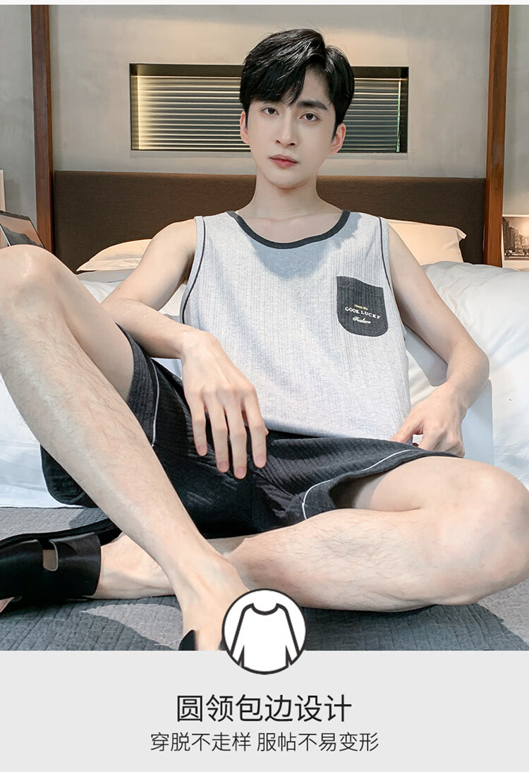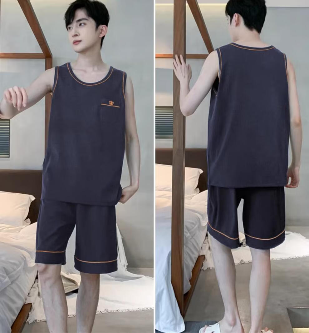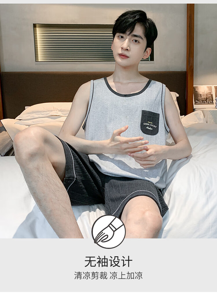 浪莎(LangSha)睡衣男士夏季纯棉薄2025新款背心短裤男款家居服套装大码无袖夏天 OMM-13063 L