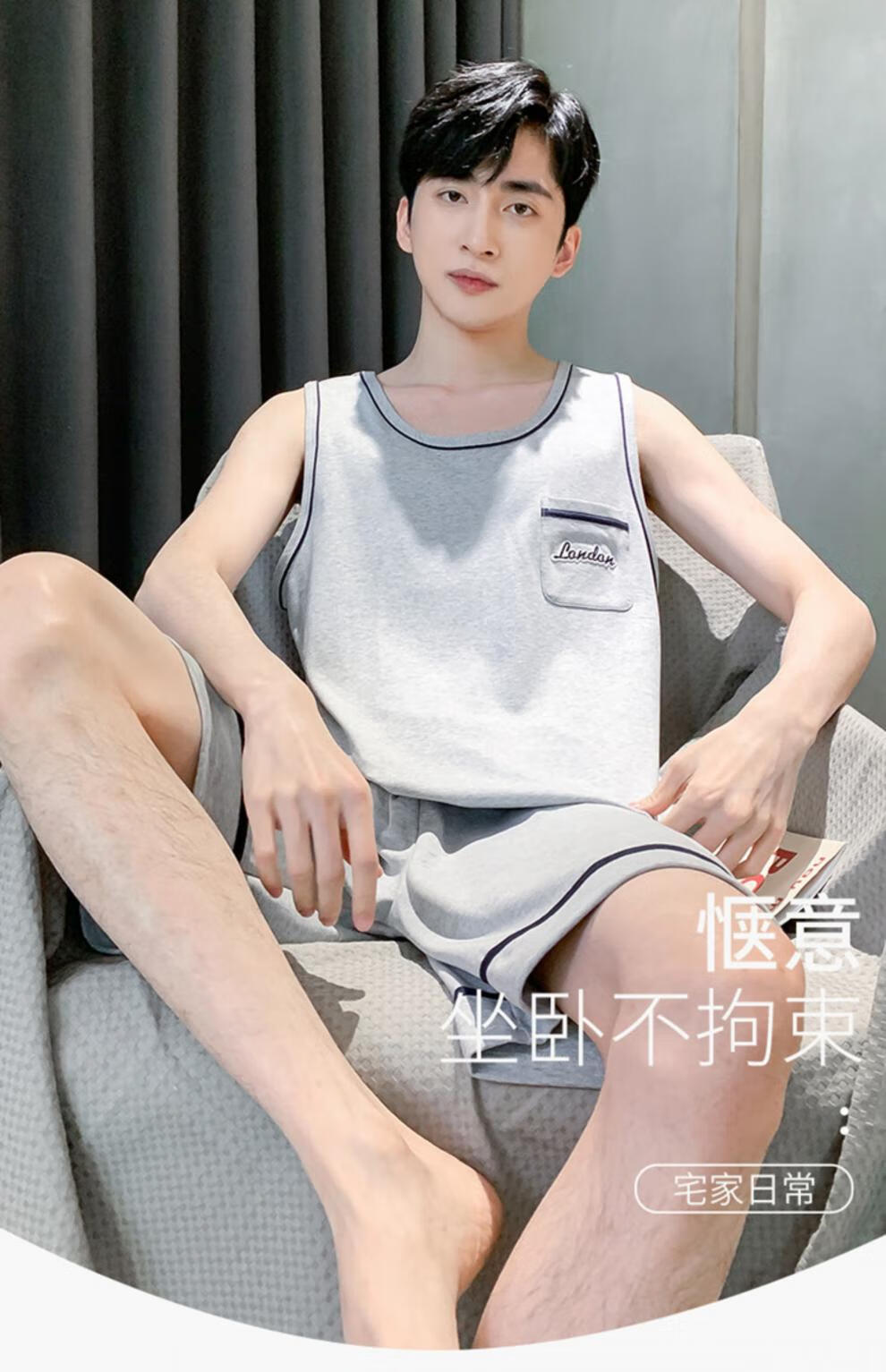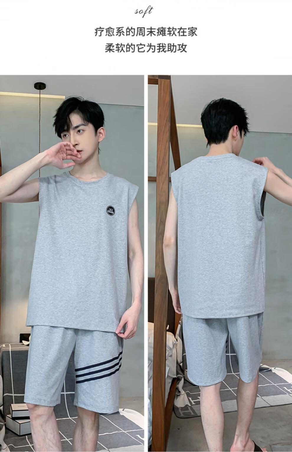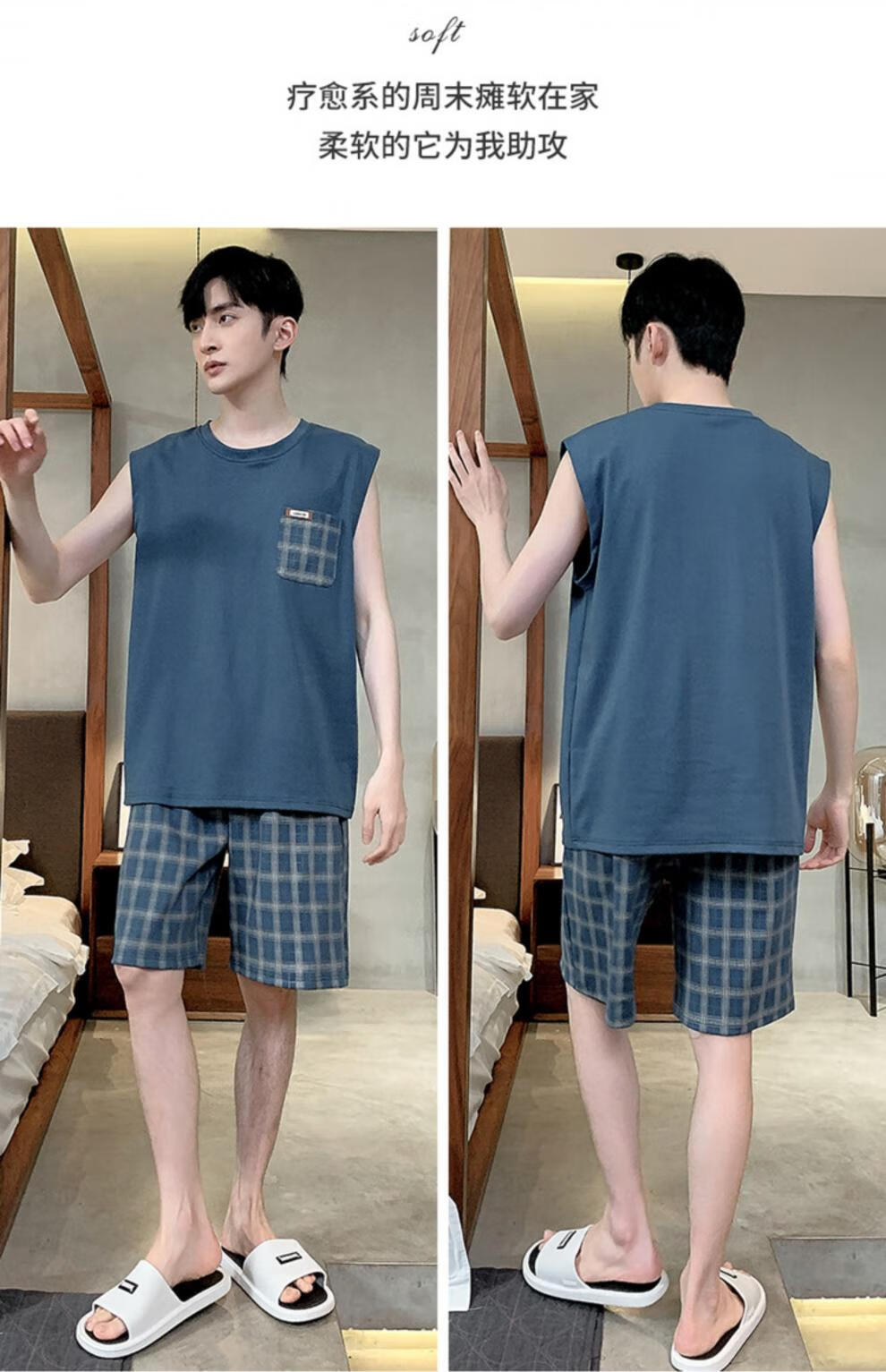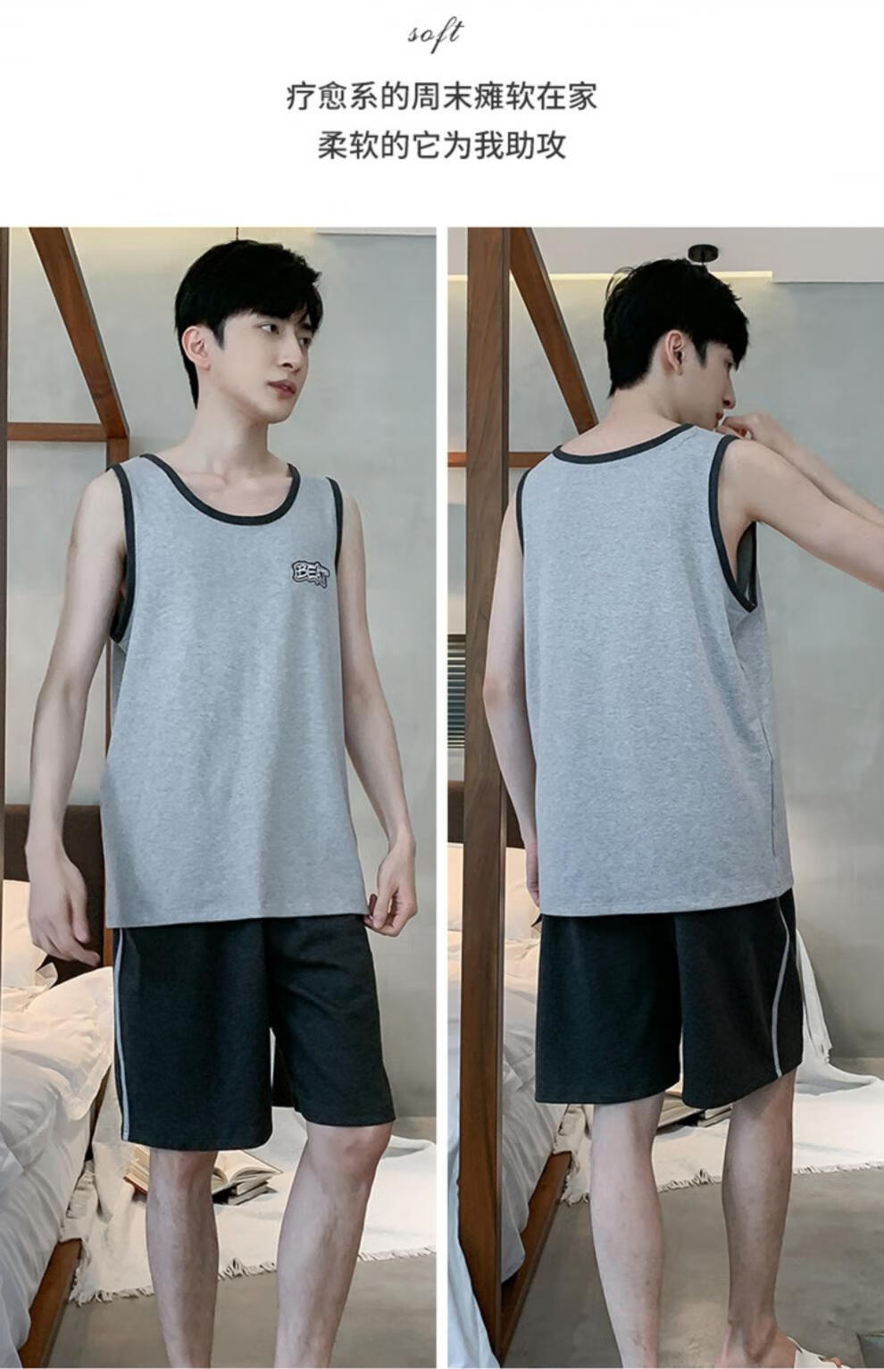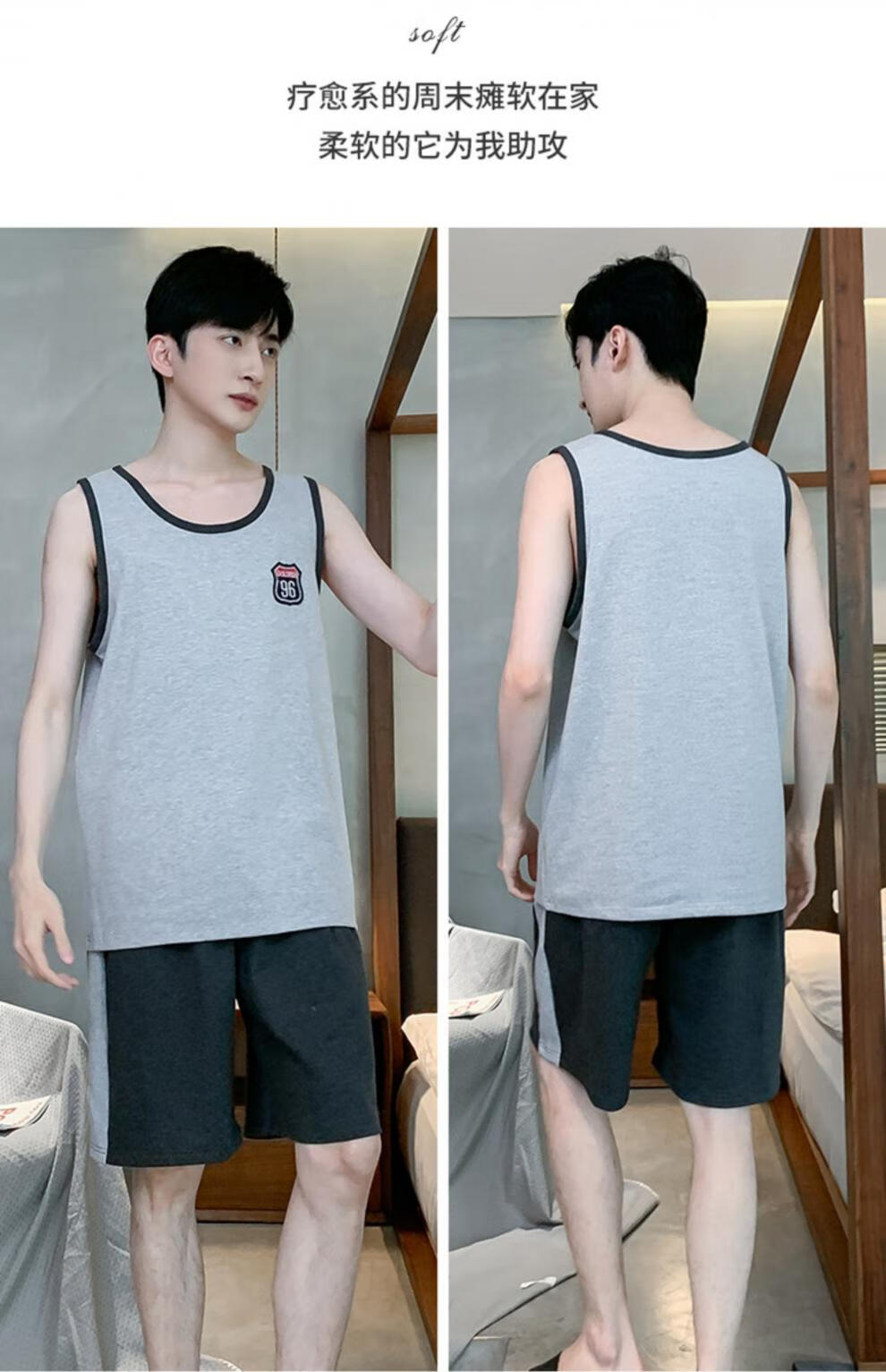 浪莎(LangSha)睡衣男士夏季纯棉薄2025新款背心短裤男款家居服套装大码无袖夏天 OMM-13063 L