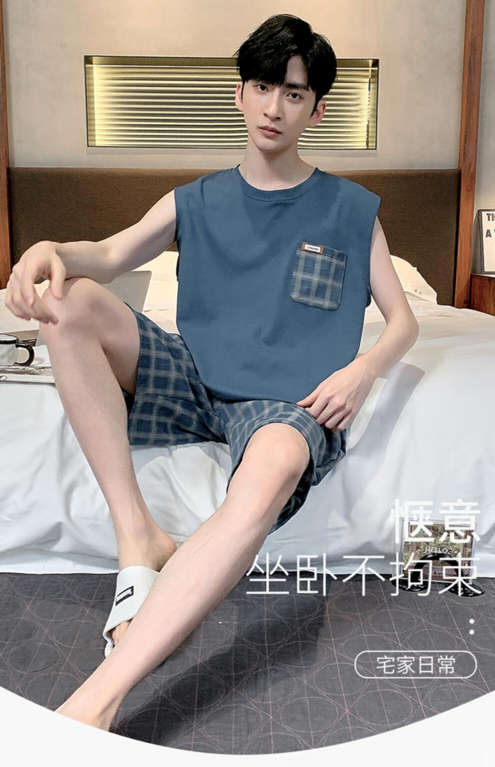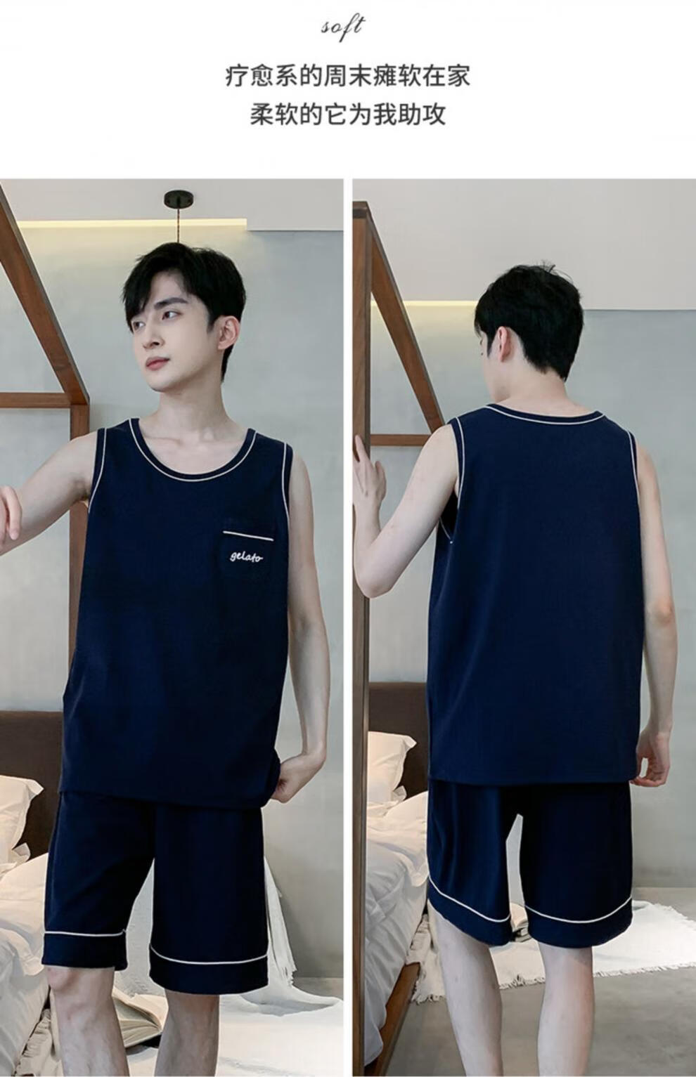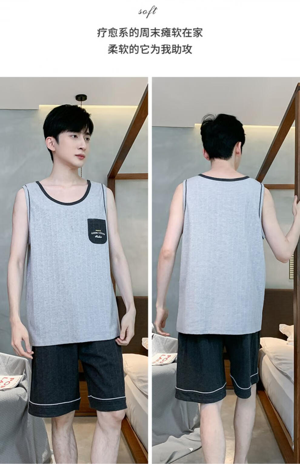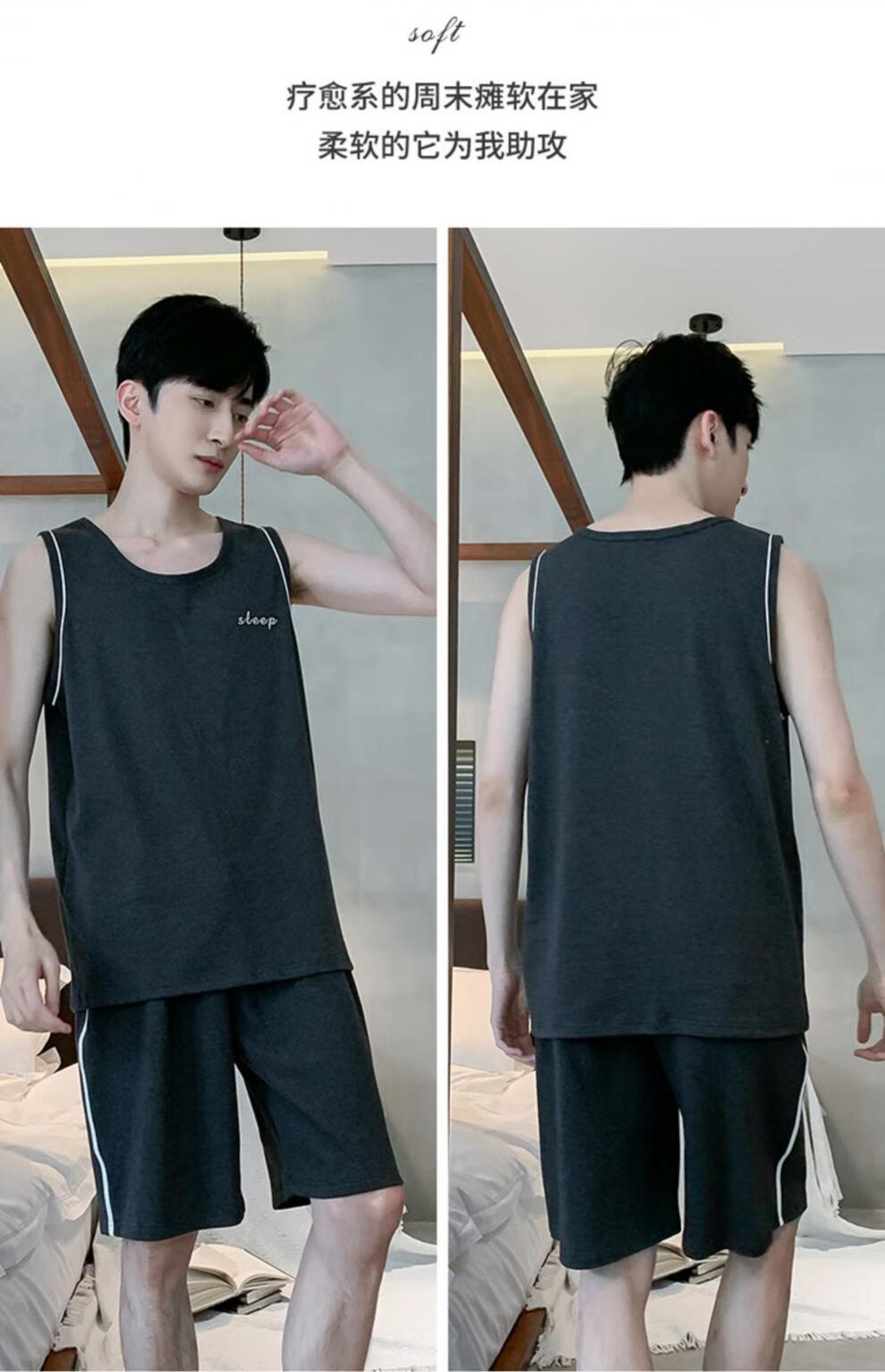 浪莎(LangSha)睡衣男士夏季纯棉薄2025新款背心短裤男款家居服套装大码无袖夏天 OMM-13063 L