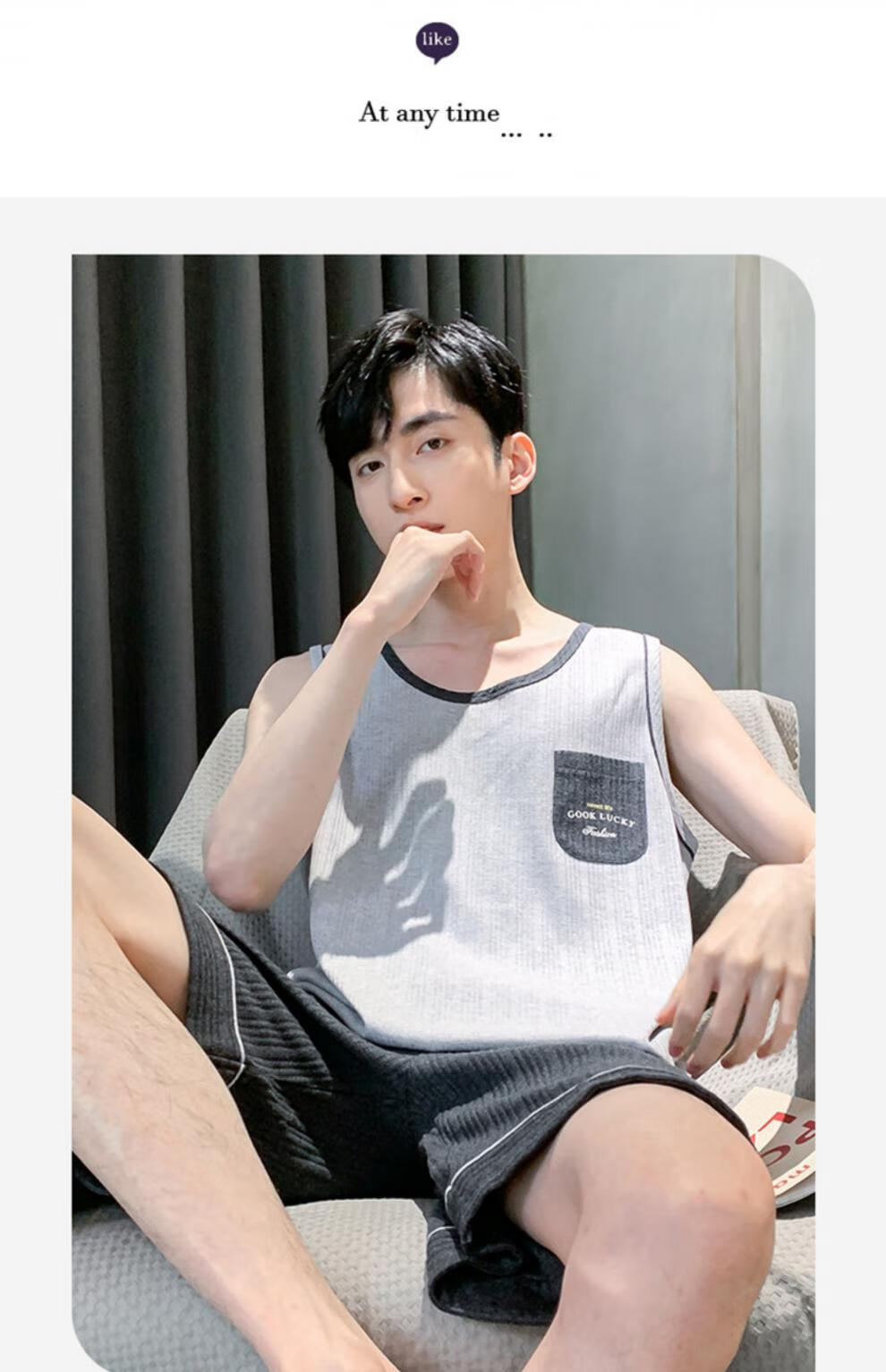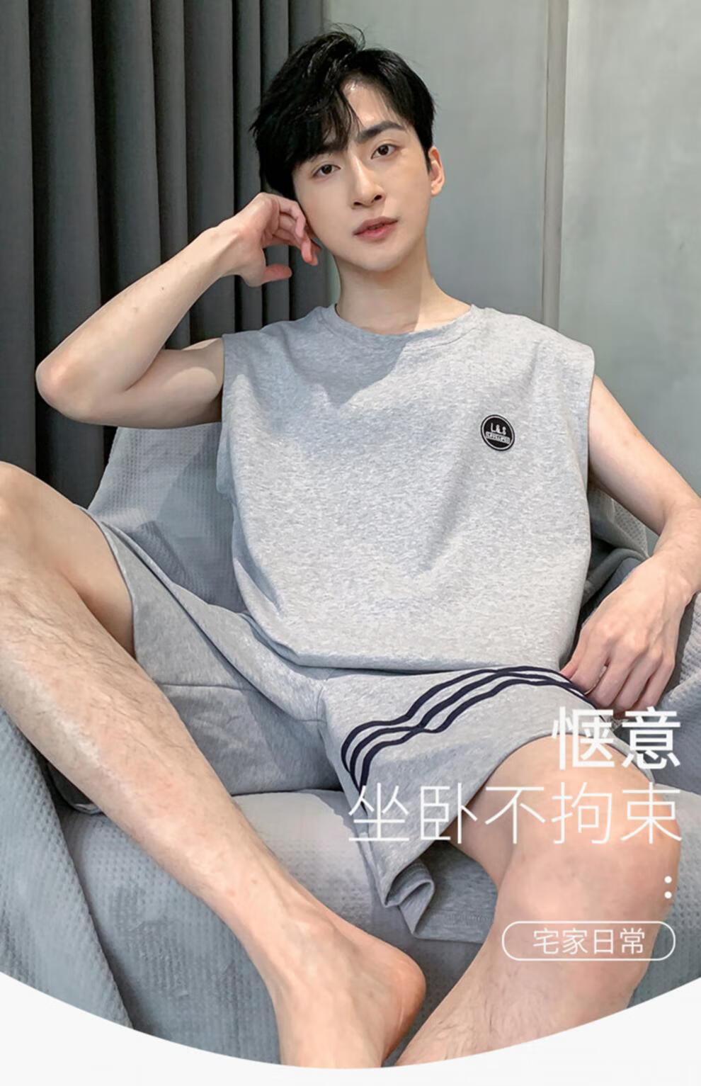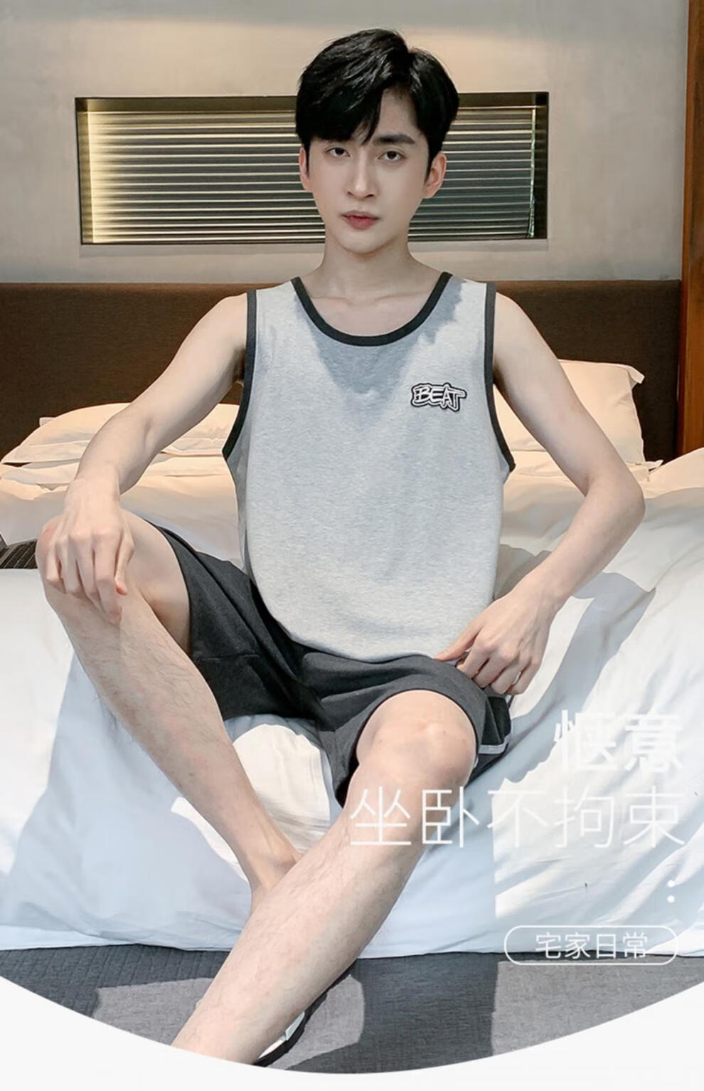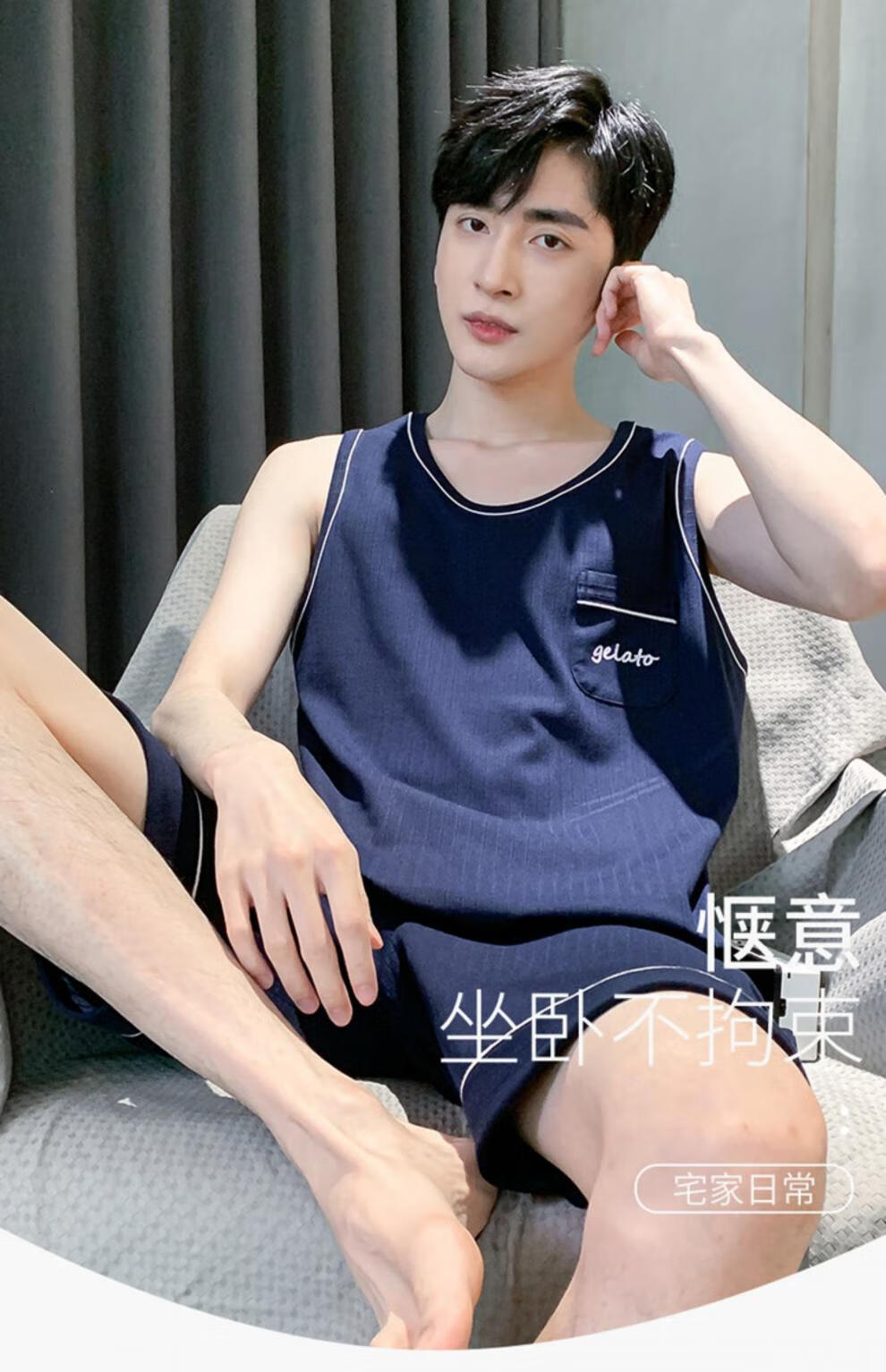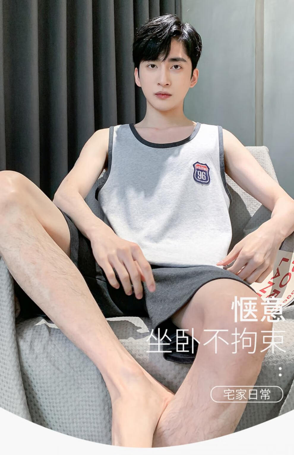 浪莎(LangSha)睡衣男士夏季纯棉薄2025新款背心短裤男款家居服套装大码无袖夏天 OMM-13063 L