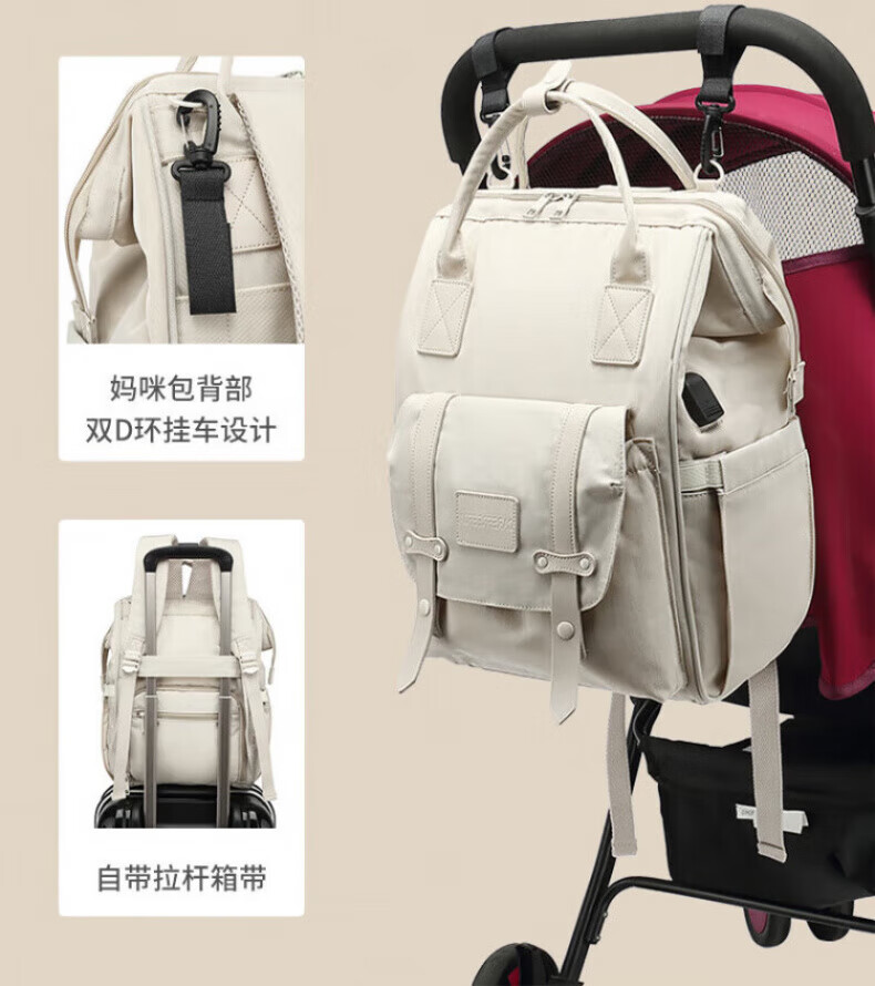 凝彬德国2025新款多功能妈咪包母婴包外出轻便时尚妈妈双肩手提大容量 摩登灰【20L升级USB款】赠婴儿车挂钩