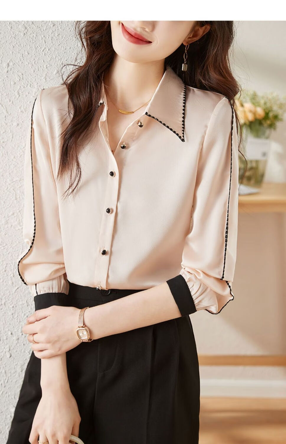 Pierre Cardin (pierre cardin) 2575 people collected chiffon fashion long-sleeved shirt women's style 2025 spring new style 200Jin Jin equals 0.5kg loose apricot L 90-100Jin Jin equals 0.5kg Shop inside