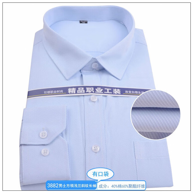 何佳功建行工作服女式正装领白底蓝色竖条纹短袖衬衫方领修身银行工作服 3882女V领修身浅兰斜纹长袖 45(190/112A)