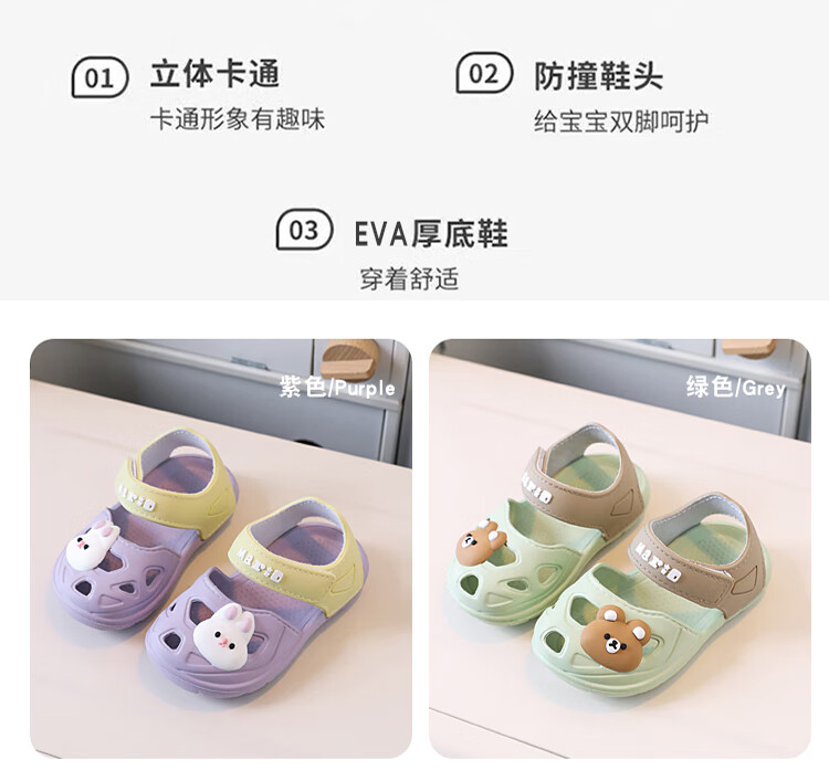 Yingya girls baby sandals summer infants and small children boys non-slip soft bottom bathroom beach children's hole shoes pure cotton 9277/purple cotton 13/inner length 13cm suitable for foot length 13
