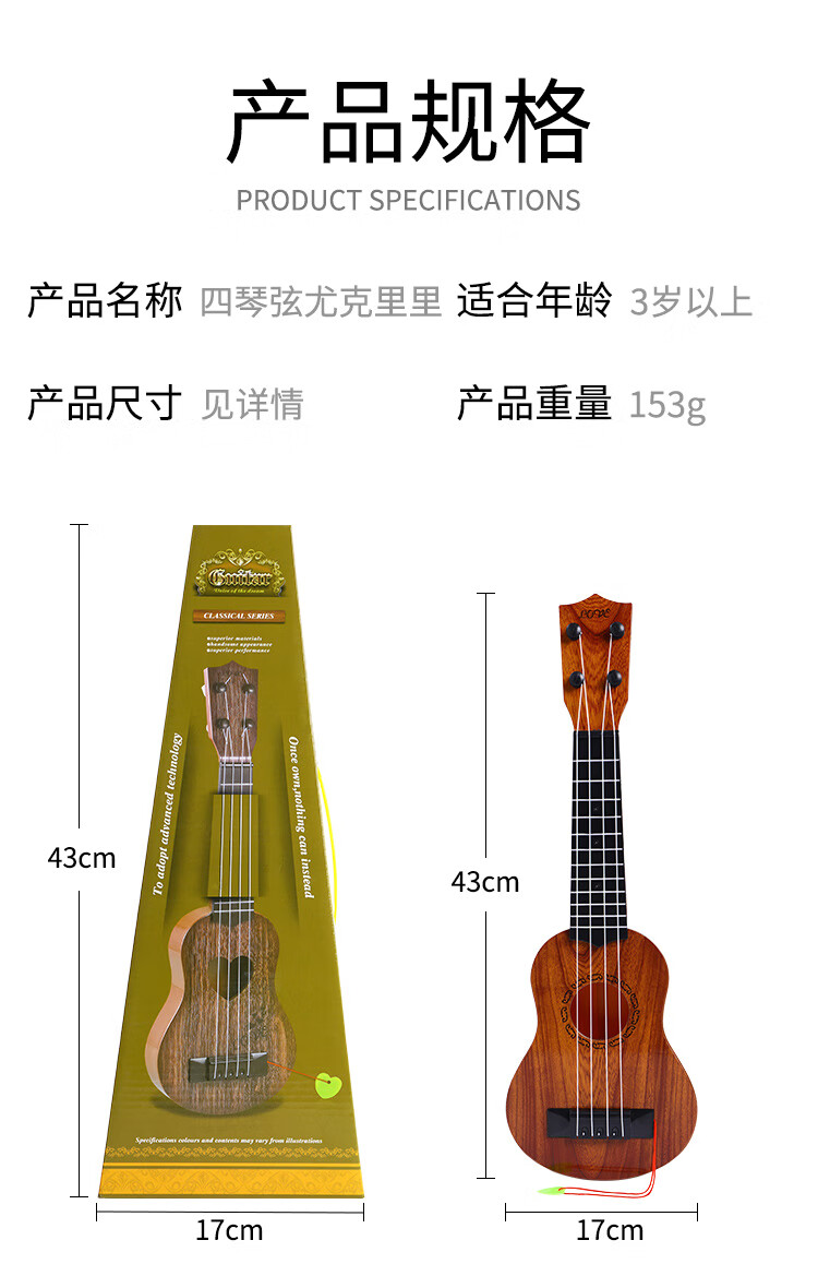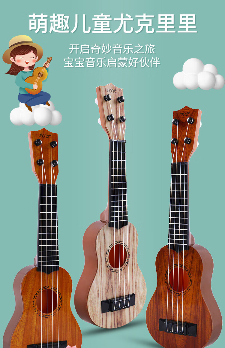 Jingga Ukulele Kinder kleines Gitarrenspielzeug für Mädchen und Jungen, Anfänger können das Musikinstrument Violine Ukulele spielen, 53,8 cm, rundes Loch, Holzfarbe, Boutique-Box-Set