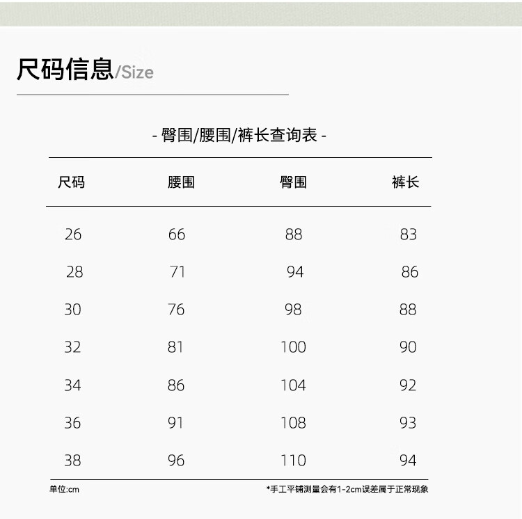 Outseam (cm) 99 cm 101.5 cm 104 cm 106.5 cm 109 cm