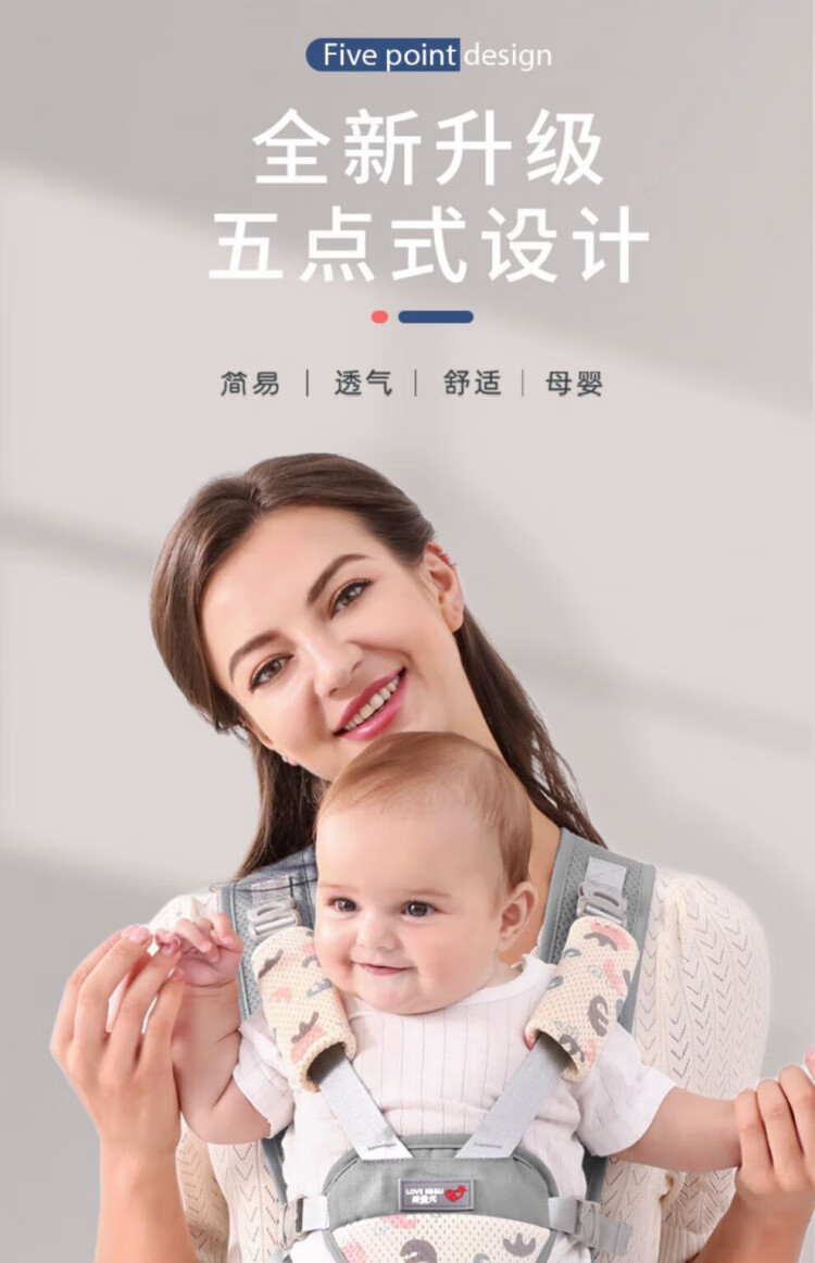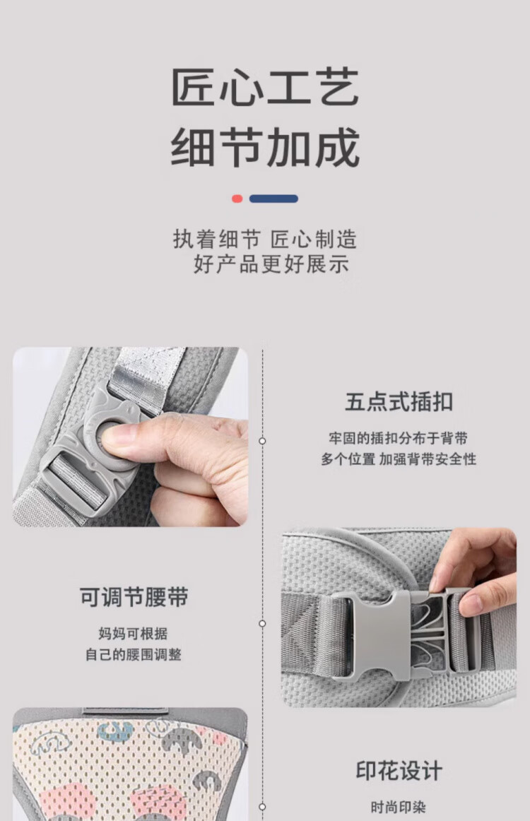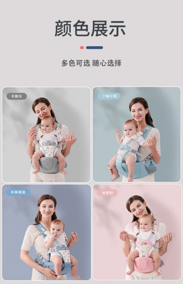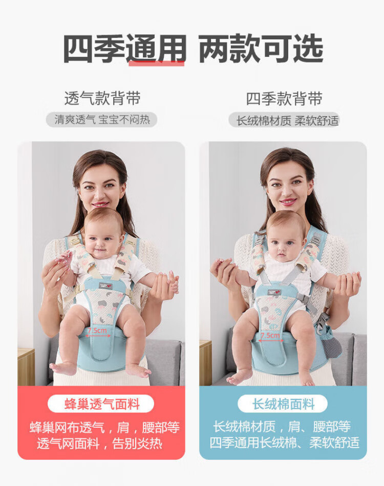 JCZS德国品牌婴儿腰凳背带抱娃神器多功能前后两用外出抱娃腰凳神器 清新绿-四季款(不卡脖)