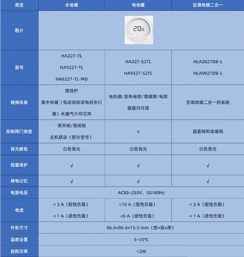 HA227-TL水暖电暖水泵温控器WiFi/485月动 HLA2027DB-L HA9227-TL(水地暖wifi定时)