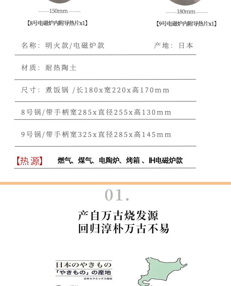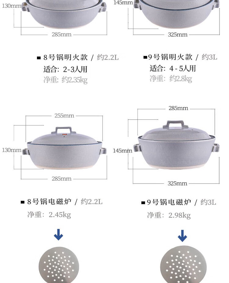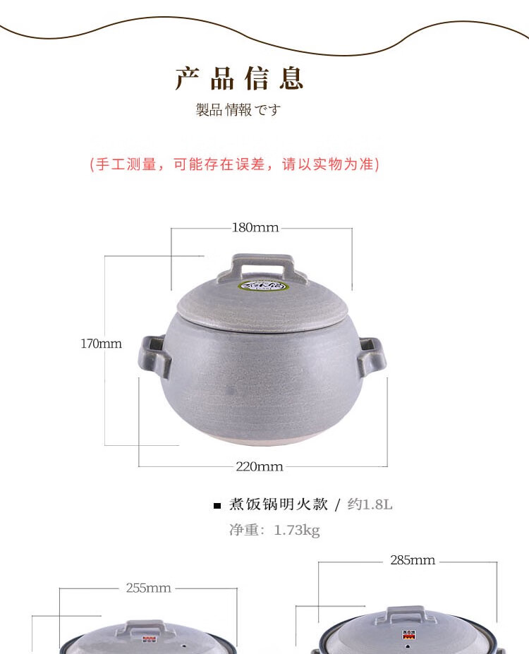 陶瓷王日本原装蓝色土锅砂锅电煮饭煲炖菜锅电磁炉可兼用 14126-91070 明火8号 0ml
