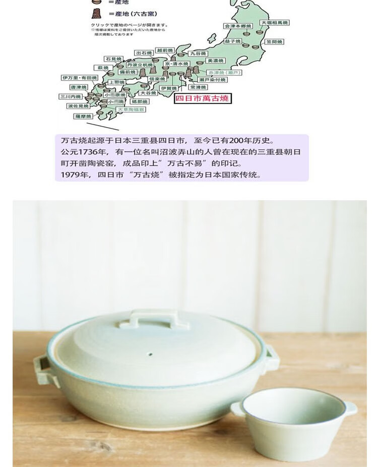 陶瓷王日本原装蓝色土锅砂锅电煮饭煲炖菜锅电磁炉可兼用 14126-91070  明火8号 0ml