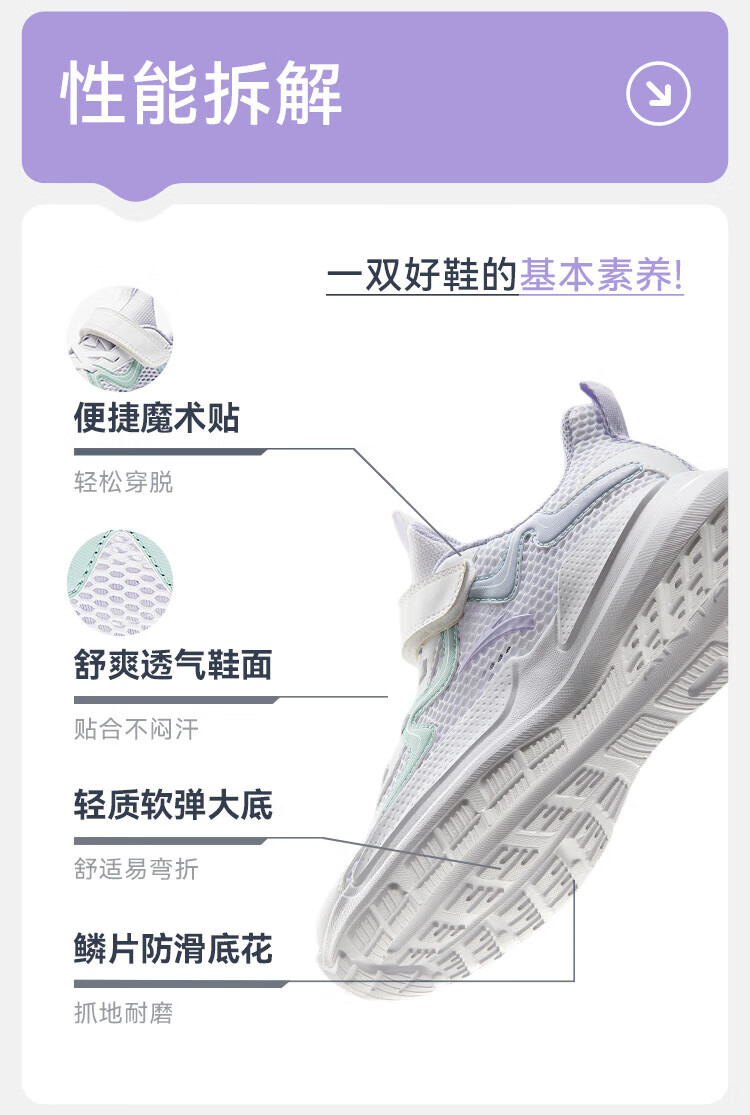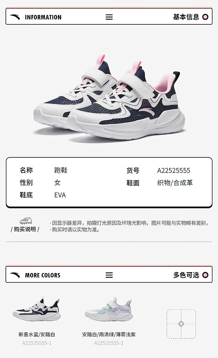 安踏儿童运动鞋通用大童鞋2025夏季新品网面透气校园软底跑步鞋 安踏白/雨清绿/薄雾浅紫-2 36