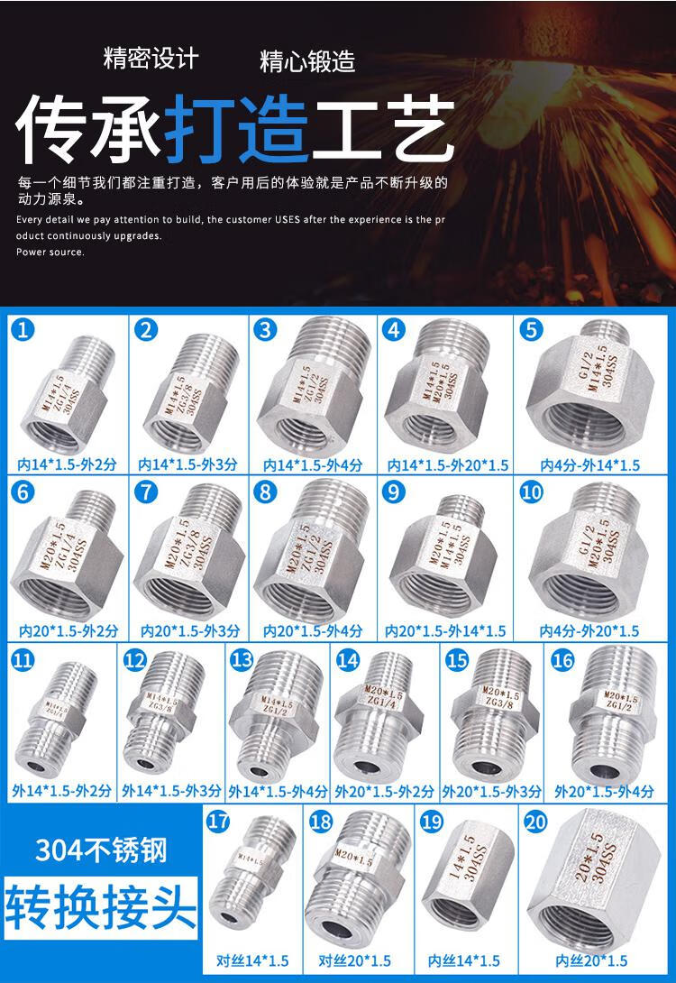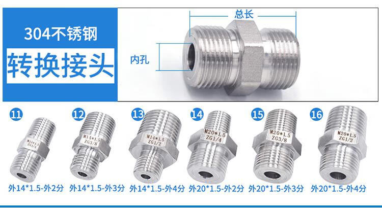 OUOETY aime le manomètre en acier inoxydable 304, joint de conversion de filetage interne et externe, 12346 points, filetage en pouces, raccord de soudage intérieur et extérieur 1/4 (2 points)