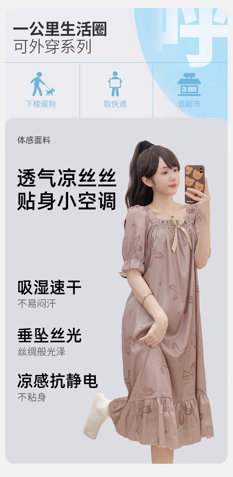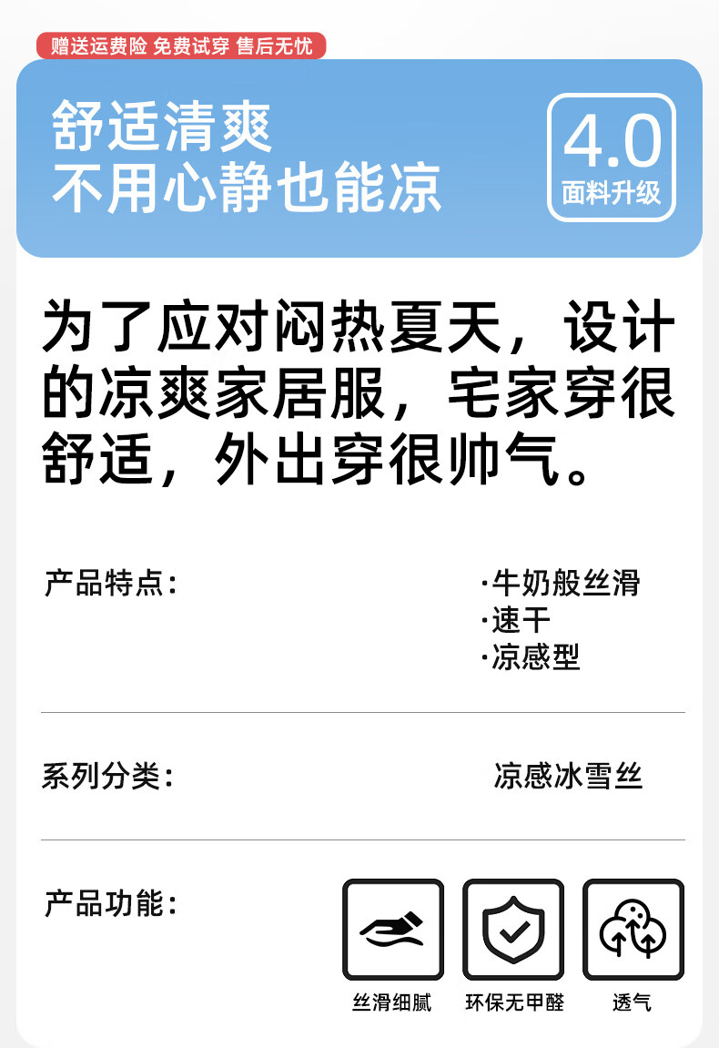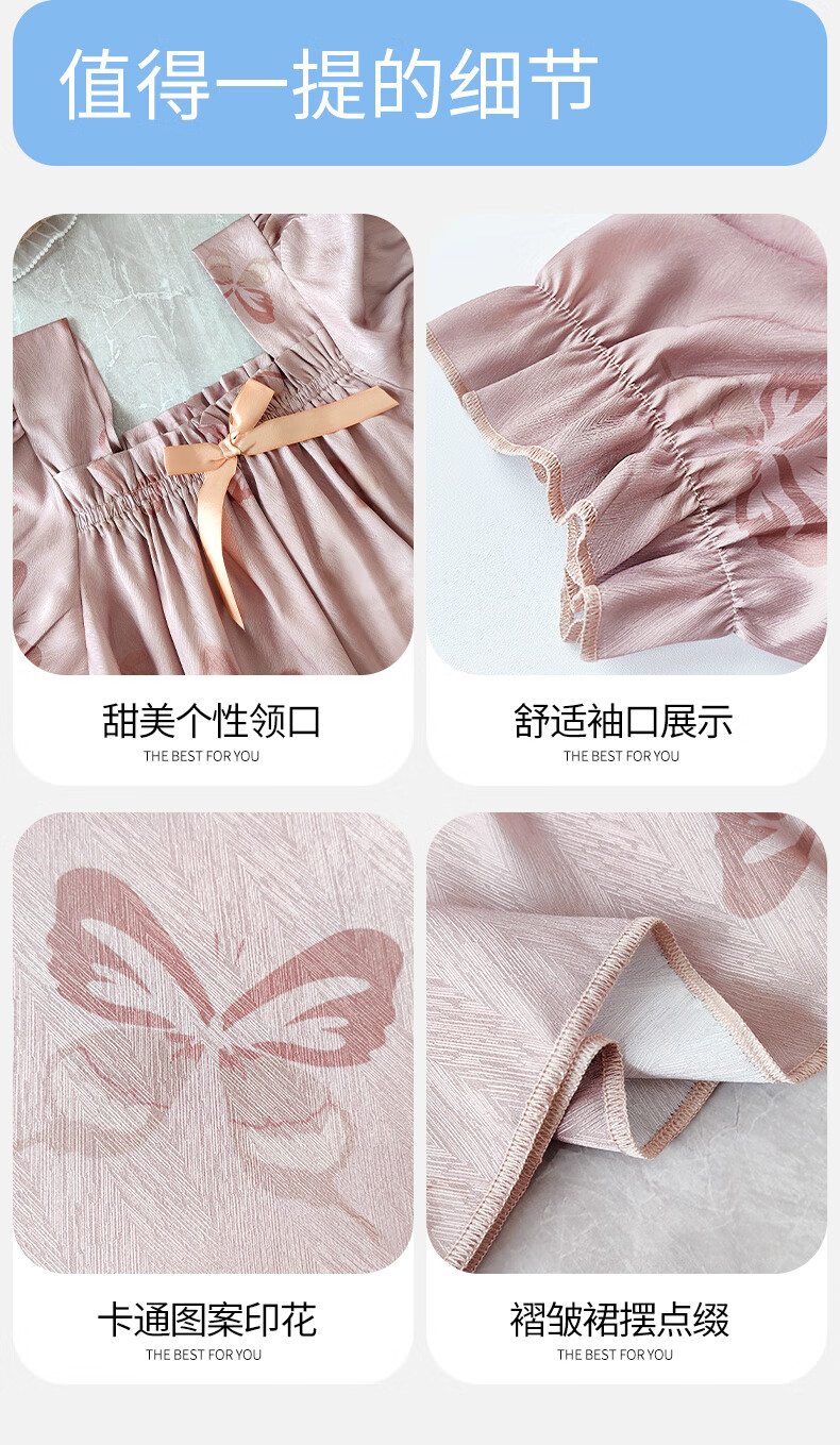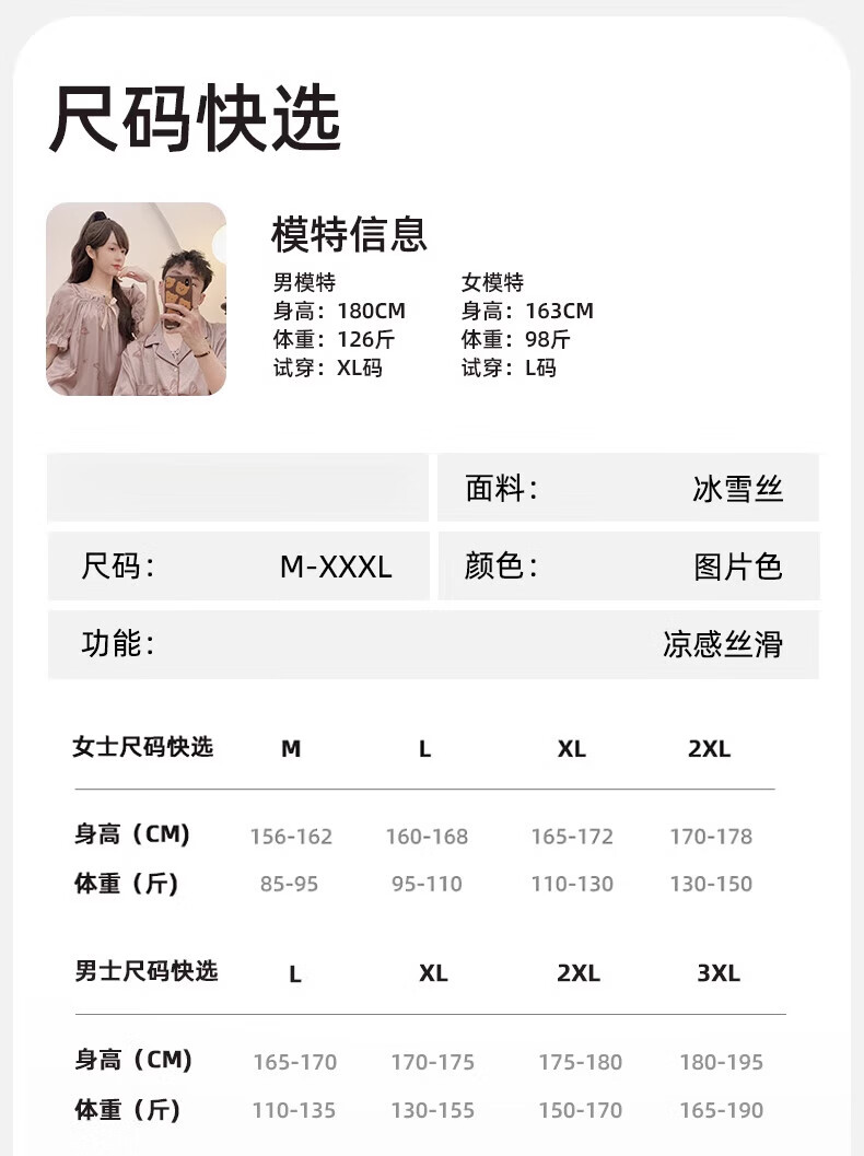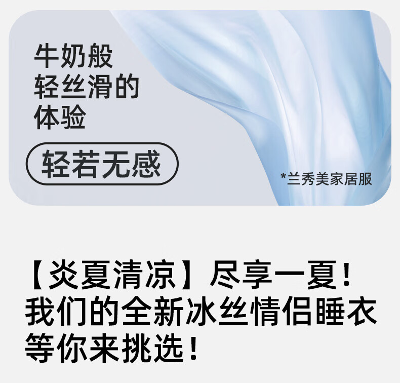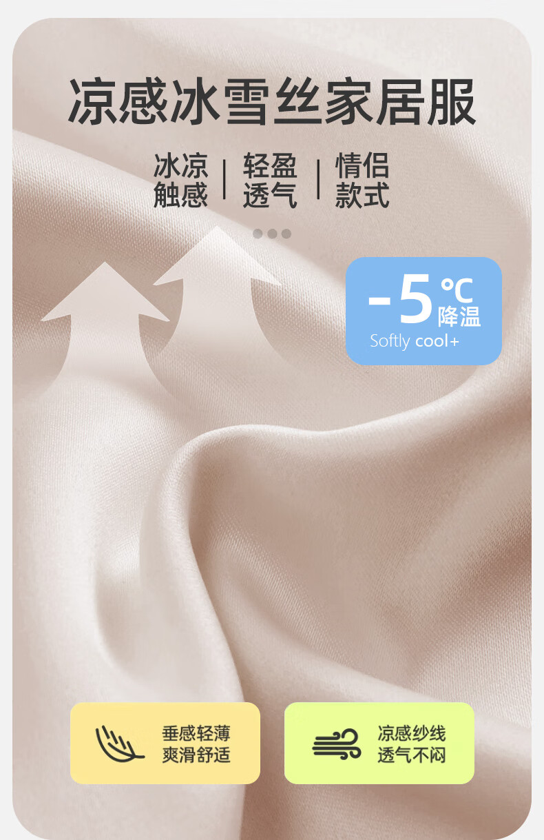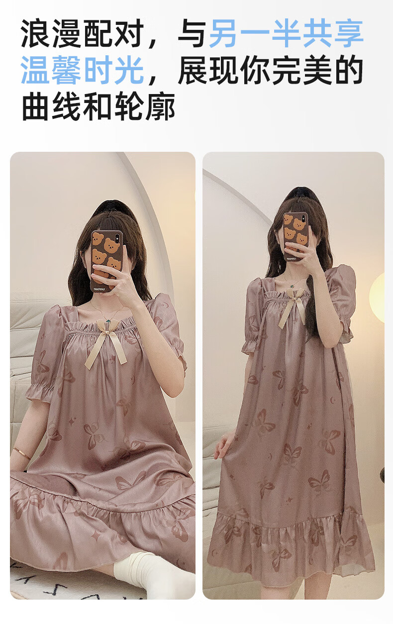 雅鹿冰丝情侣睡衣夏季短袖睡裙女士薄款凉爽男士轻奢可外穿家居服套装 13076-13077 M 女送男L
