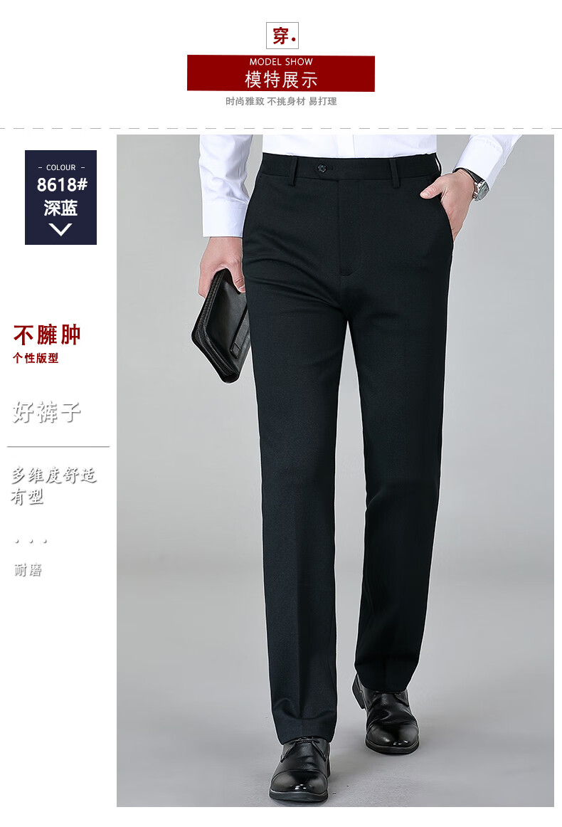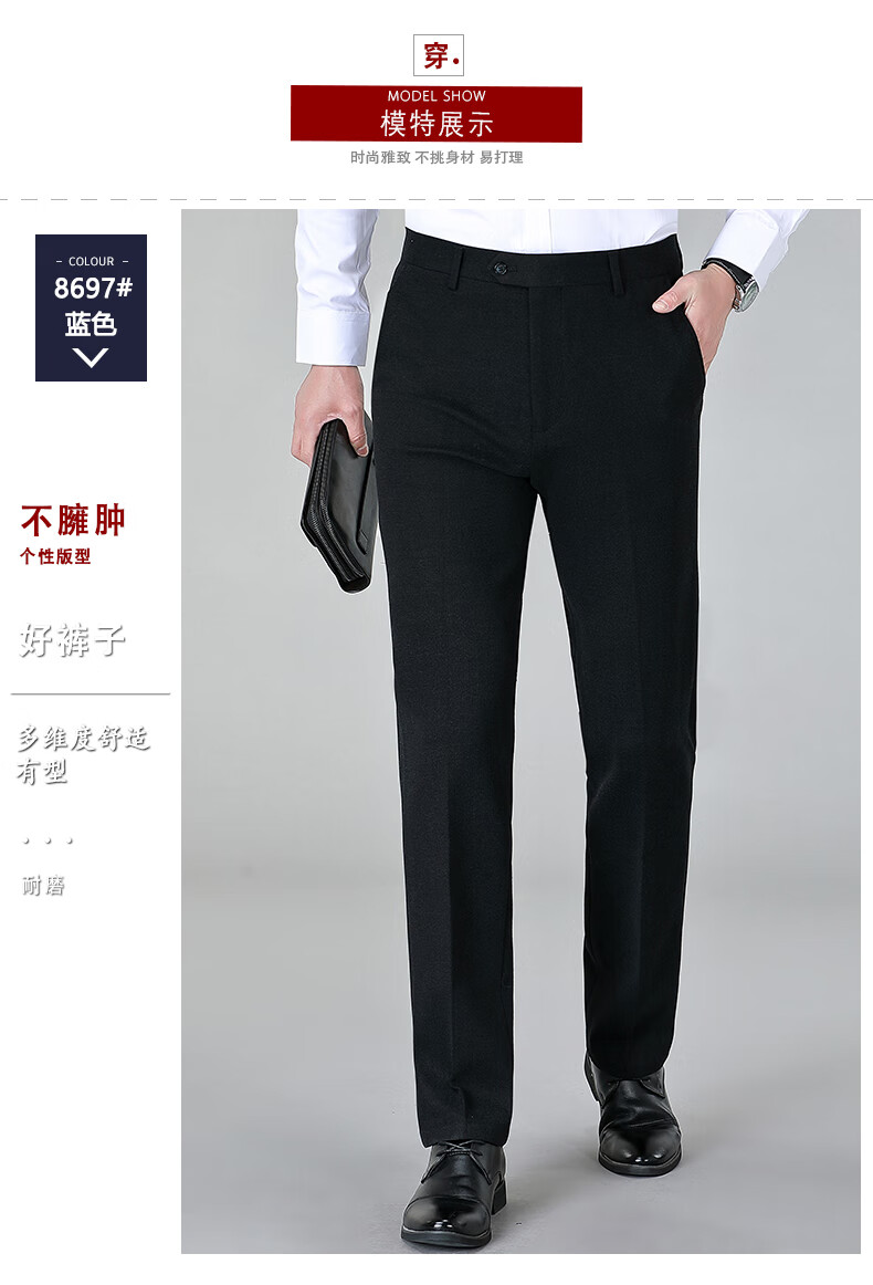 Hengyuanxiang Gebürstete, bequeme Hose für Herren, dicker Stil, 2025 Herbst und Winter Business Casual, bügelfreie, gerade elastische Hose, Blau-8697# 34 (2,7 Fuß Taille)