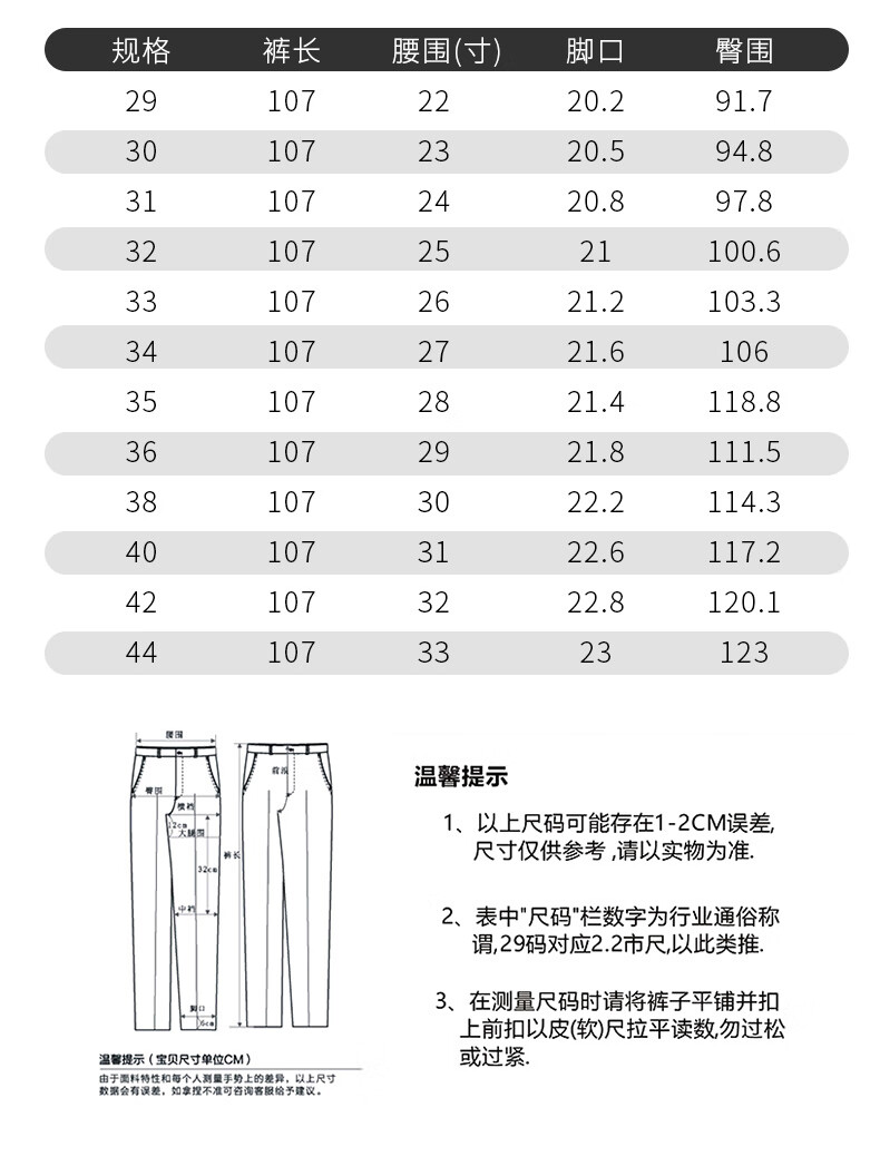Outseam (cm) 99 cm 101.5 cm 104 cm 106.5 cm 109 cm