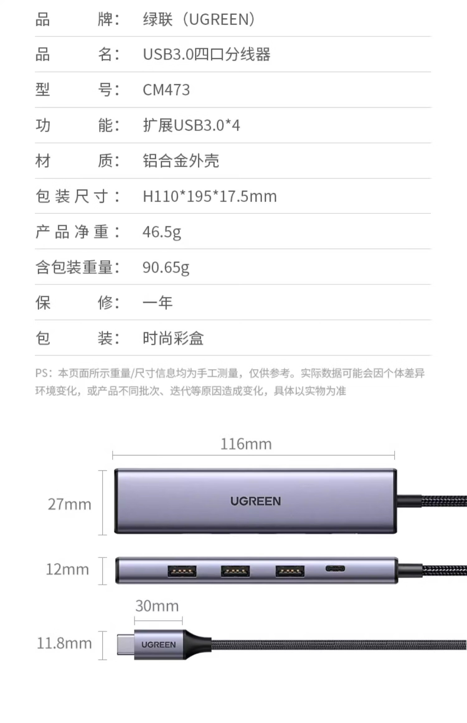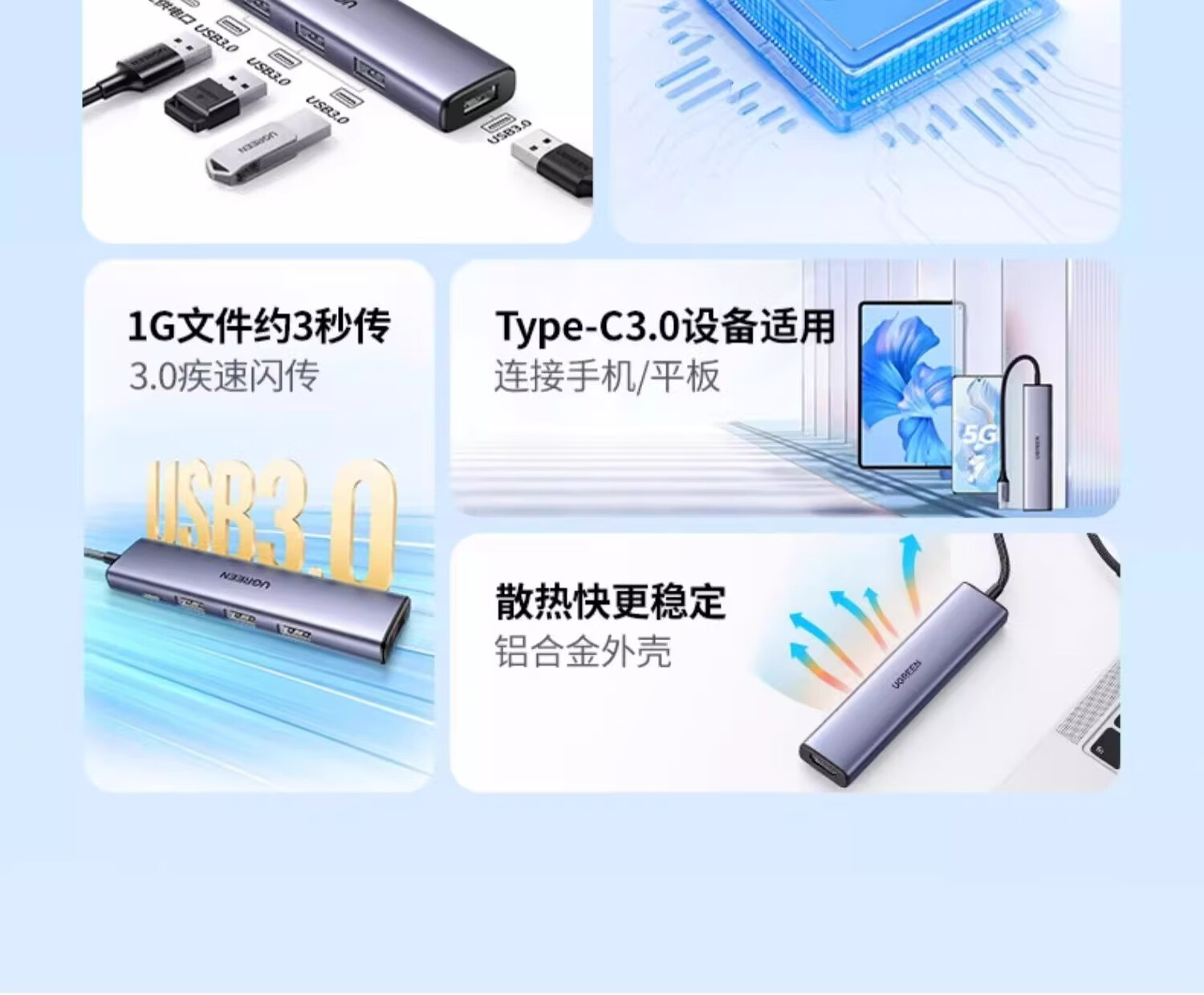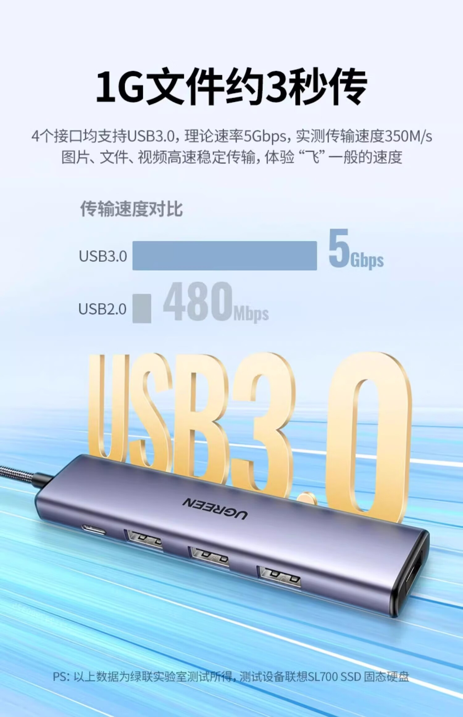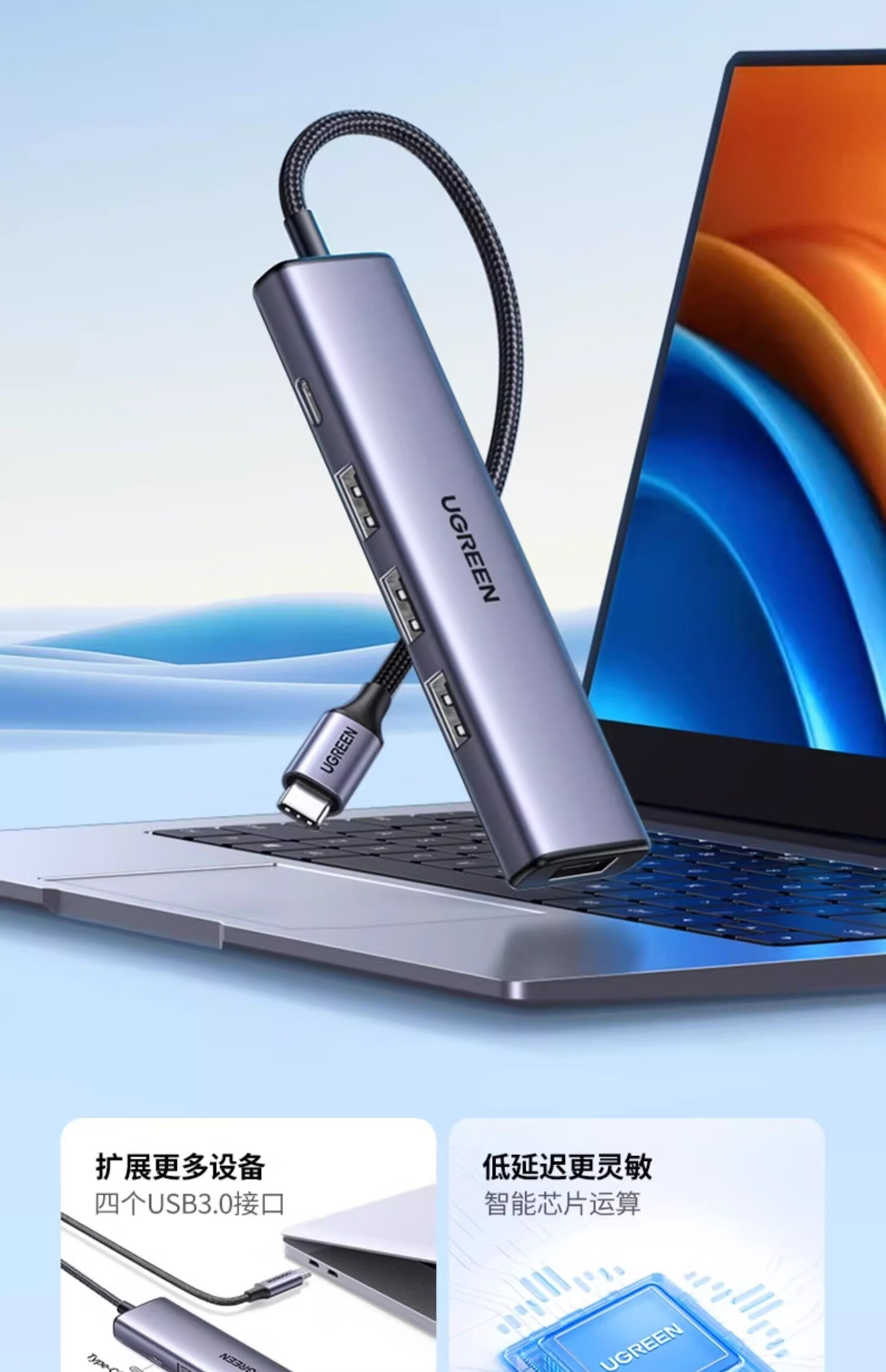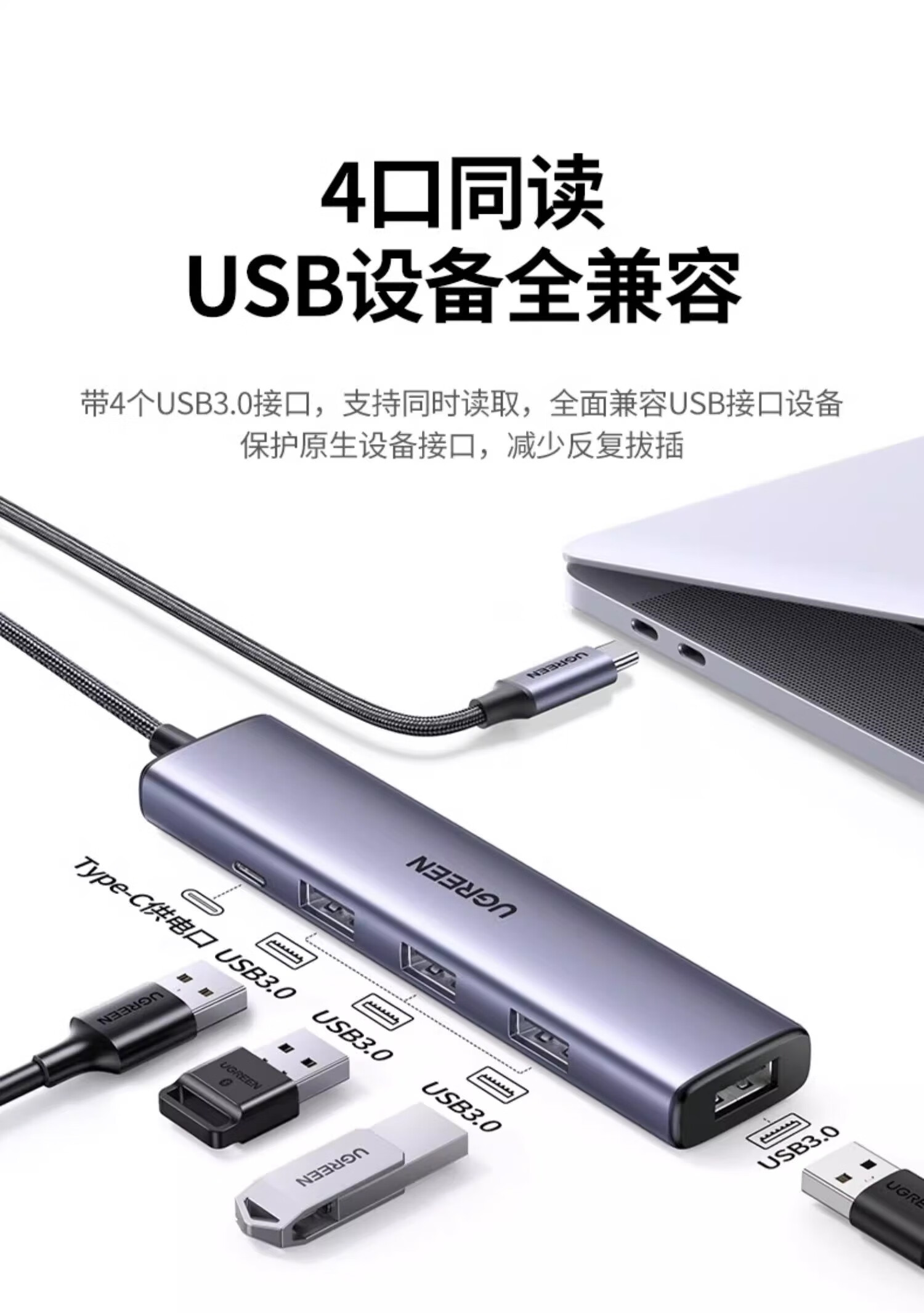 原装typec拓展坞扩展usb多口集线器延长hub3.0带供电转接头转换器 15919_USB3.0喷漆款USB3.0x