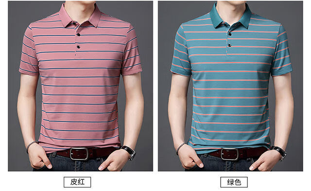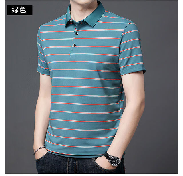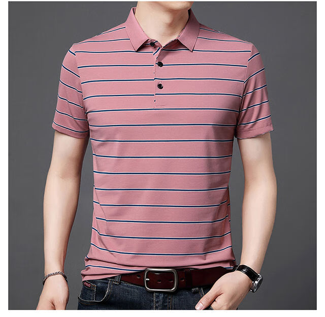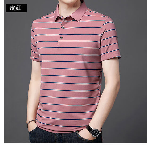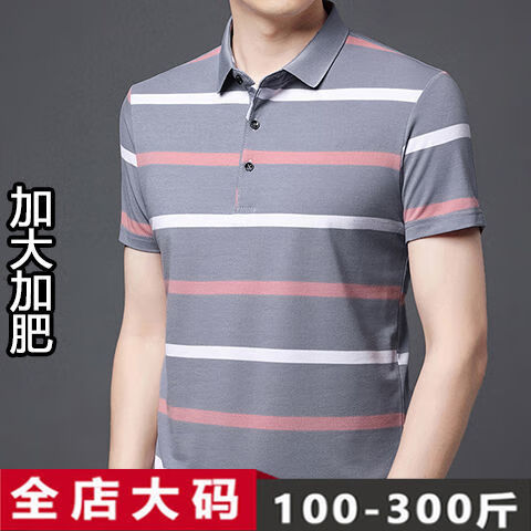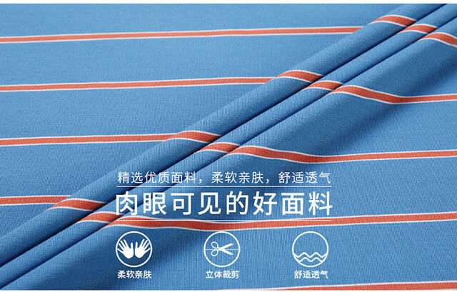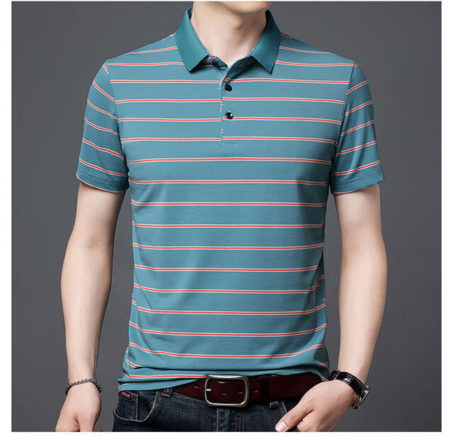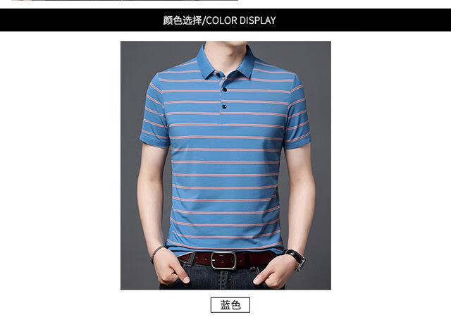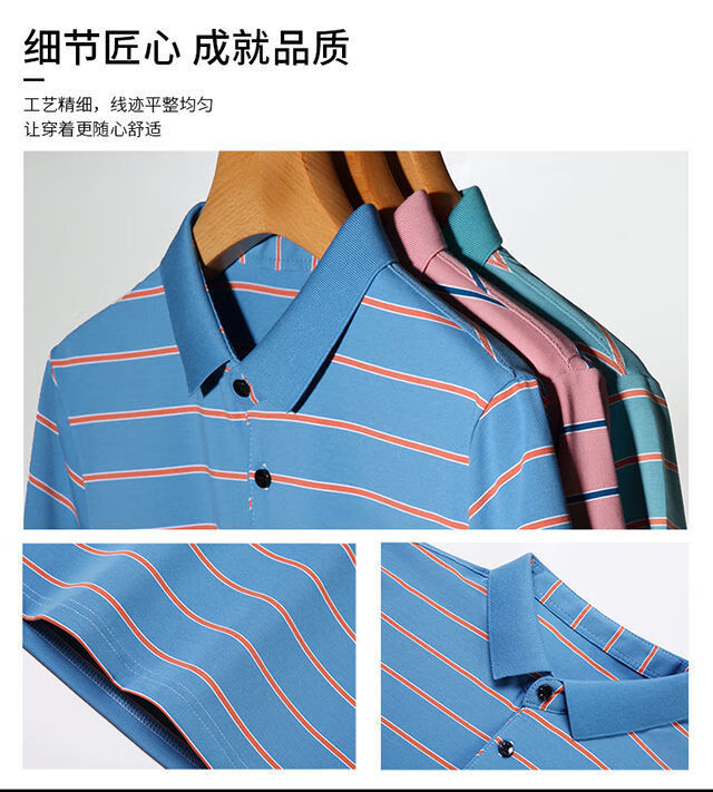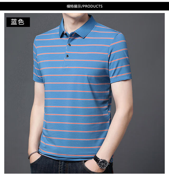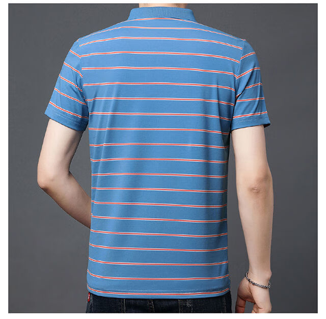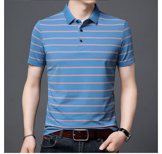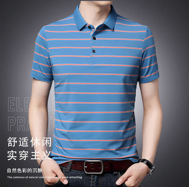 花花公子高端品牌纯棉短袖T恤男装夏季加肥加大肥佬条纹百搭商务POIO衫 1695蓝色 M 165码建议100-120斤