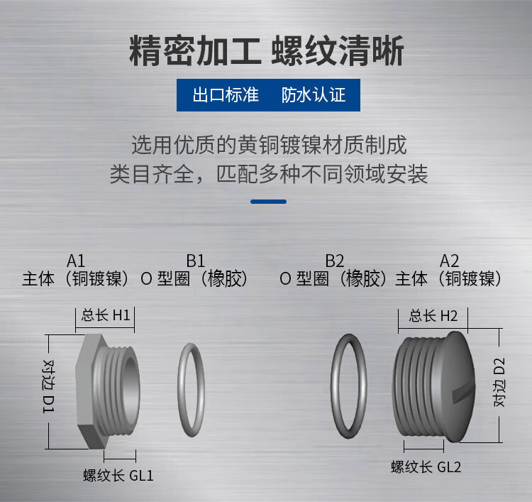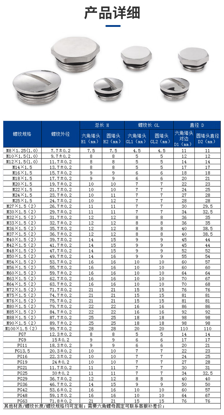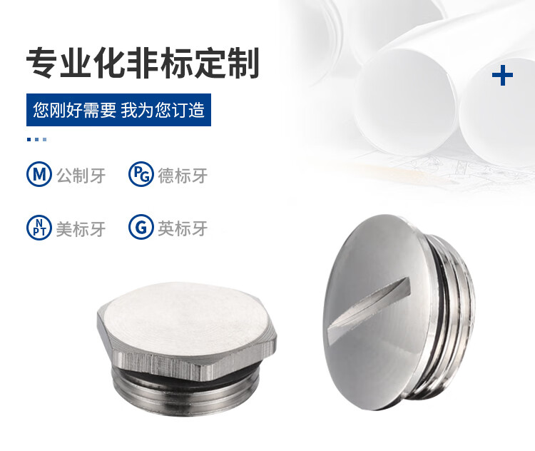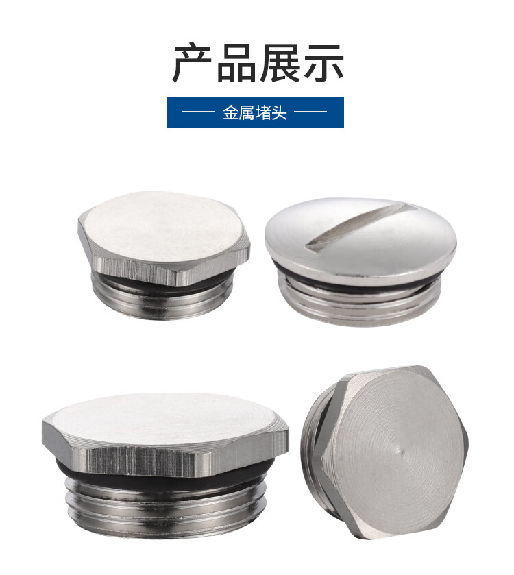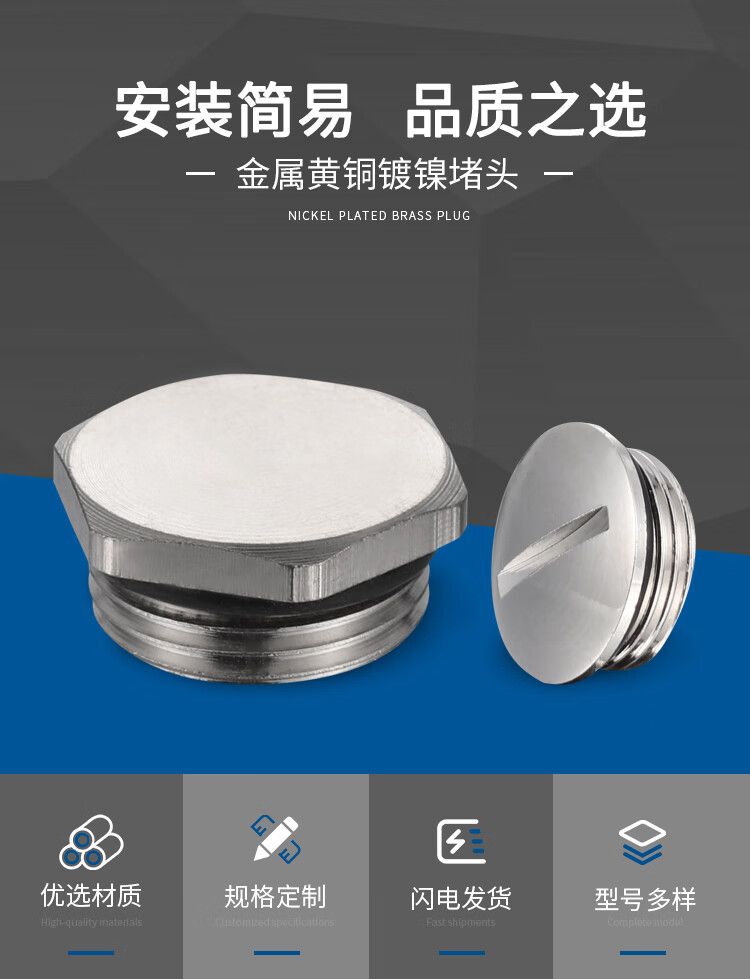 立始316304不锈钢圆形堵塞件金属六角闷盖M/PG/NPT/G塞帽黄铜外丝堵头 M5010个