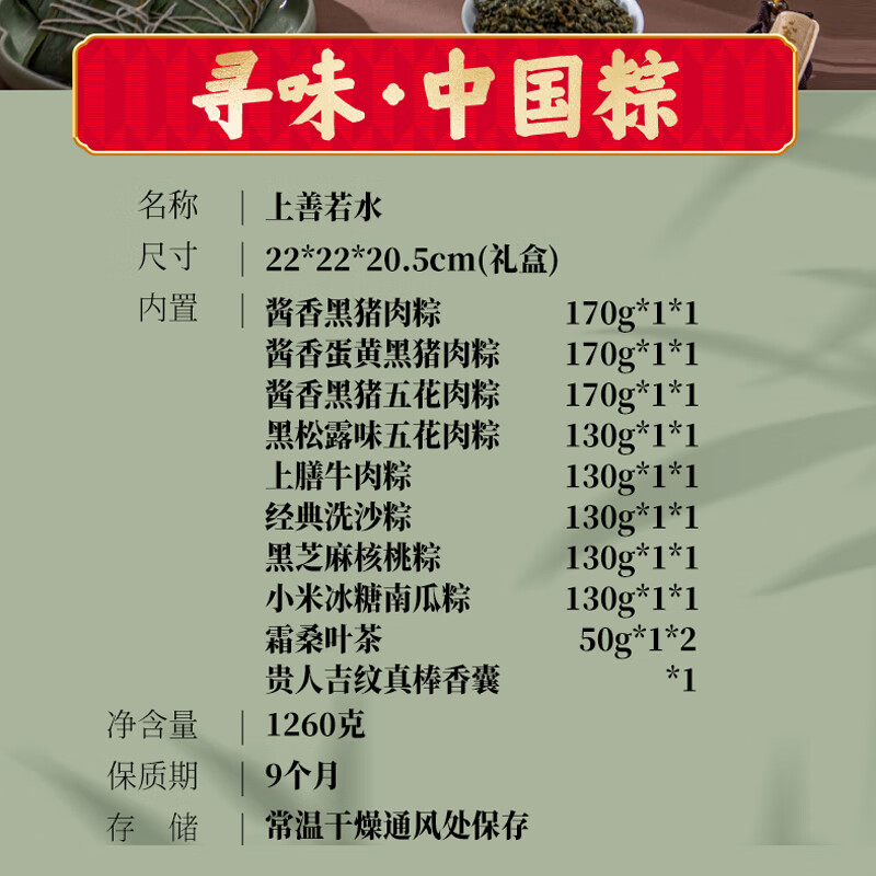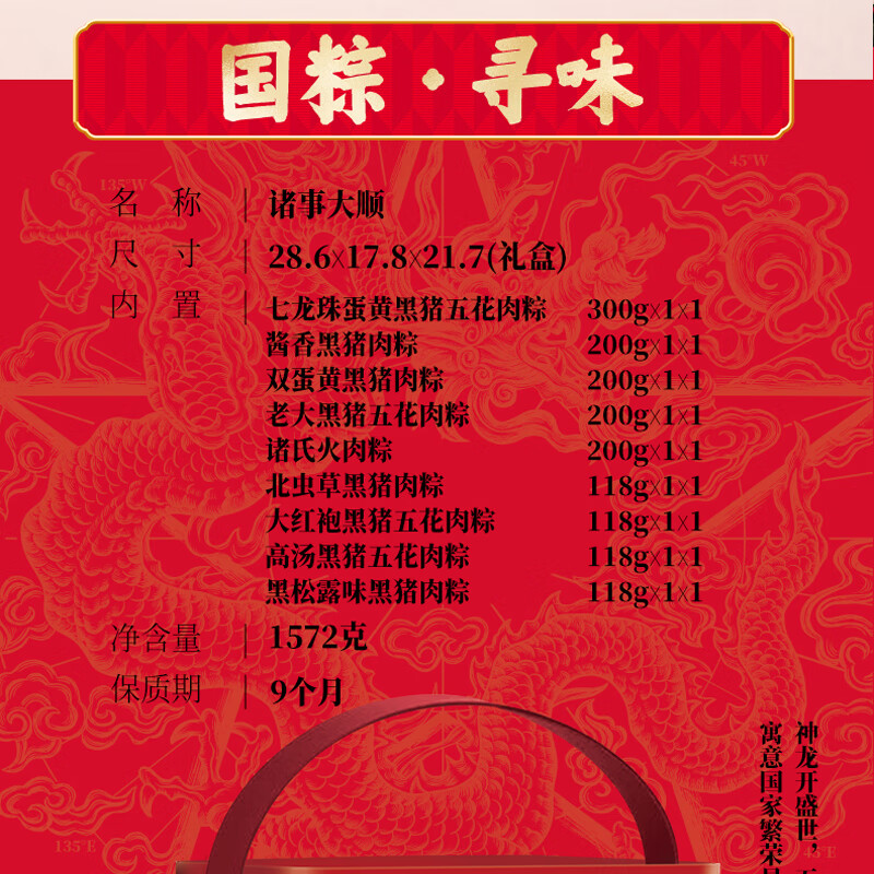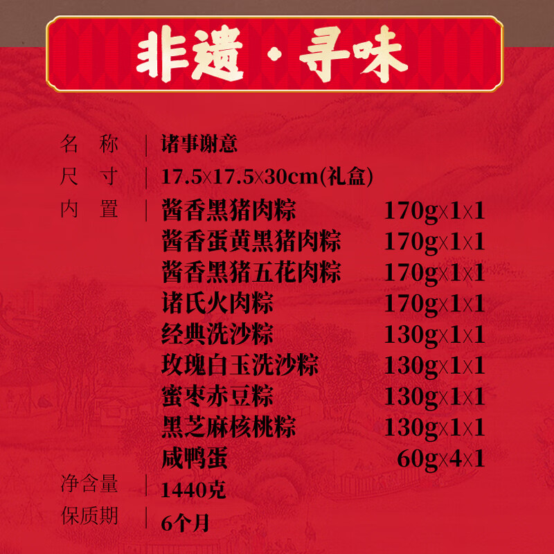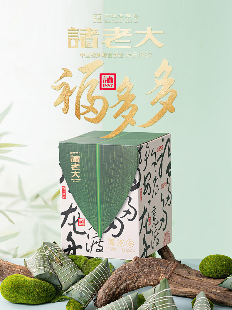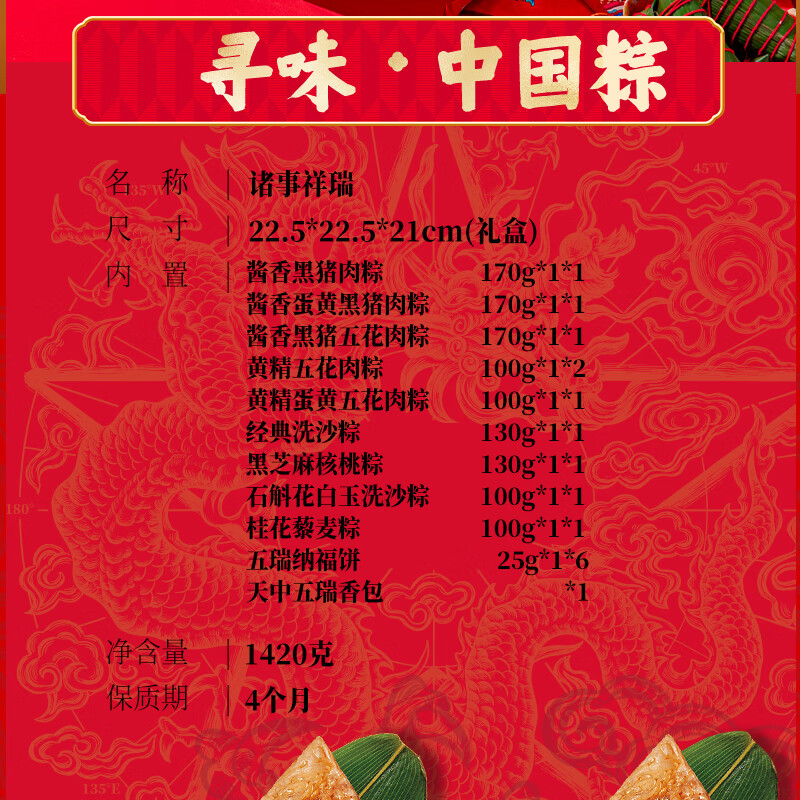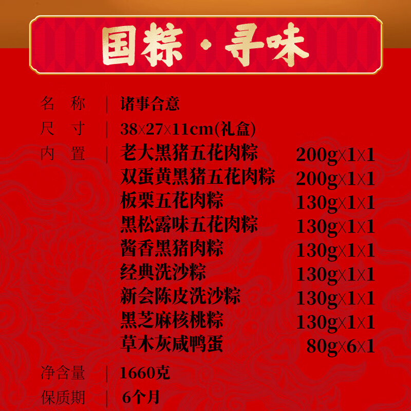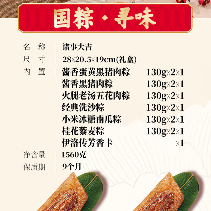 诸老大粽子礼盒 正宗嘉兴粽子 鲜肉豆沙蜜枣粽 端午节送礼品 团购福利 诸事杏运1342g【10粽+酒+茶】