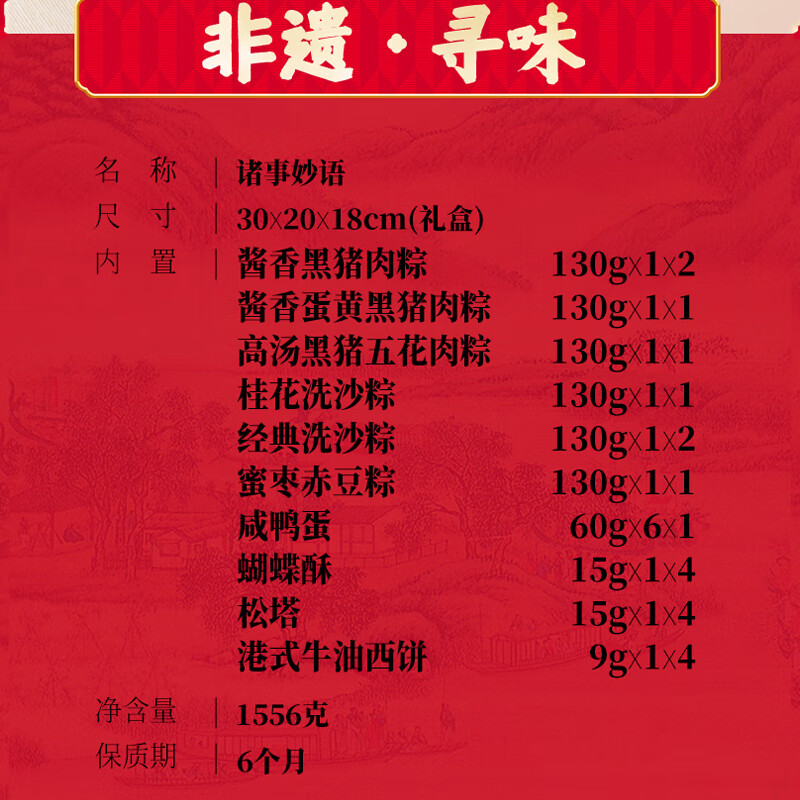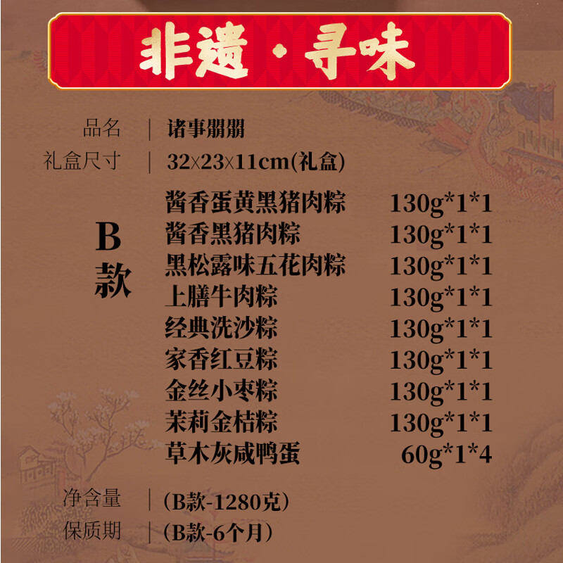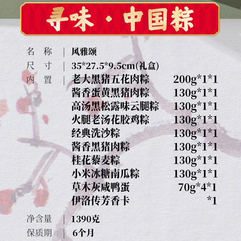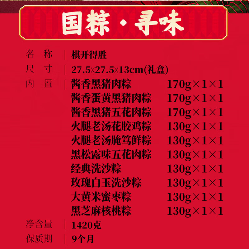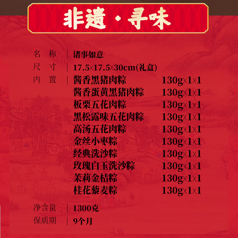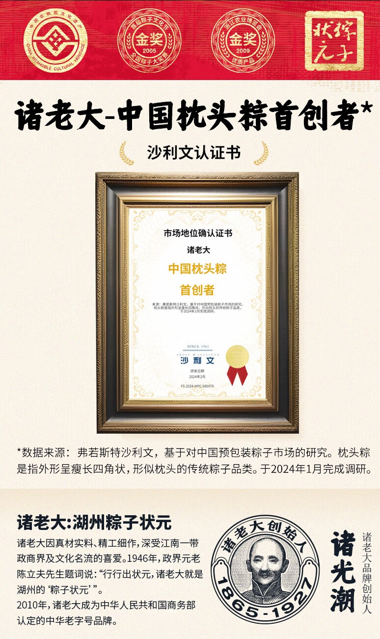 诸老大粽子礼盒 正宗嘉兴粽子 鲜肉豆沙蜜枣粽 端午节送礼品 团购福利 诸事杏运1342g【10粽+酒+茶】