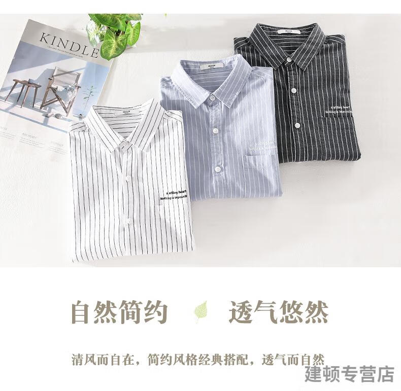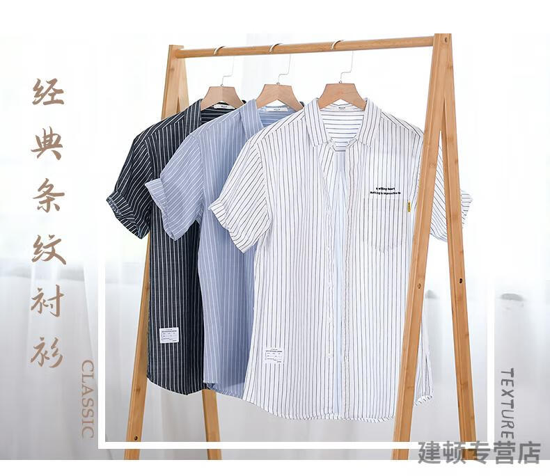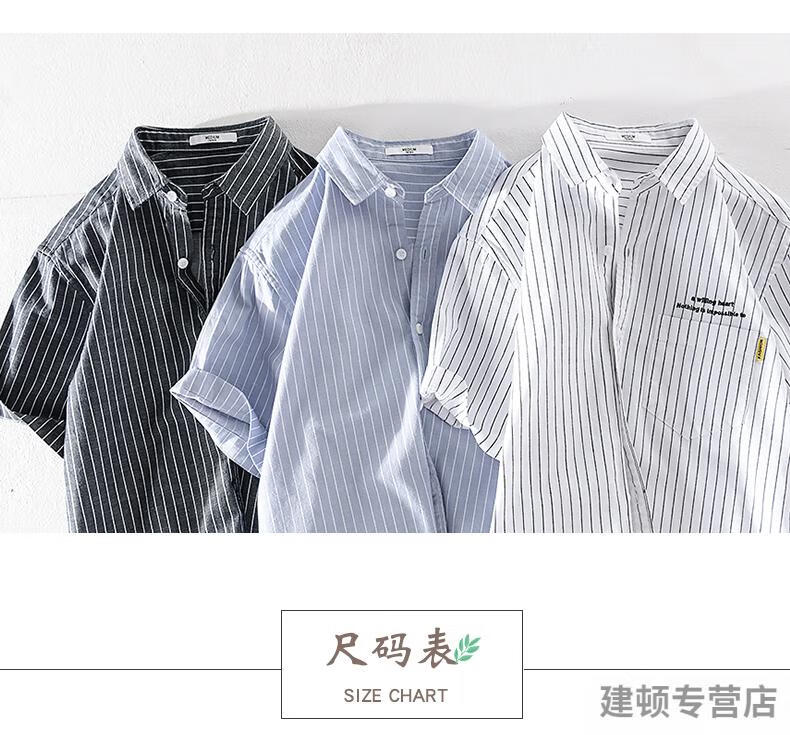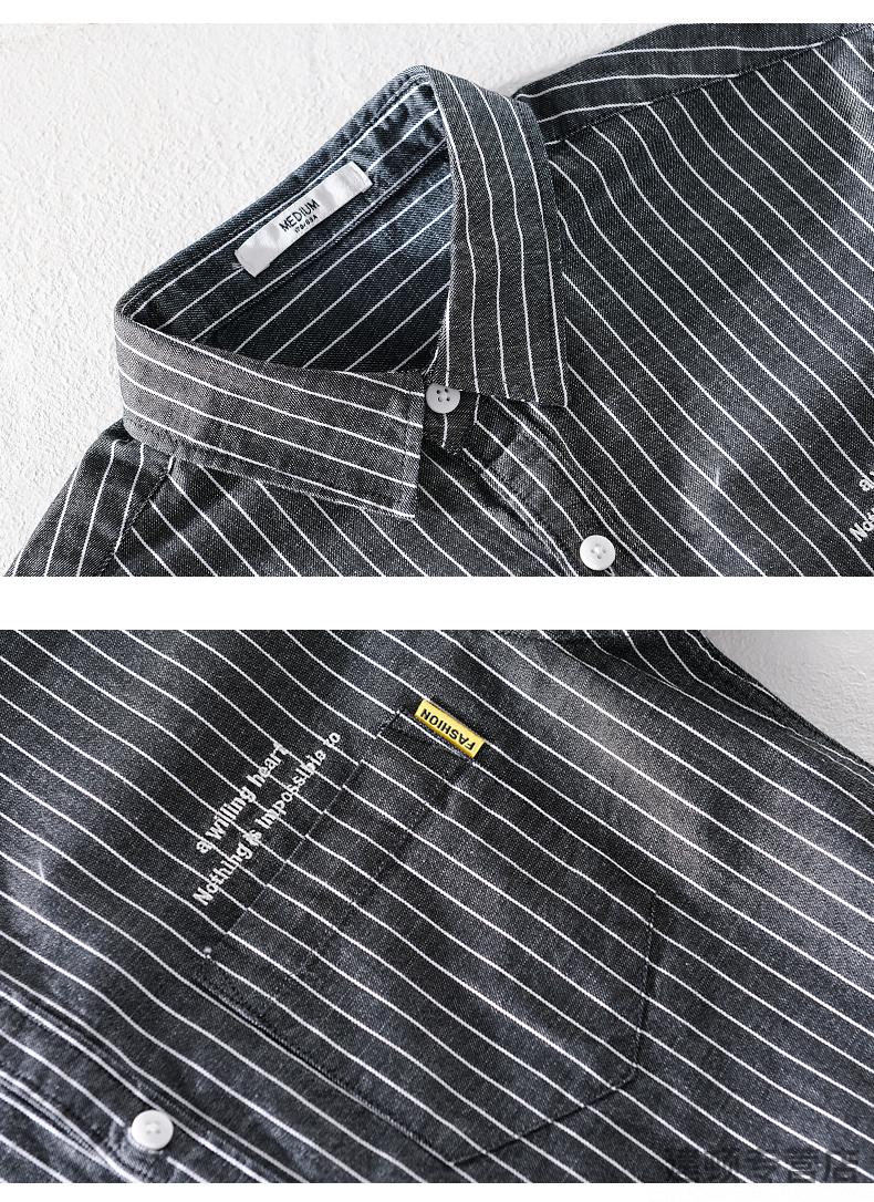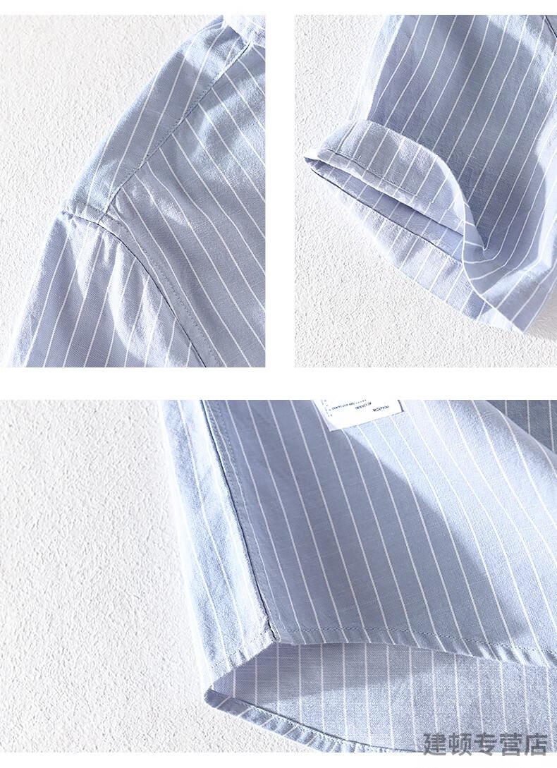 GY Sommer-Herren-Revers-Kurzarmhemd aus reiner Baumwolle, lockerer Hemdkragen, gestreiftes T-Shirt, literarisch yunyi-9740, hellblau, M