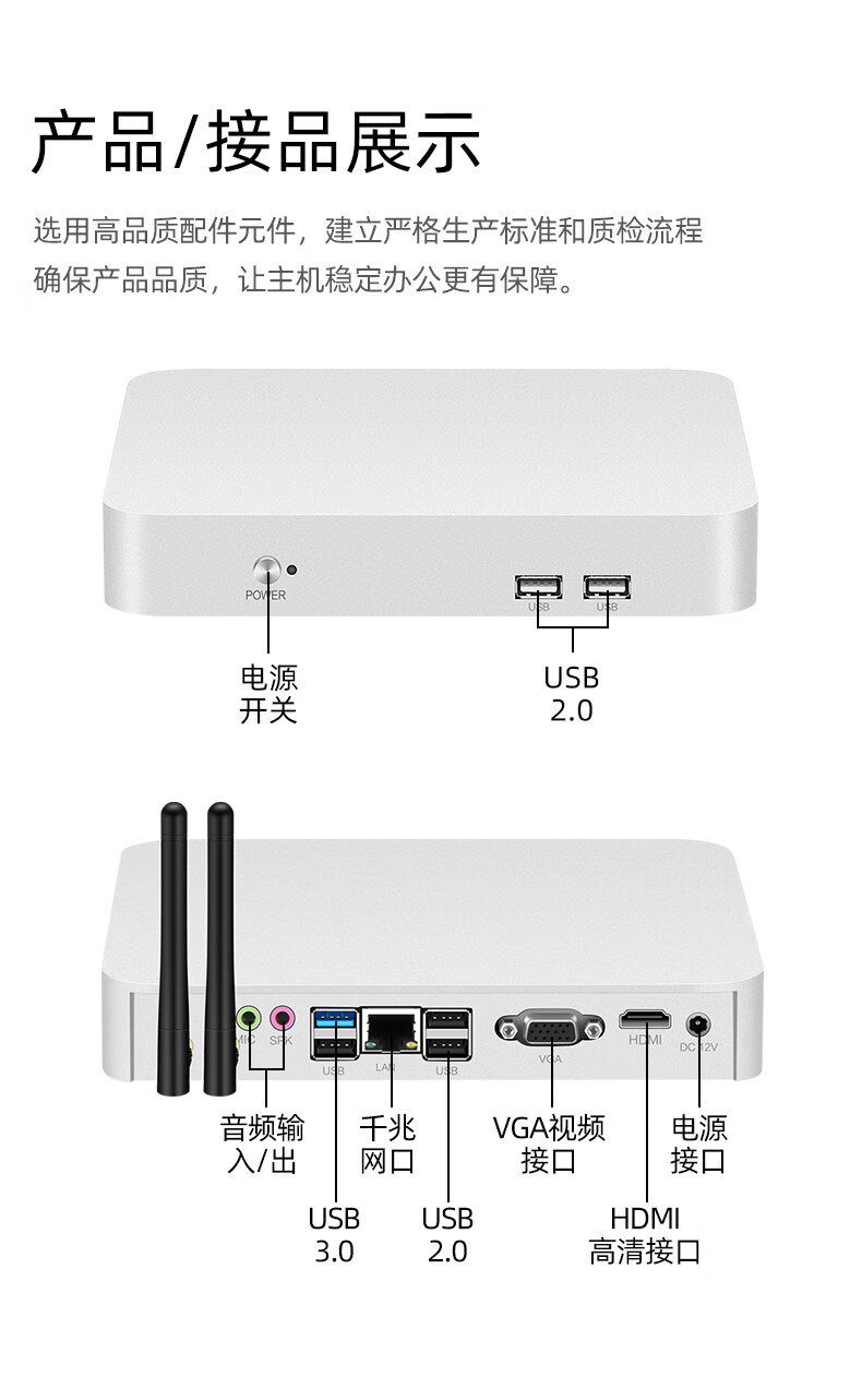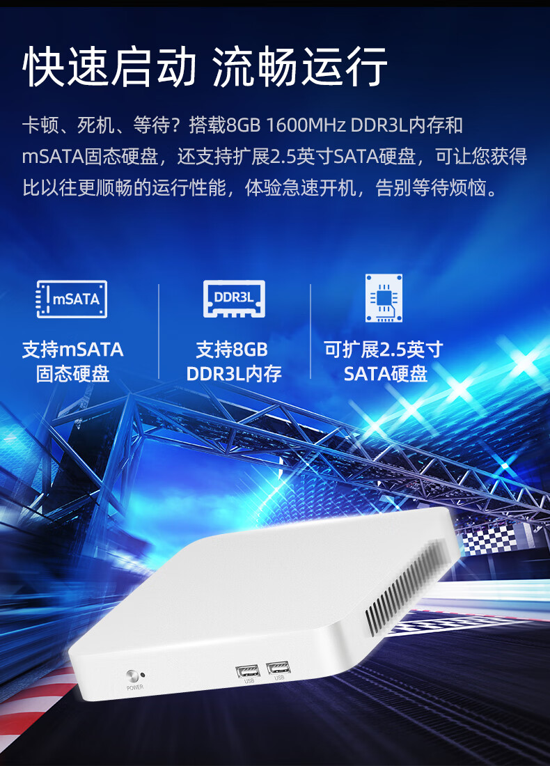 新创云迷你主机家用商用办公4k高清小电脑酷睿低功耗千兆网口微型mini电脑 5010U/8G/128G/送WiFi